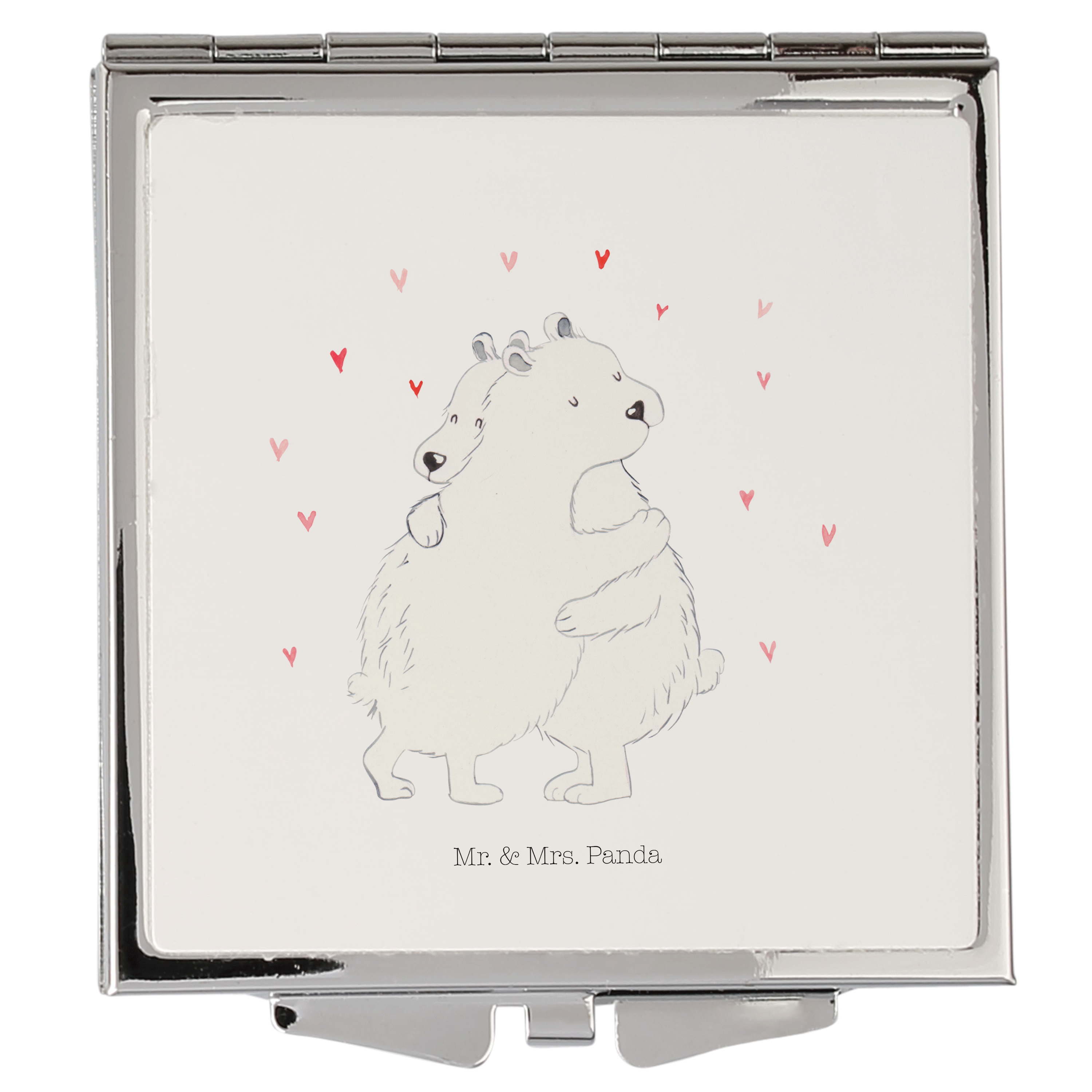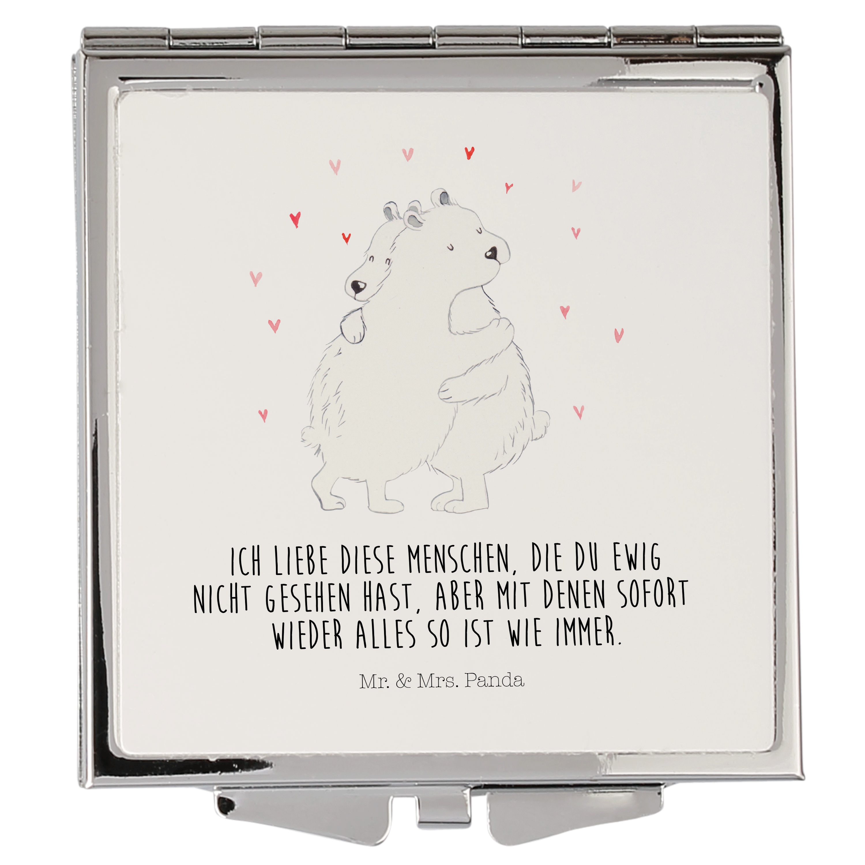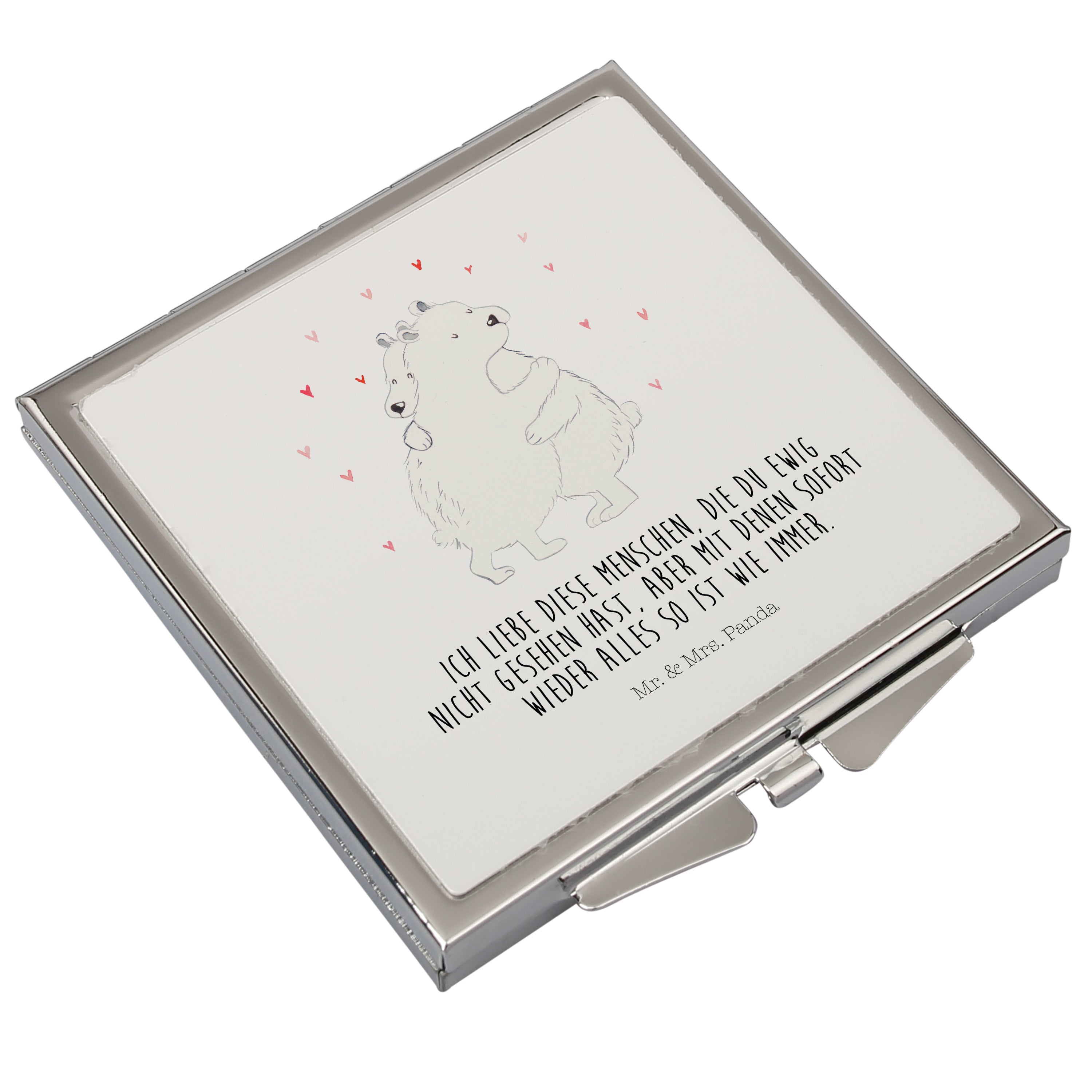 Handtaschenspiegel quadratisch Eisbär Umarmen Spiegel, Handtasche, Quadrat, silber, schminken, Schminkspiegel, Tiermotive, Gute Laune, lustige Sprüche, Tiere