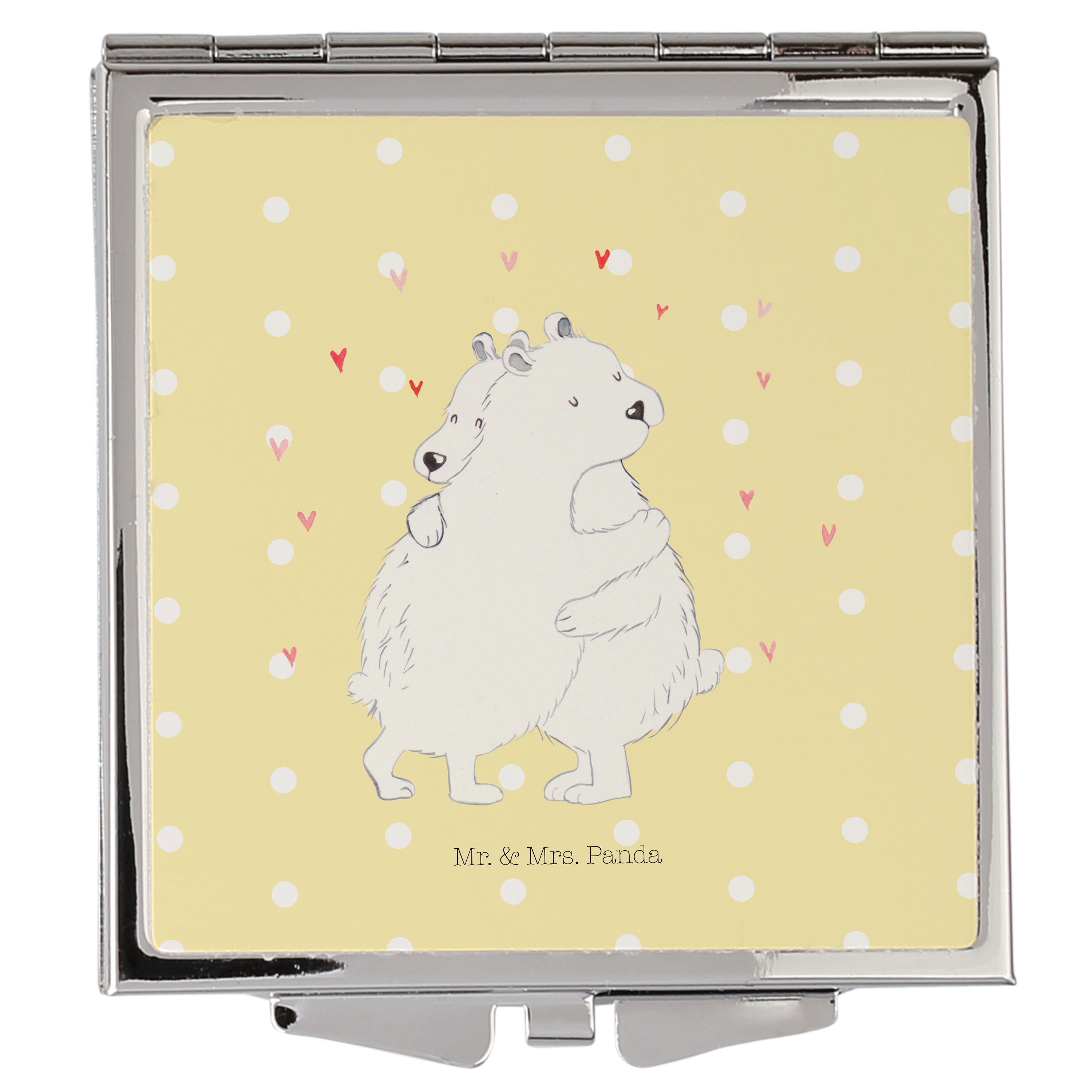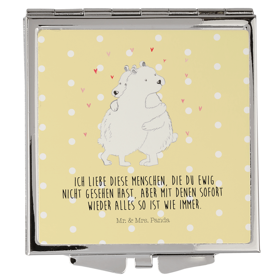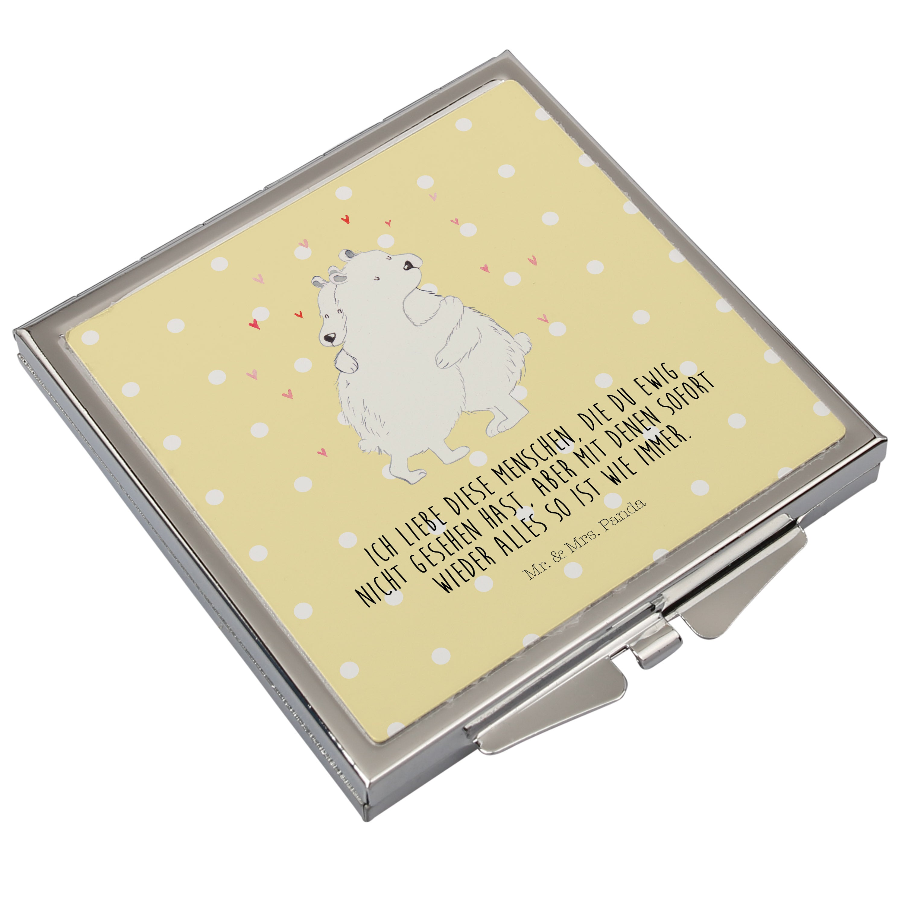 Handtaschenspiegel quadratisch Eisbär Umarmen - mit Spruch - Gelb Pastell