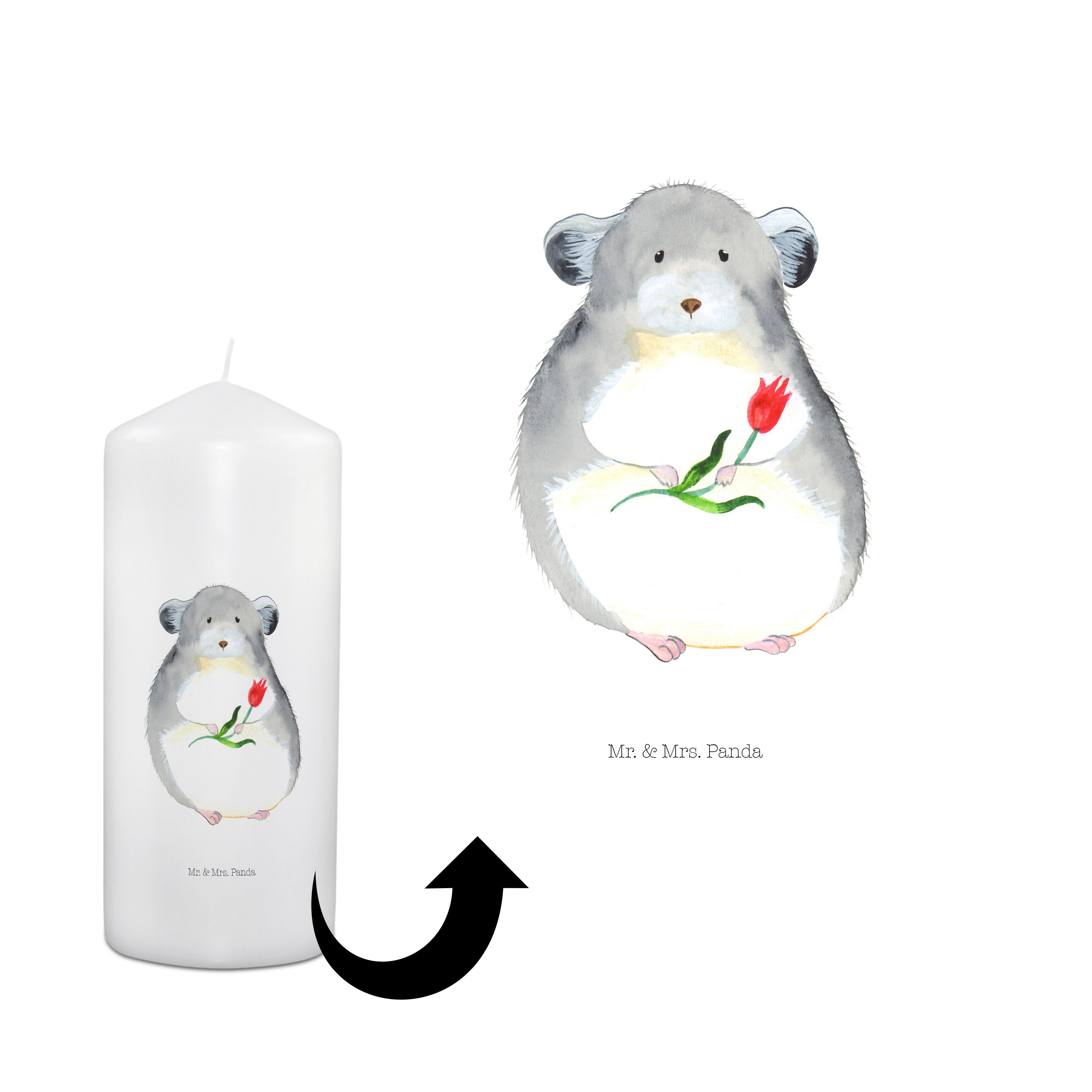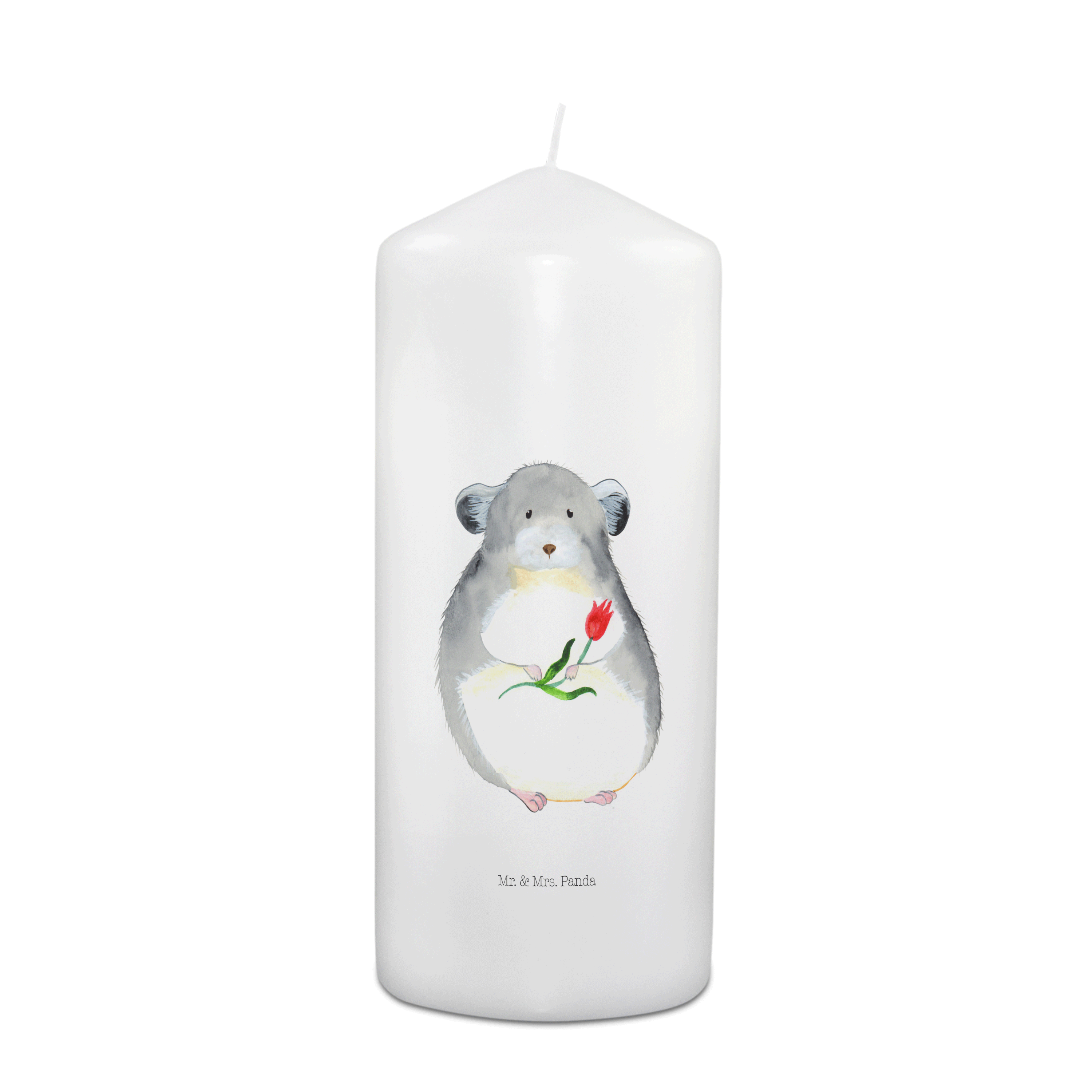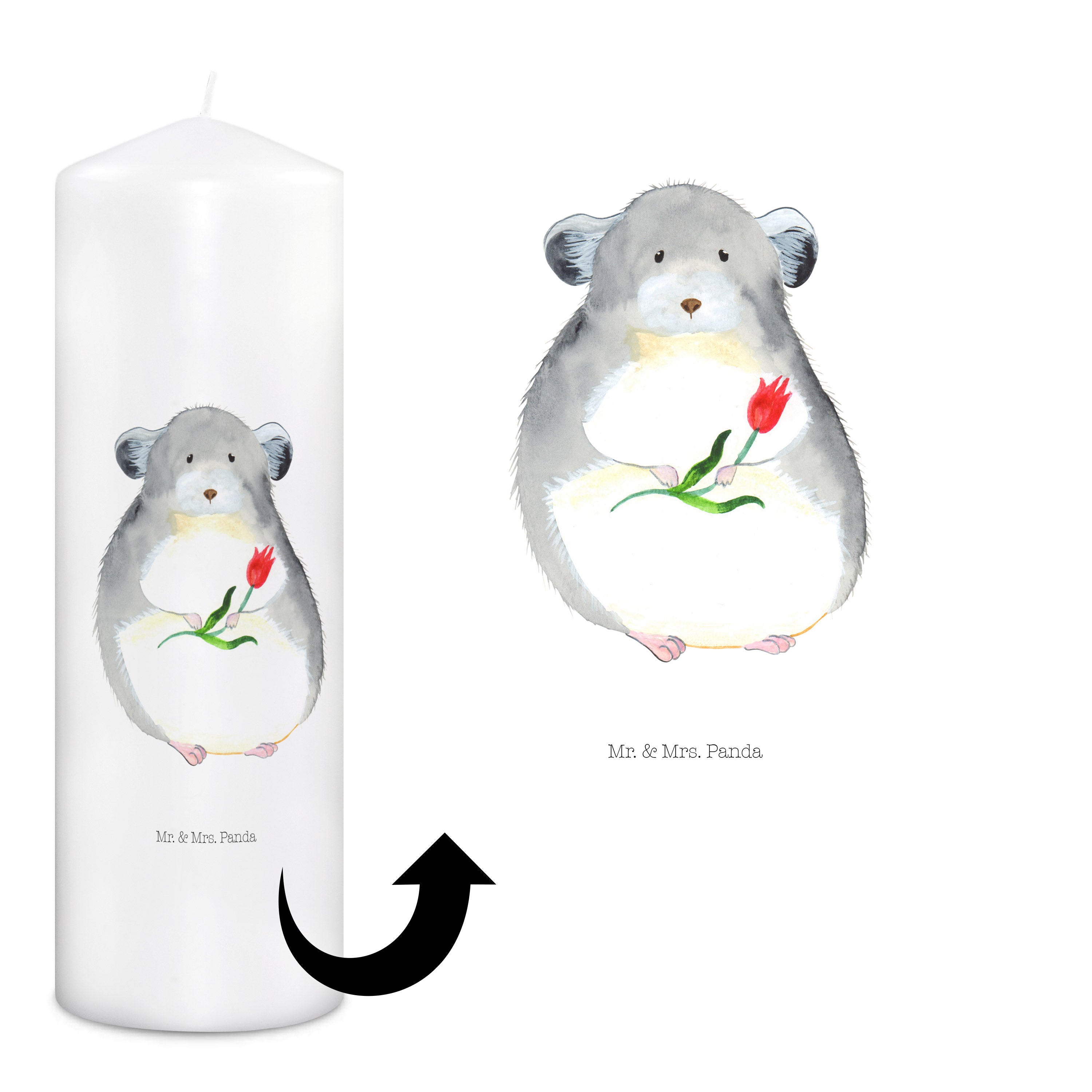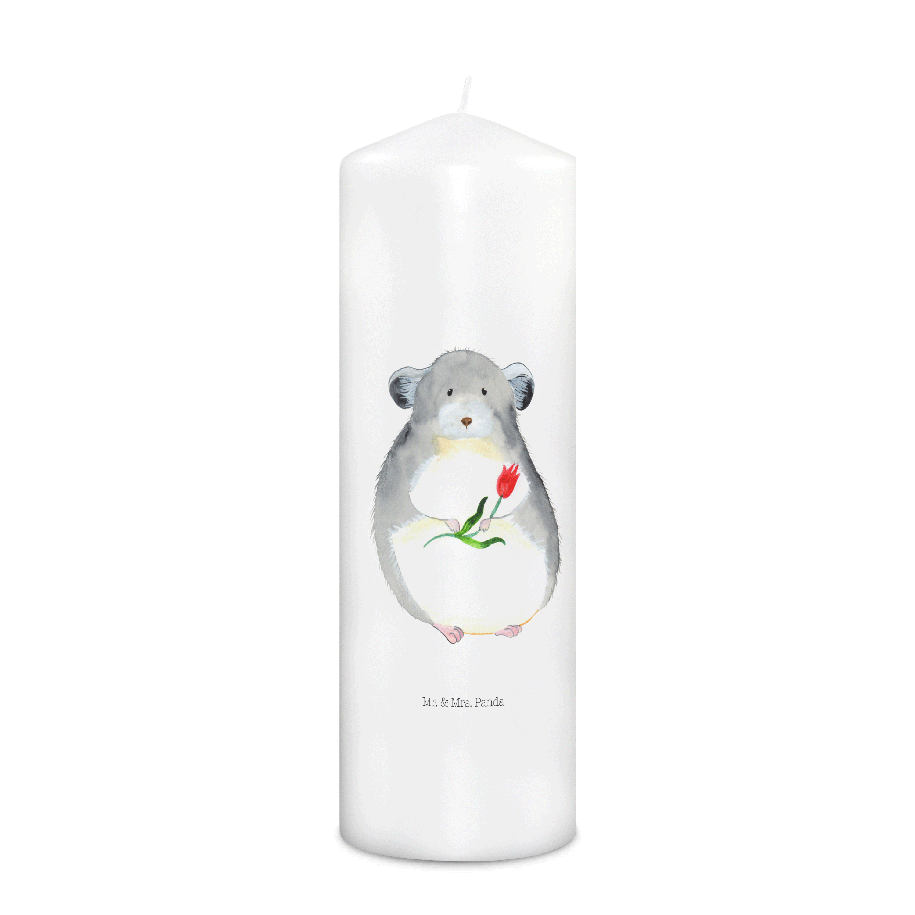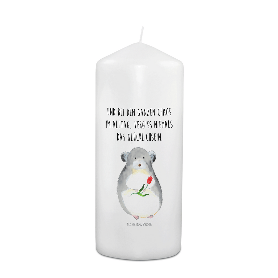 Kerze Chinchilla mit Blume - 19 x 8 cm - mit Spruch