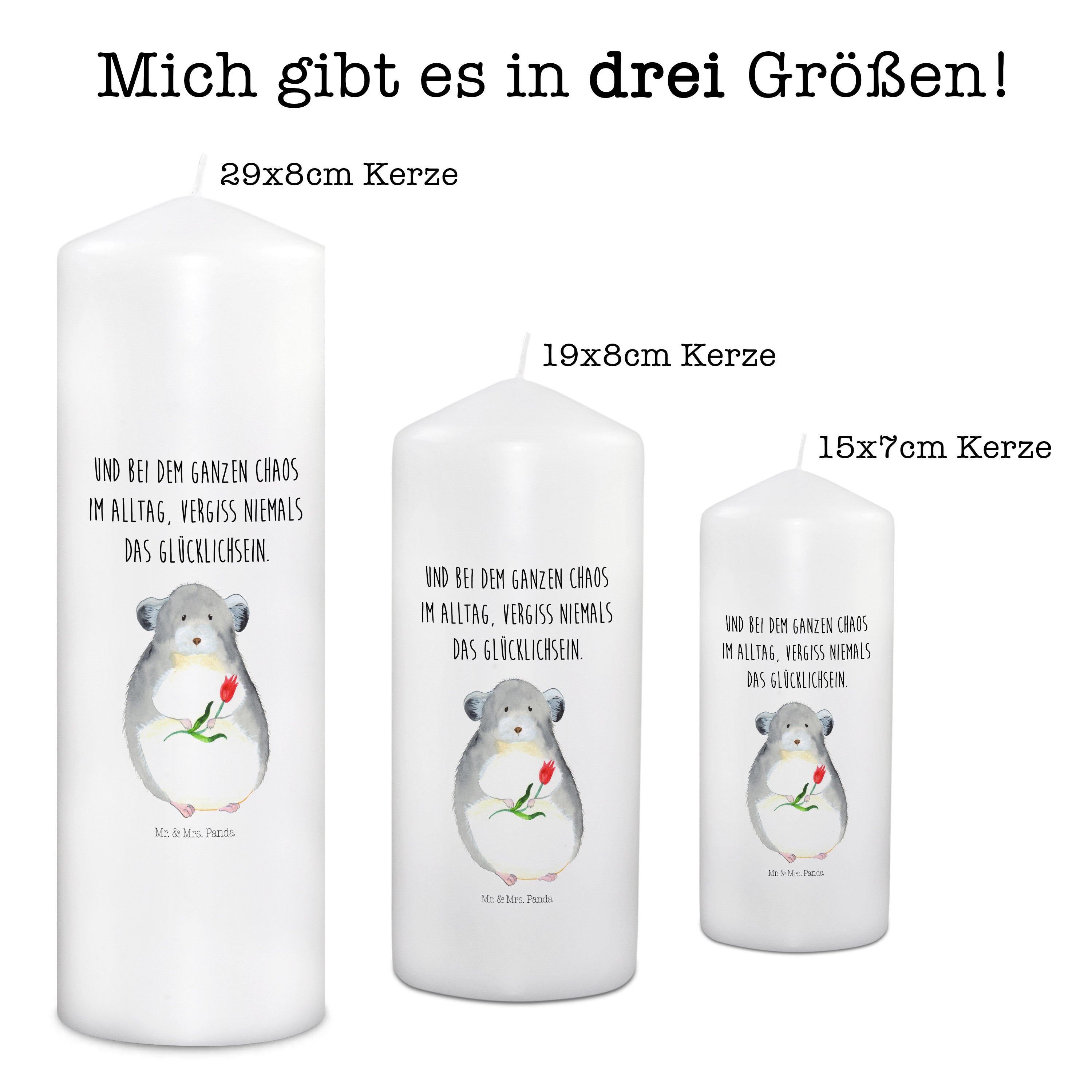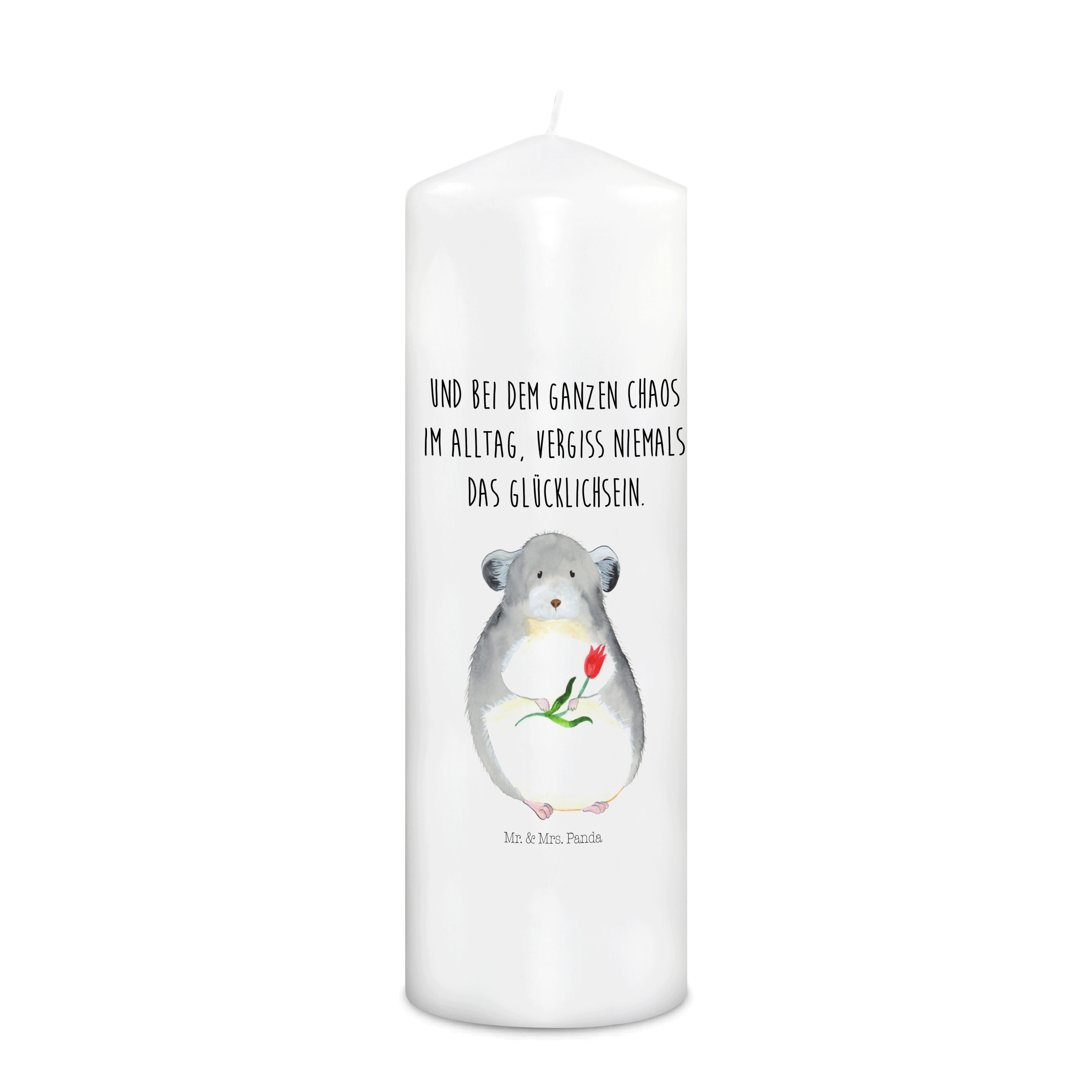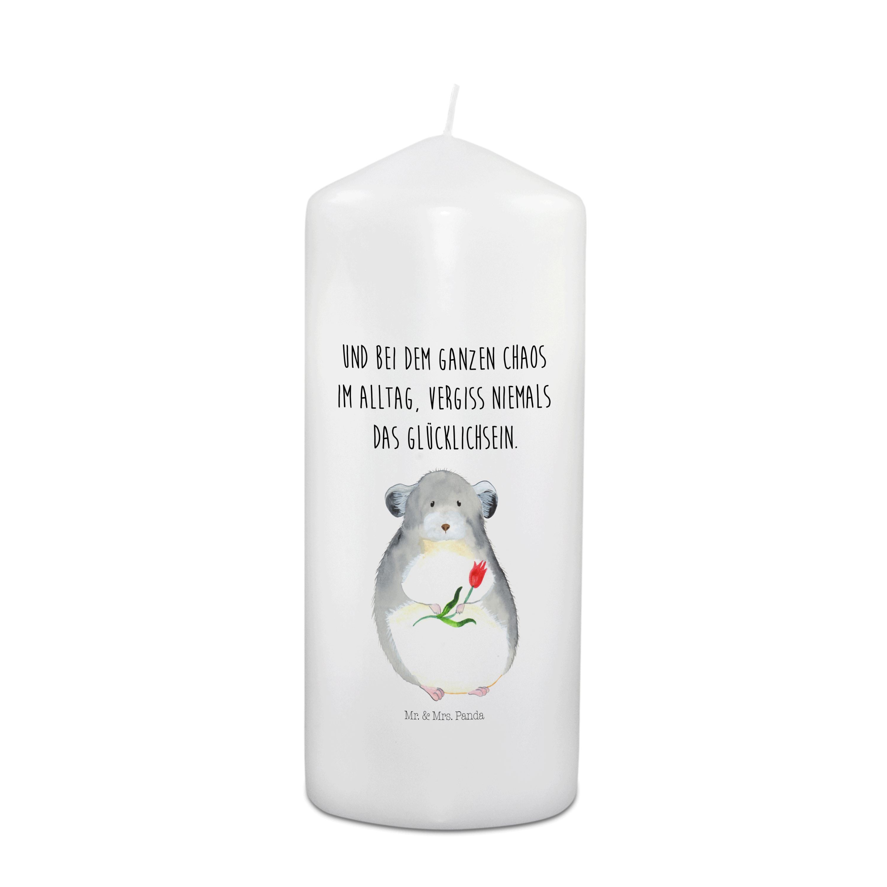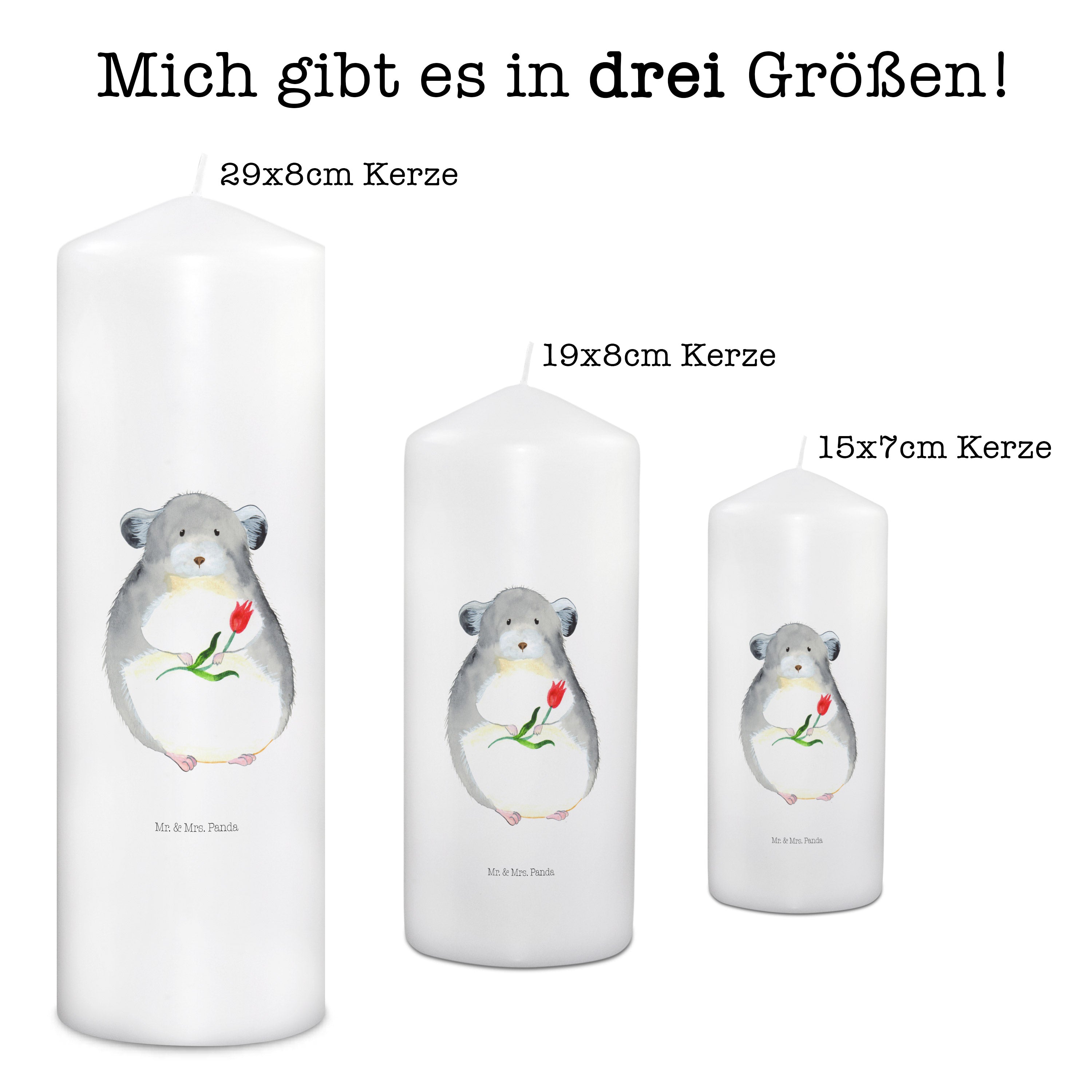 Kerze Chinchilla mit Blume - 19 x 8 cm - mit Spruch