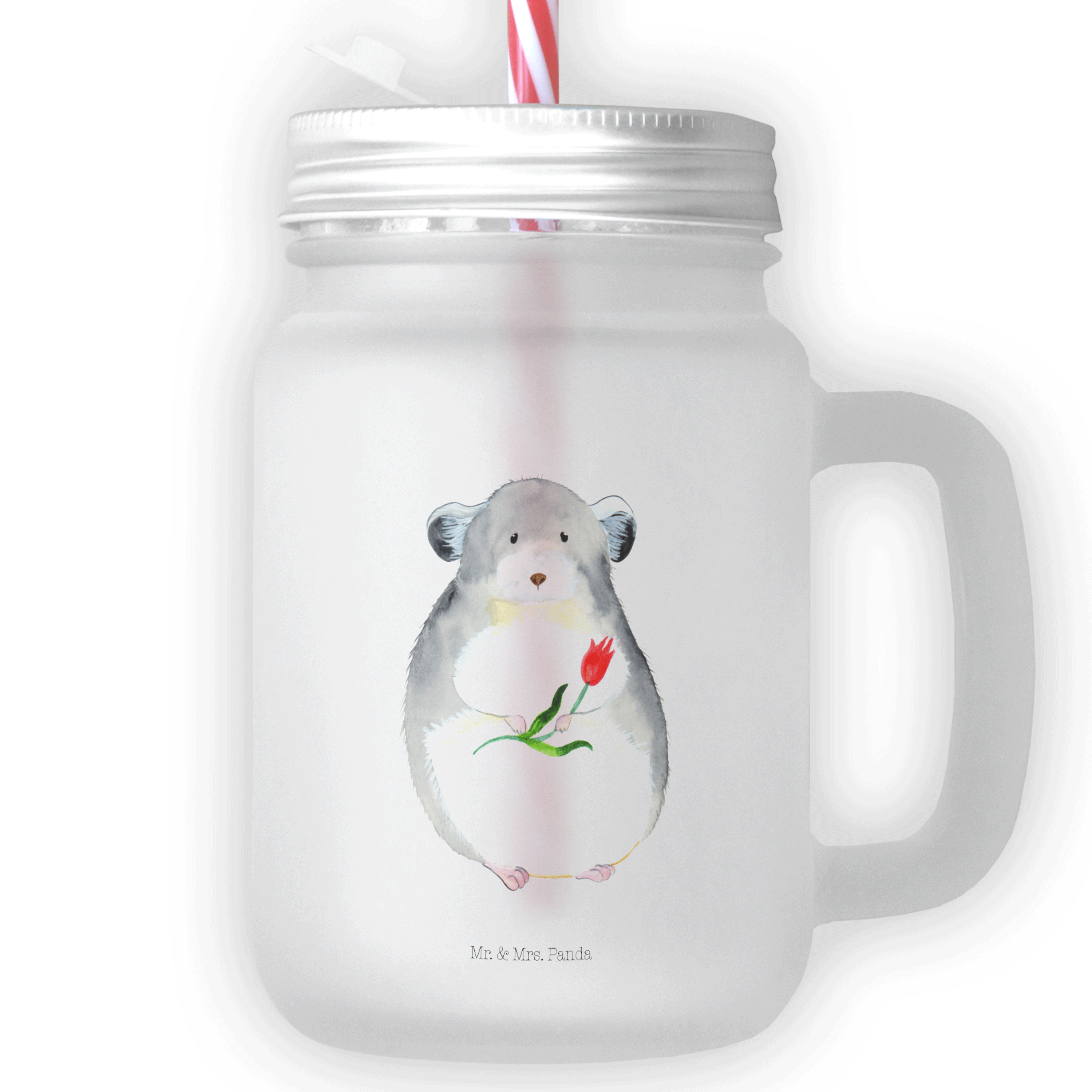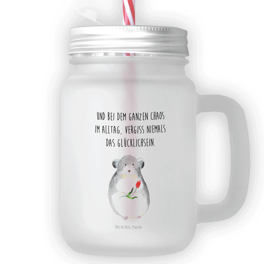 Trinkglas Mason Jar Chinchilla mit Blume - mit Spruch