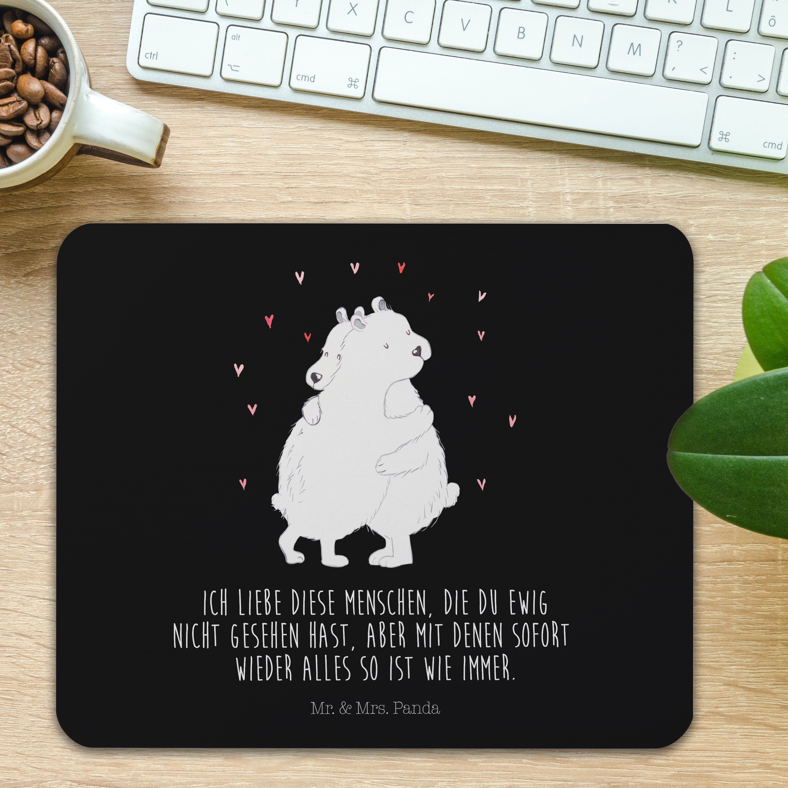 Mauspad Eisbär Umarmen - mit Spruch - Schwarz