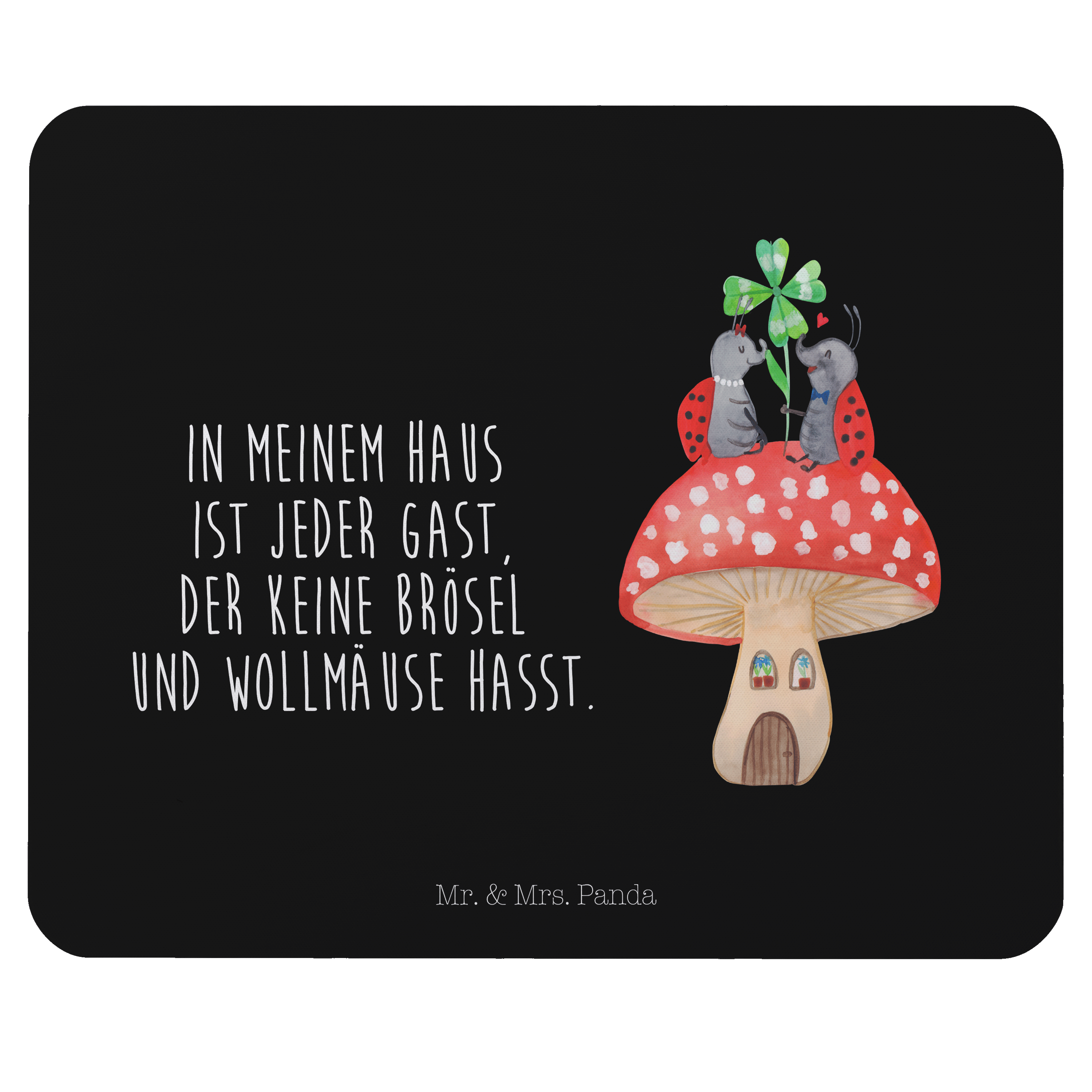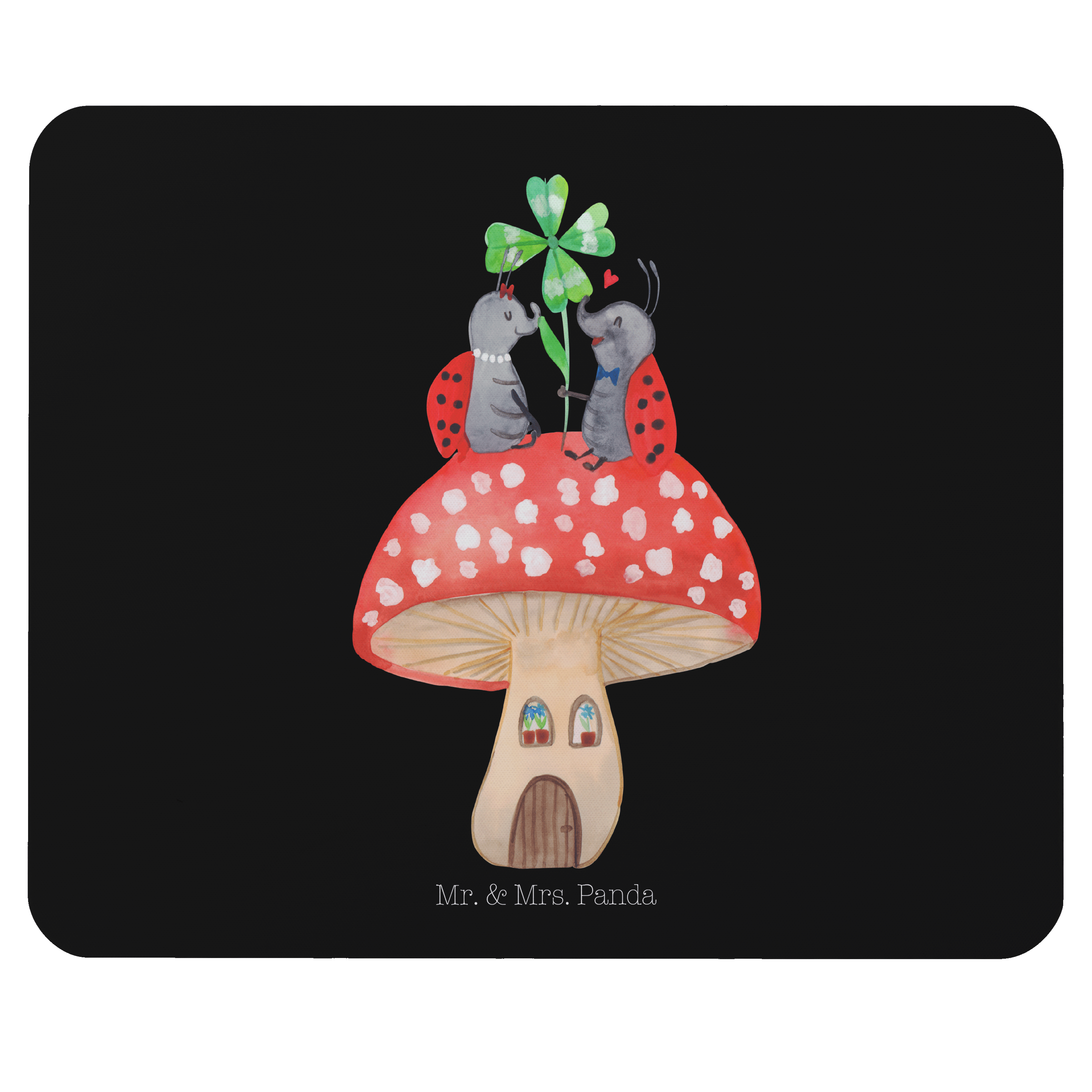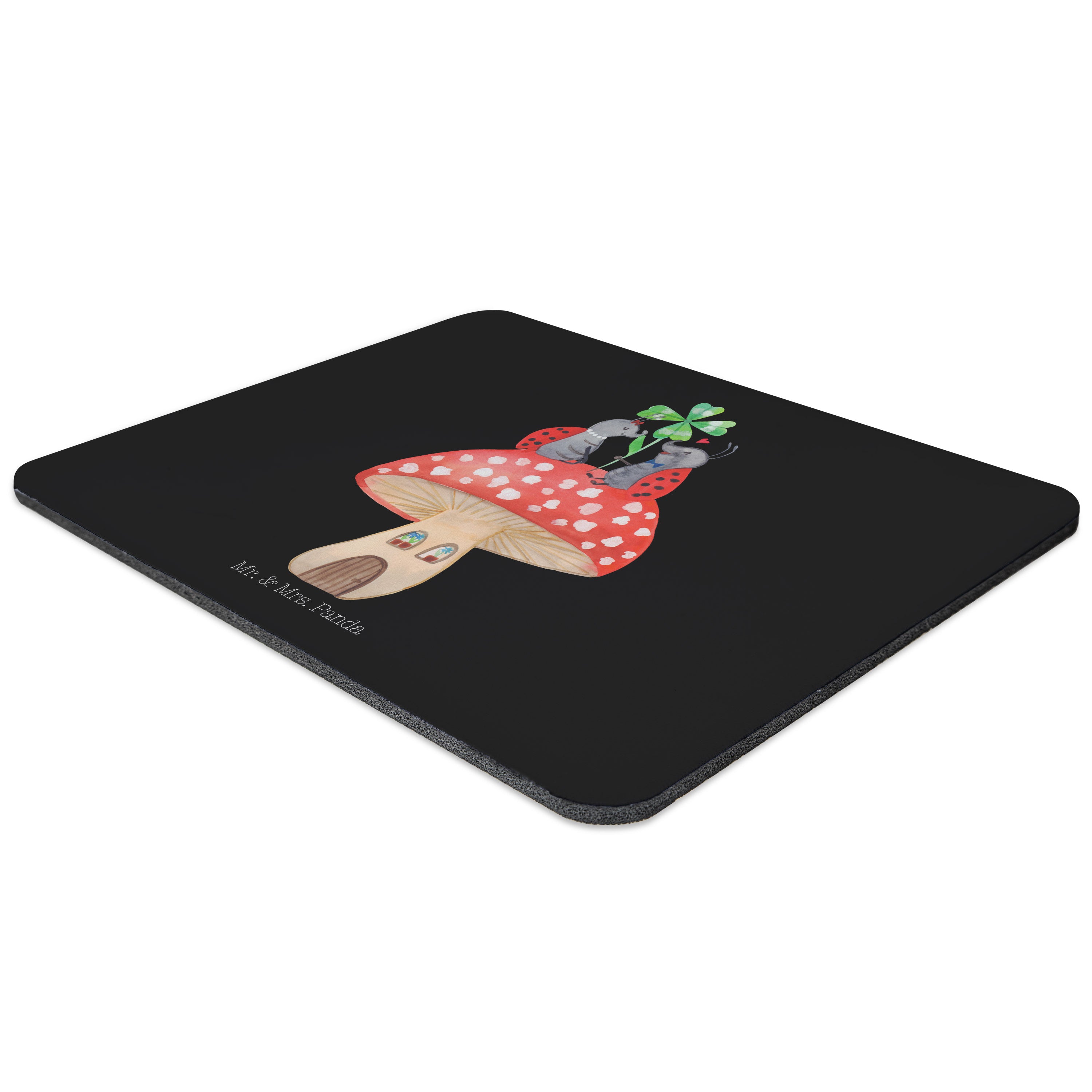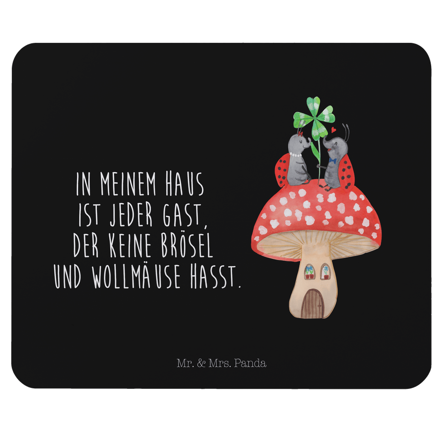 Mauspad Marienkäfer Paar Fliegenpilz - mit Spruch - Schwarz