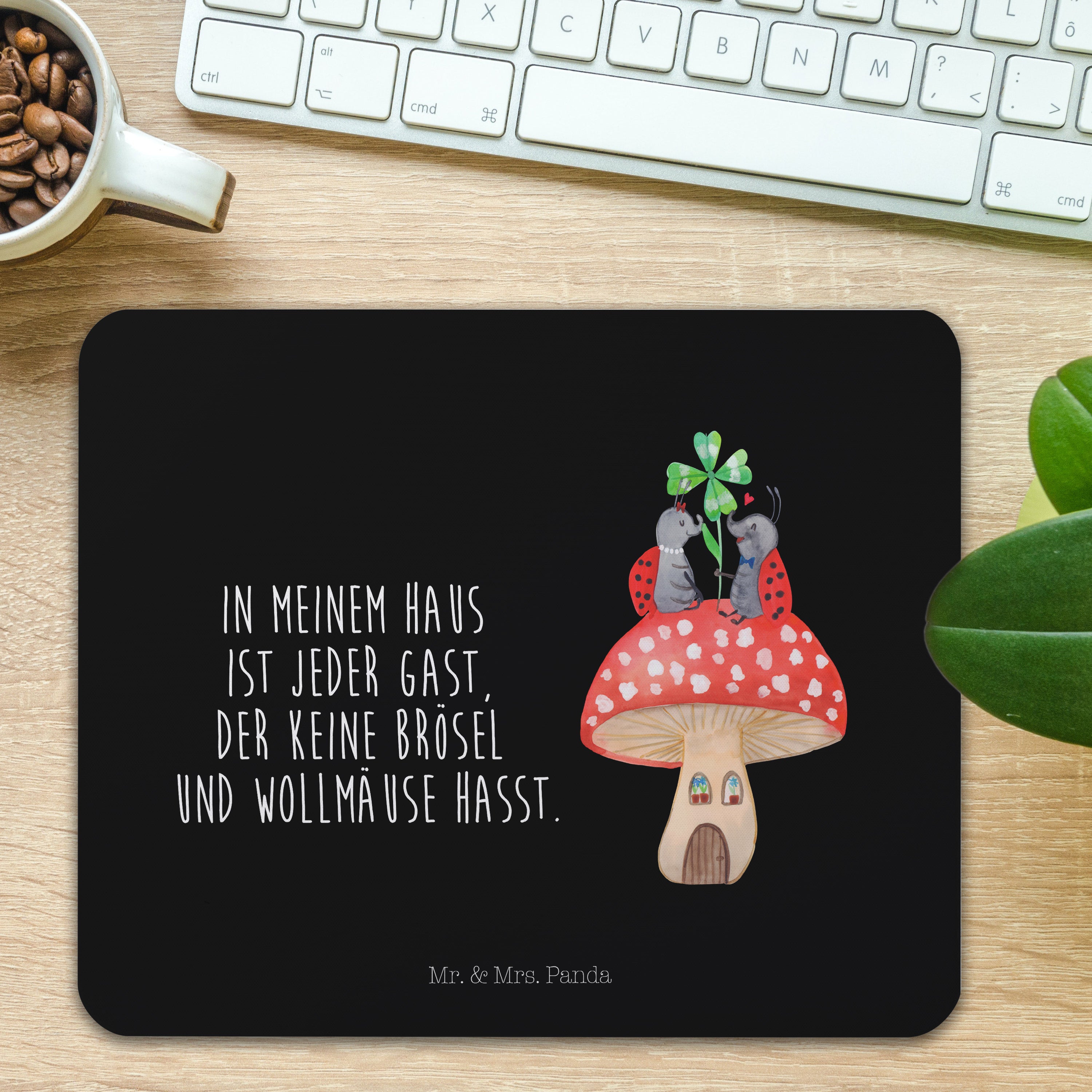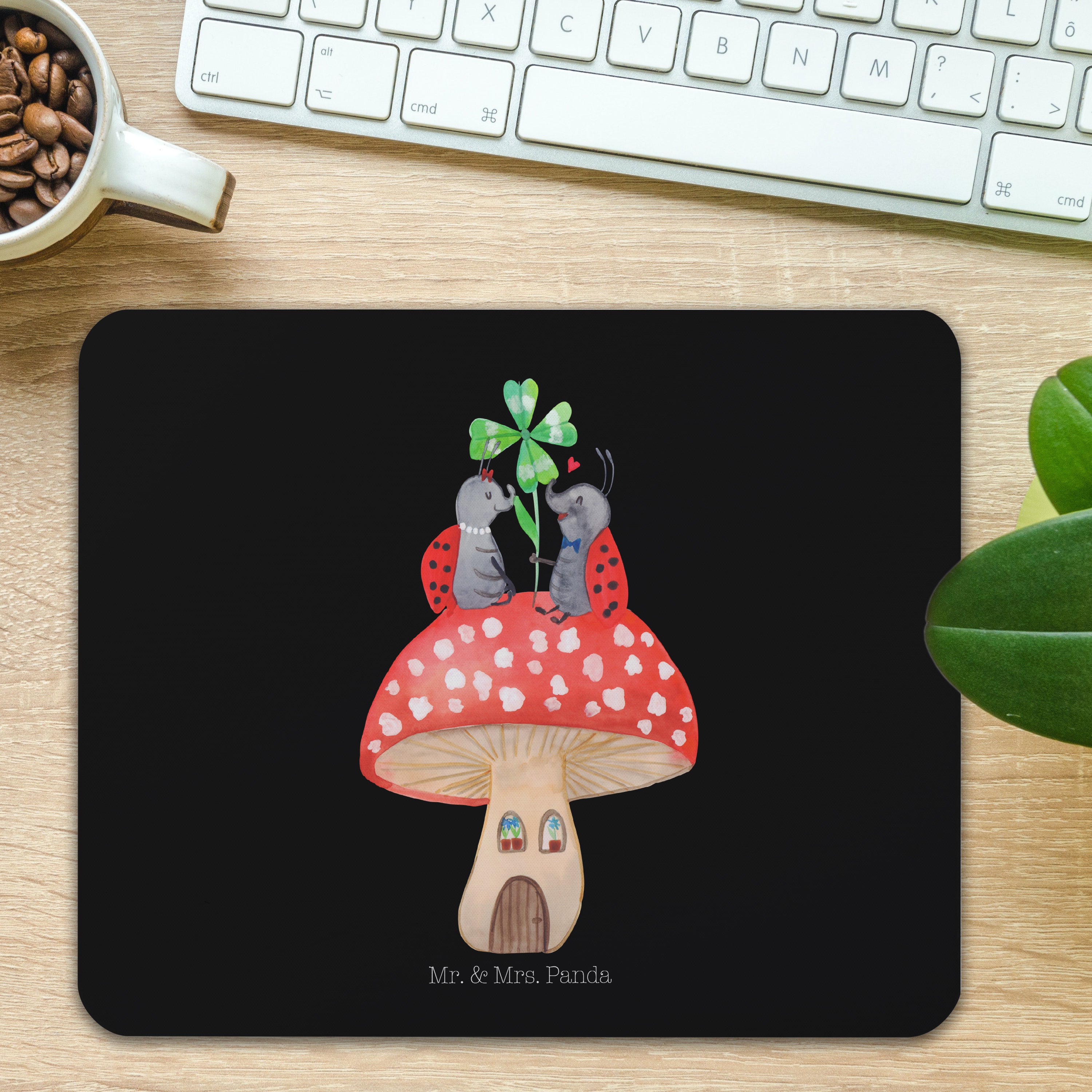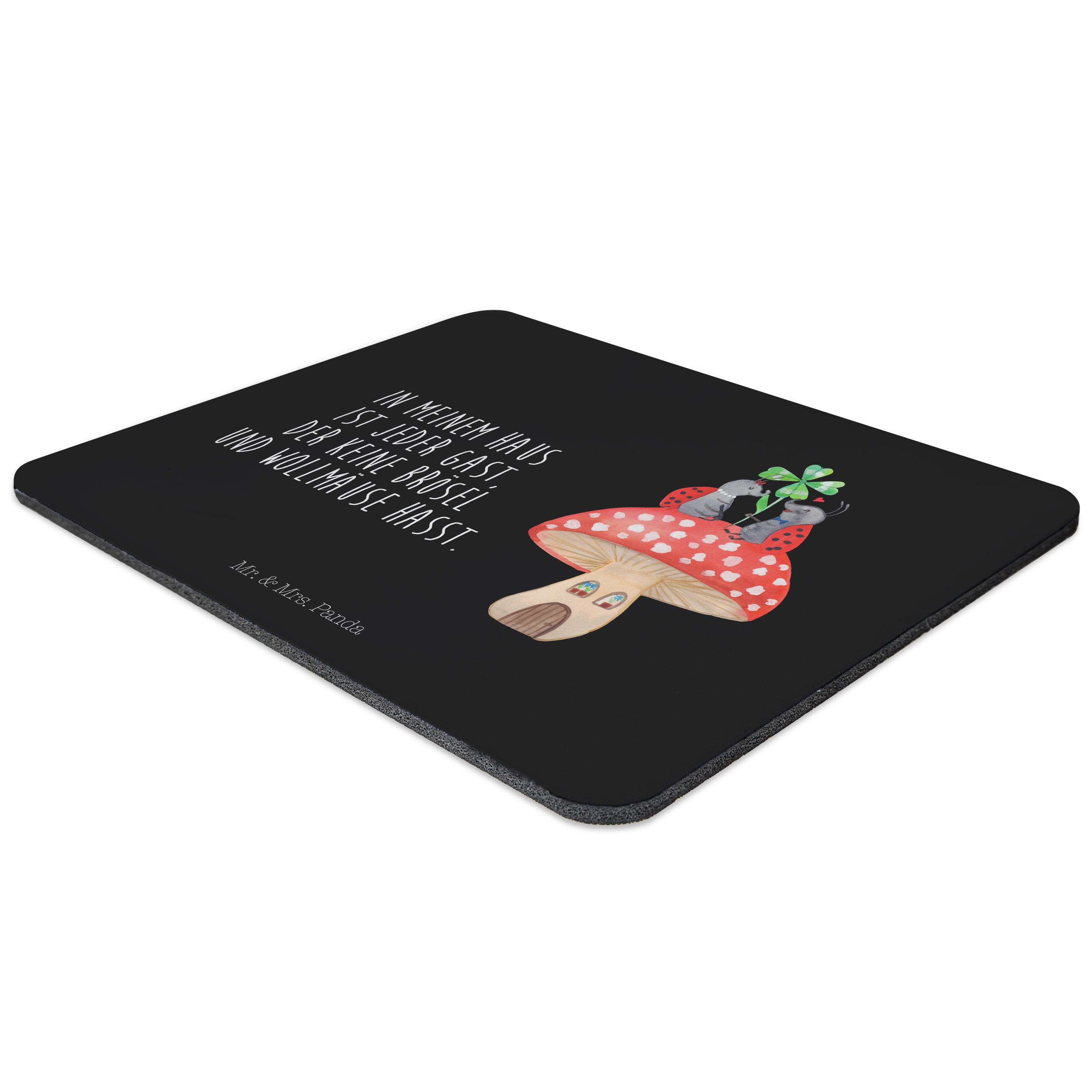 Mauspad Marienkäfer Paar Fliegenpilz - mit Spruch - Schwarz