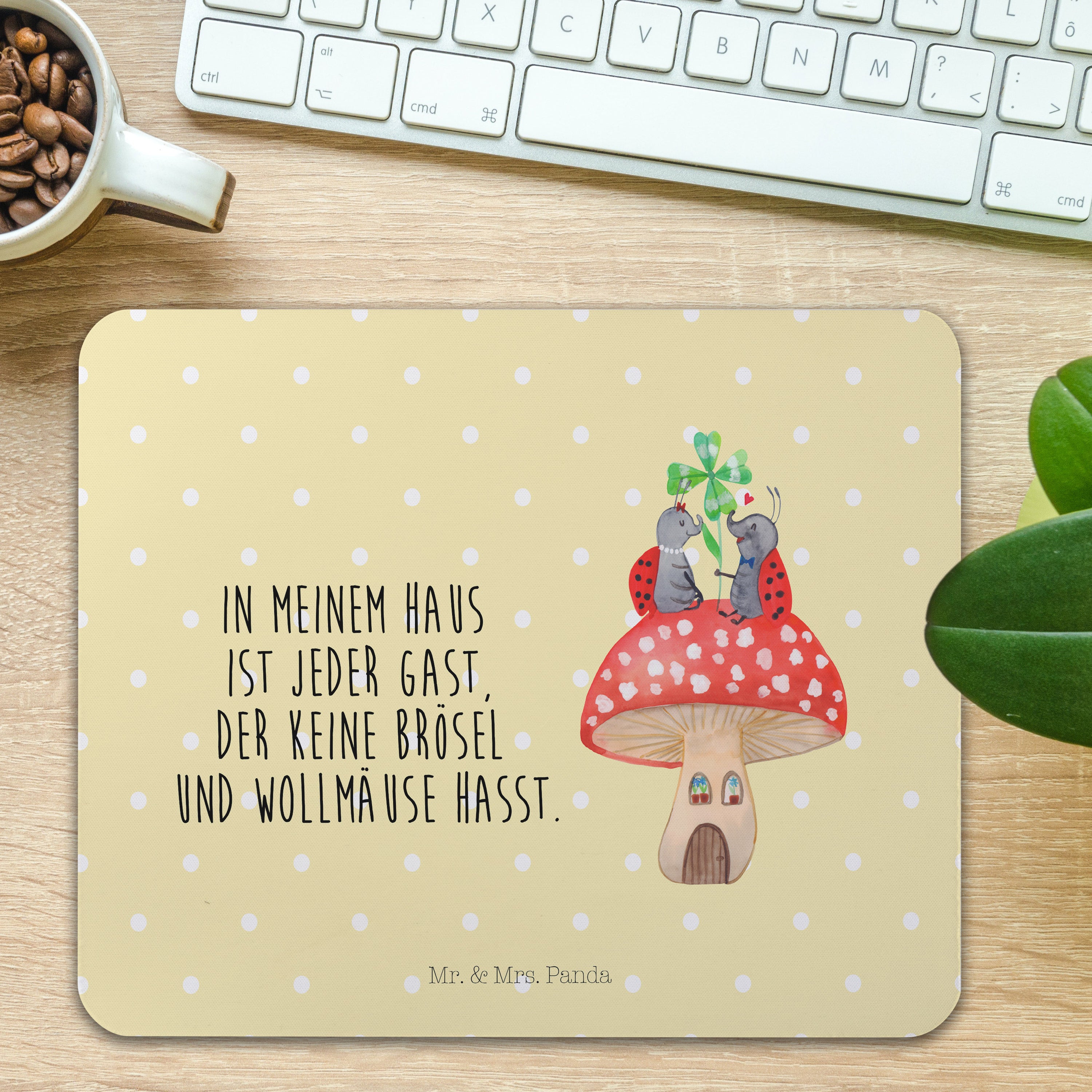 Erwecke die Liebe zum Leben mit unserem Marienkäfer Paar Fliegenpilz Motiv. Die beiden kleinen Käfer sitzen so vertraut auf dem Fliegenpilz, dass man sich fragt, ob sie sich wohl sogar küssen werden. Die beiden sind das perfekte Beispiel für eine erfüllte Partnerschaft. Dieses Motiv ist nicht nur optisch reizvoll, sondern kann auch als Symbol dienen, um positive Energie ins eigene Leben zu ziehen. Mr. & Mrs. Panda schafft es wieder einmal, die Schönheit der Natur und der Liebe perfekt aufeinander abzustimmen.