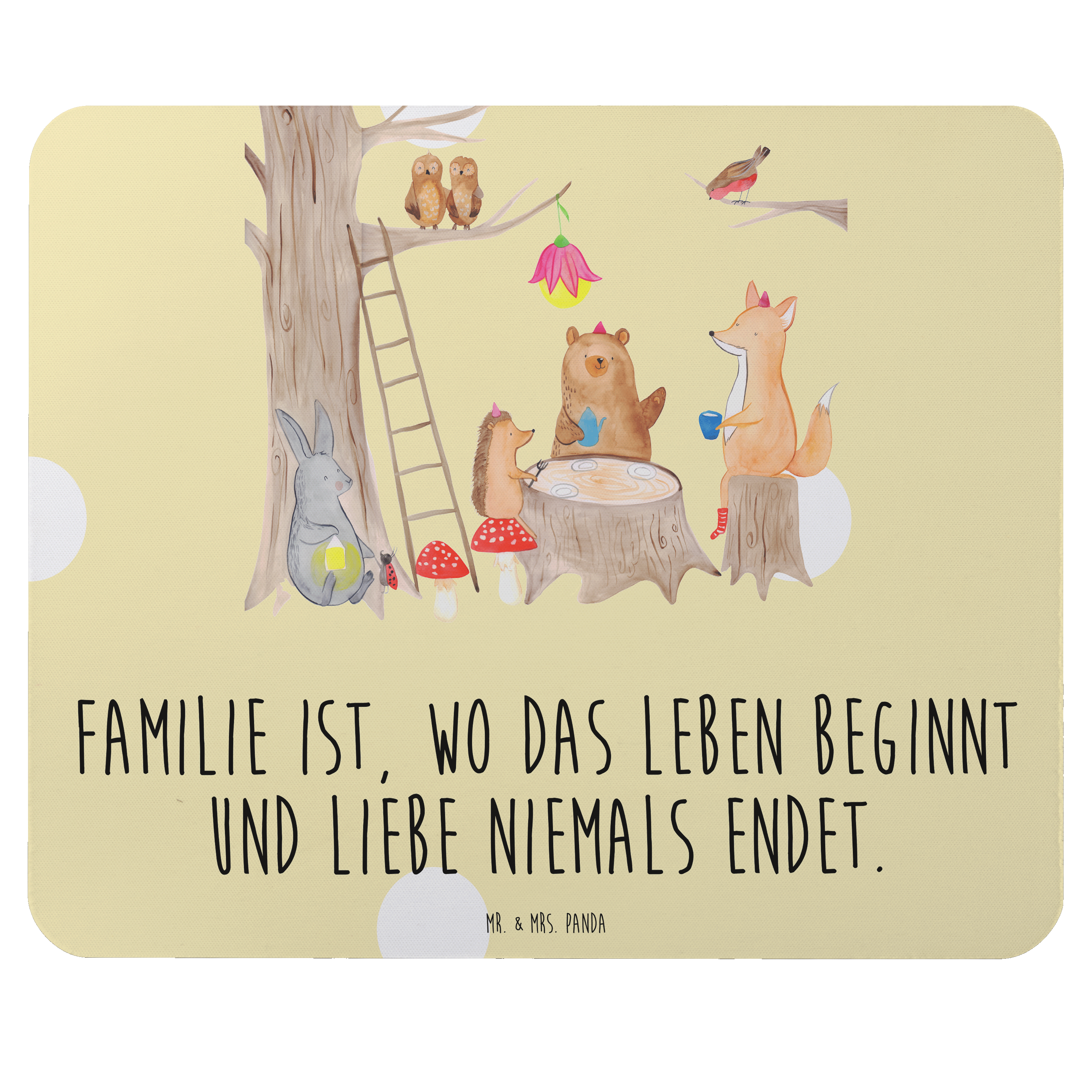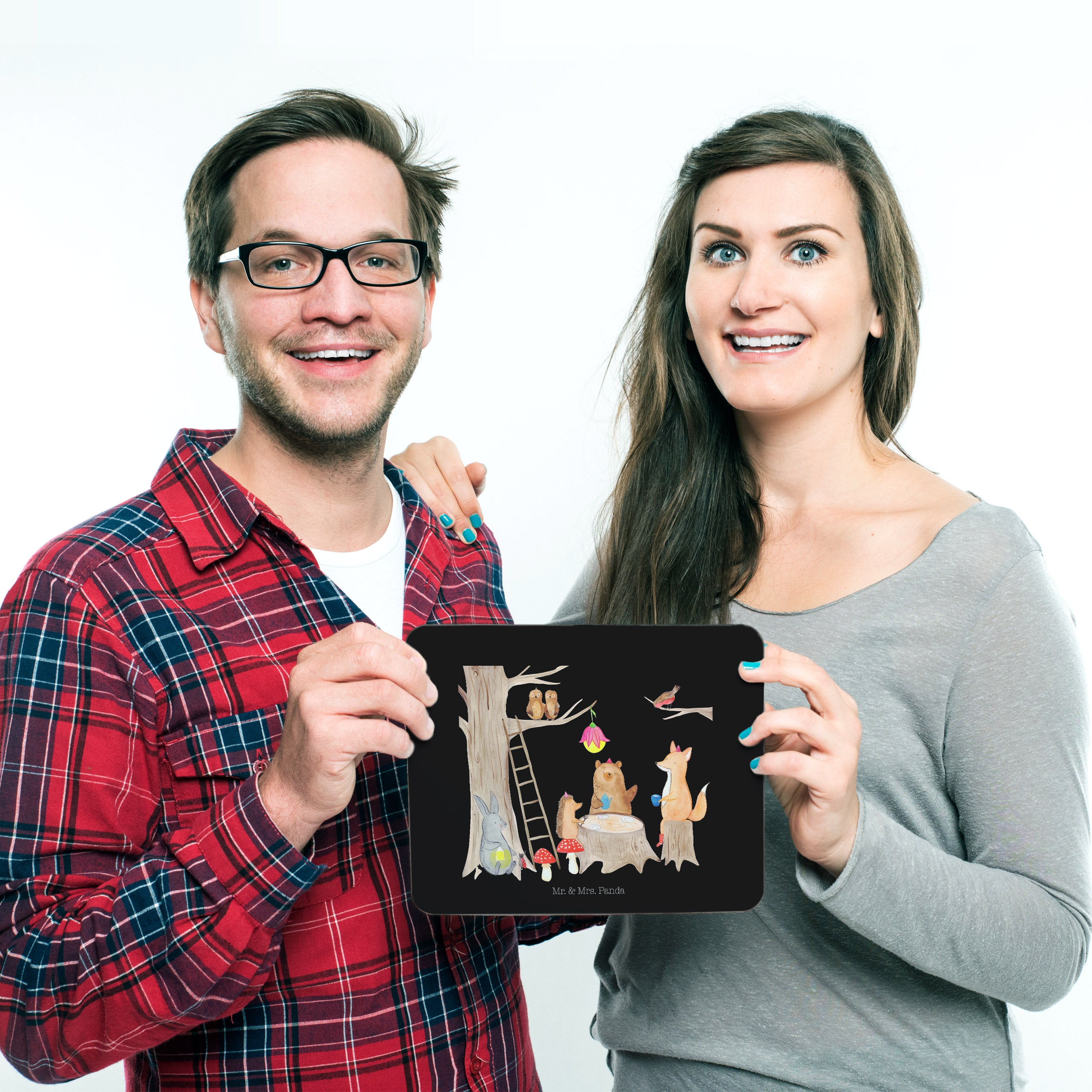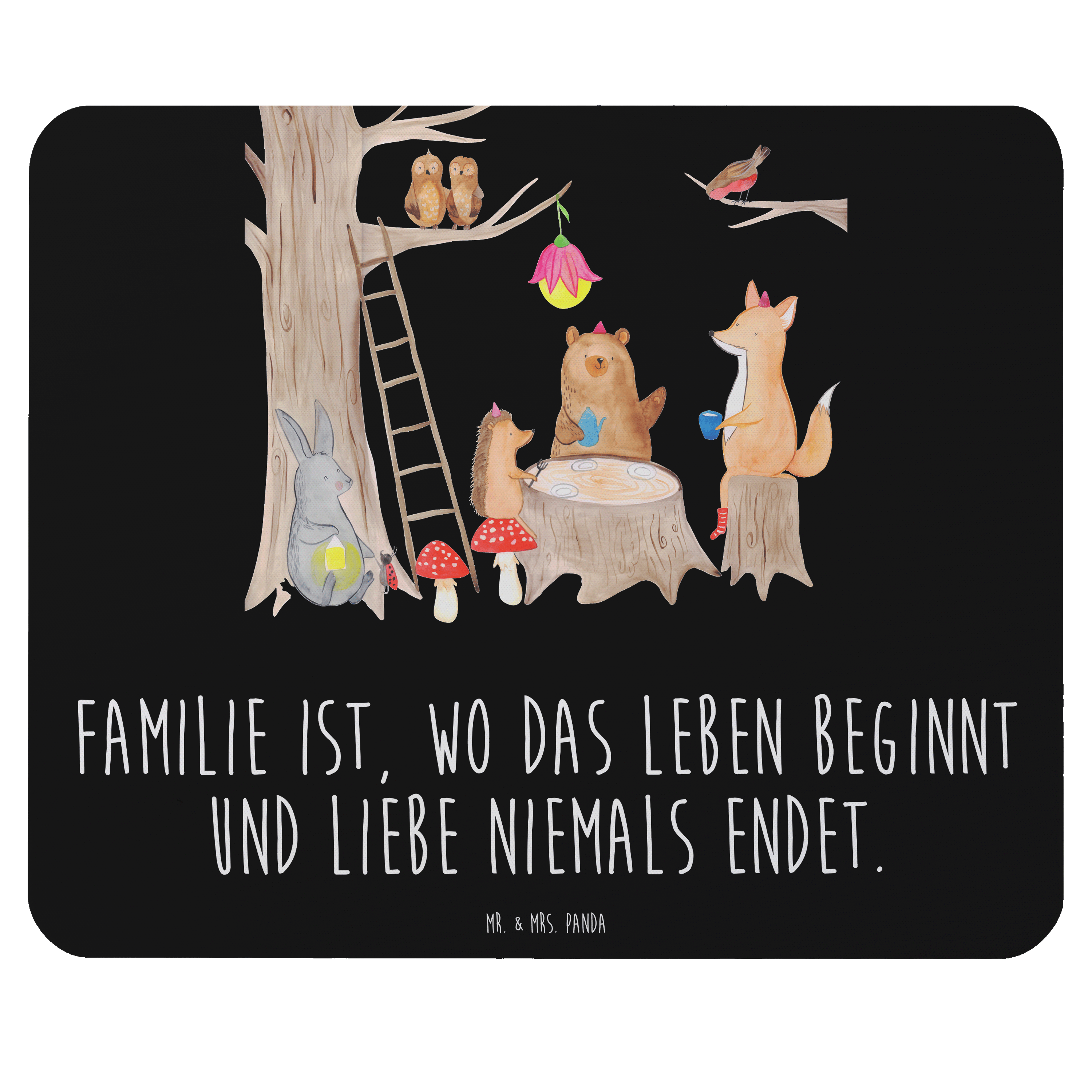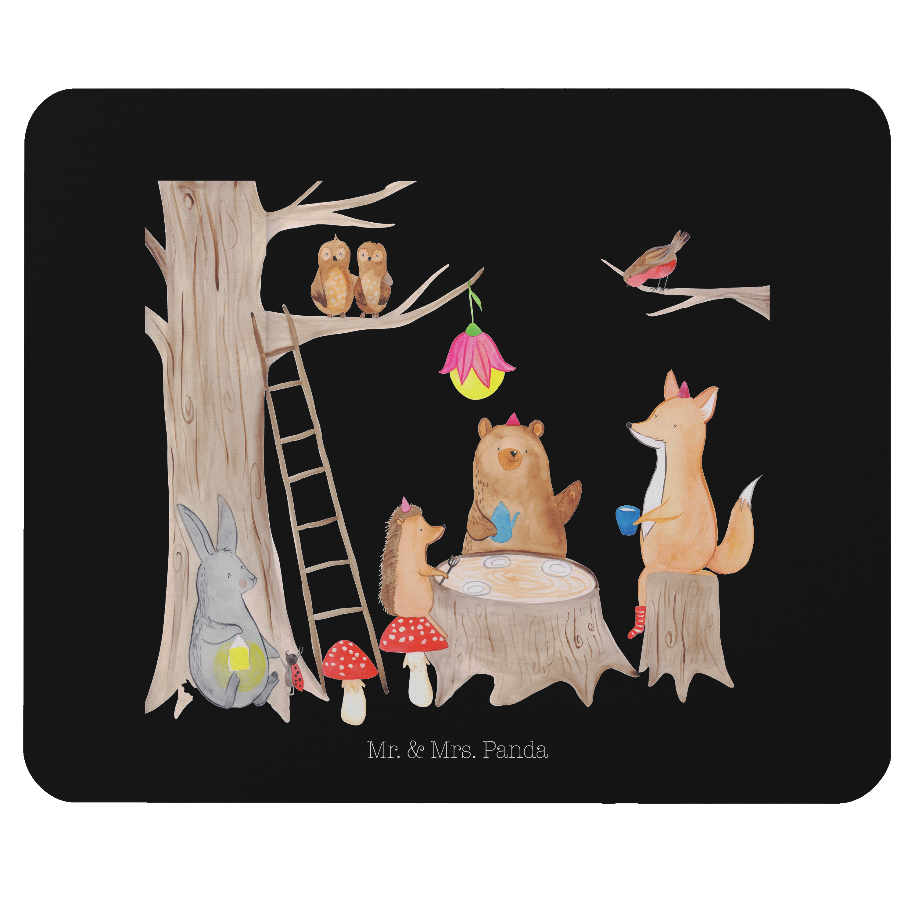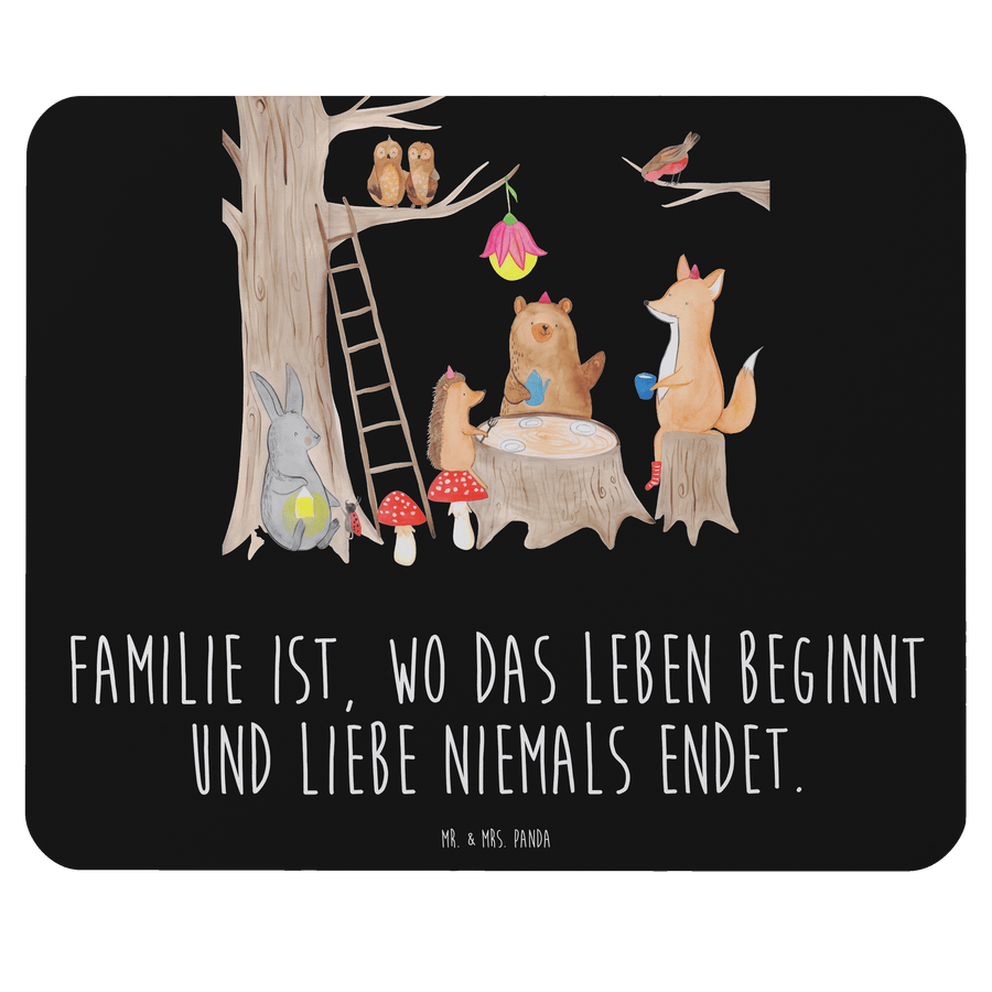 Mauspad Waldtiere Picknick - mit Spruch - Schwarz