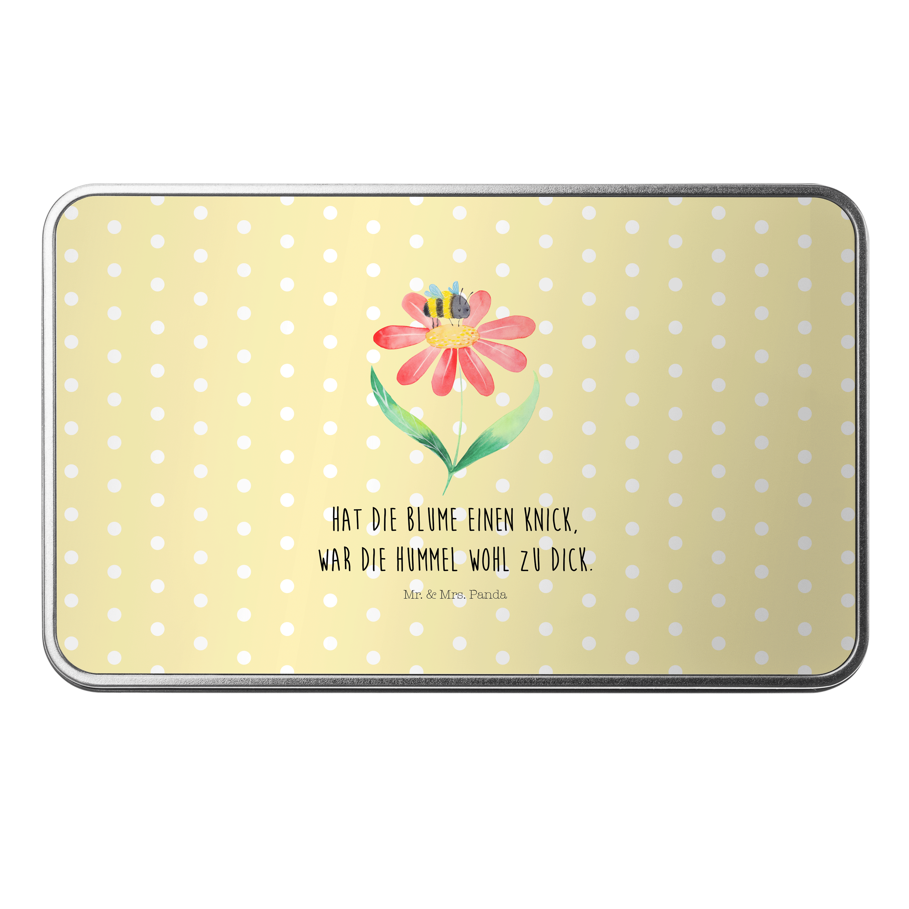 Metalldose rechteckig Hummel Blume - mit Spruch - Gelb Pastell