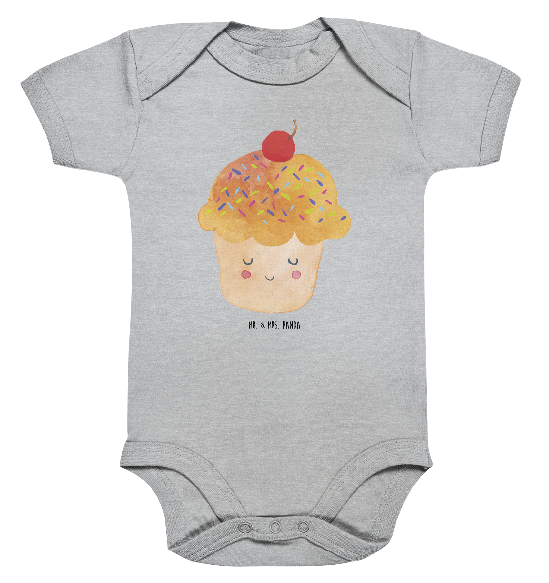 Organic Baby Body Cupcake - 1. - 3. Monat - mit Spruch - Heather Grey