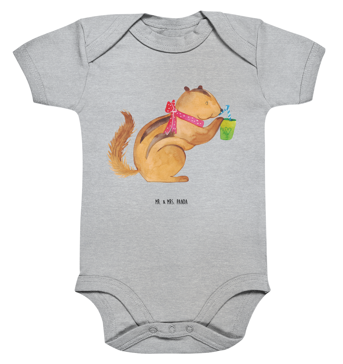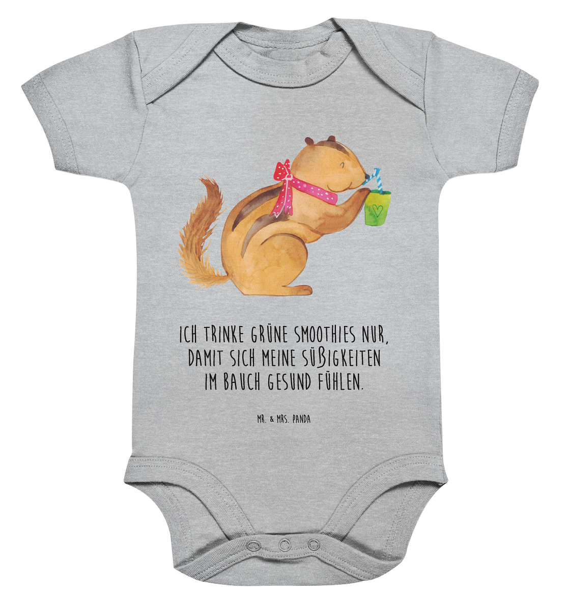 Organic Baby Body Eichhörnchen Smoothie - 1. - 3. Monat - mit Spruch - Heather Grey