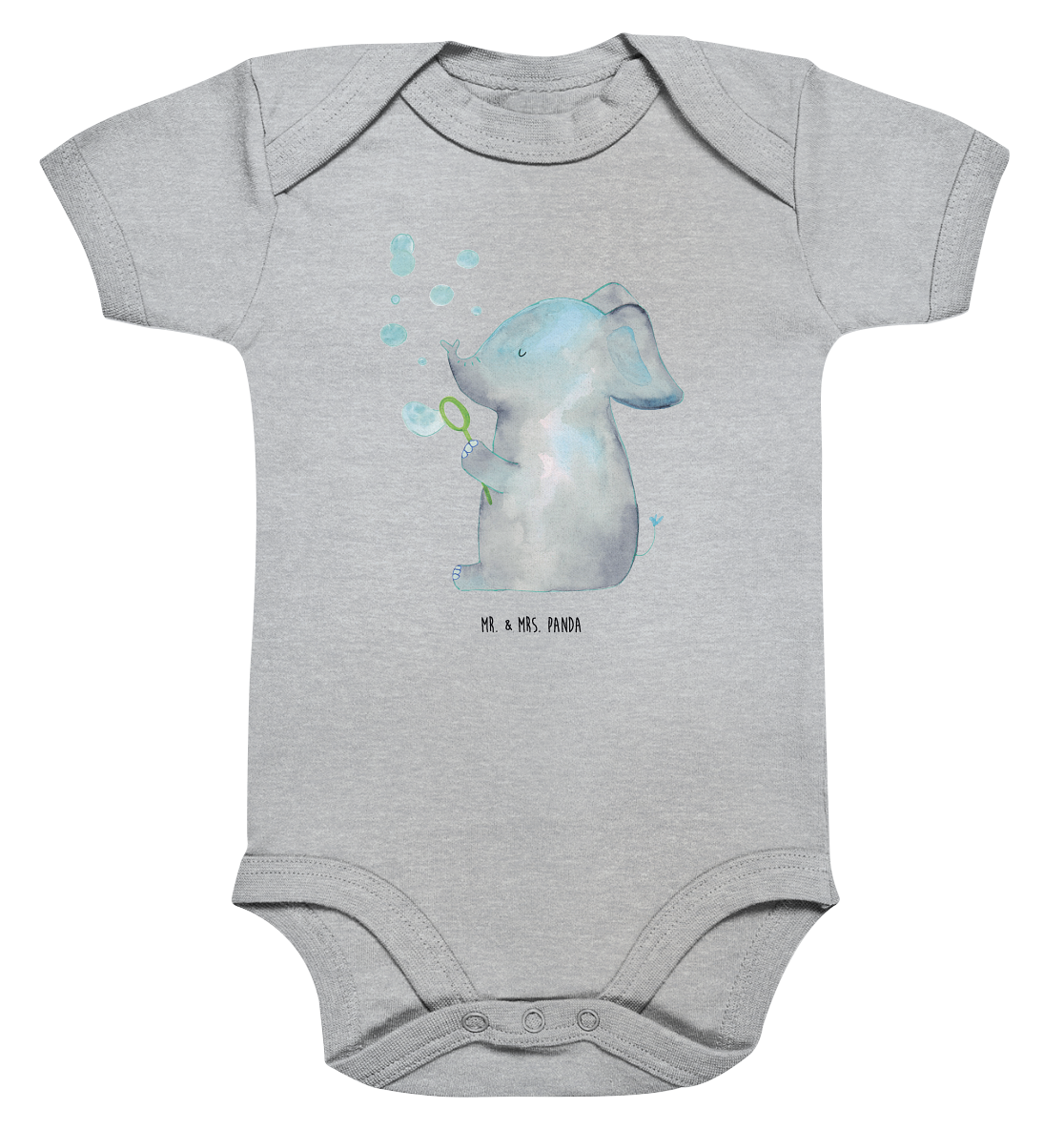 Organic Baby Body Elefant Seifenblasen - 1. - 3. Monat - mit Spruch - Heather Grey