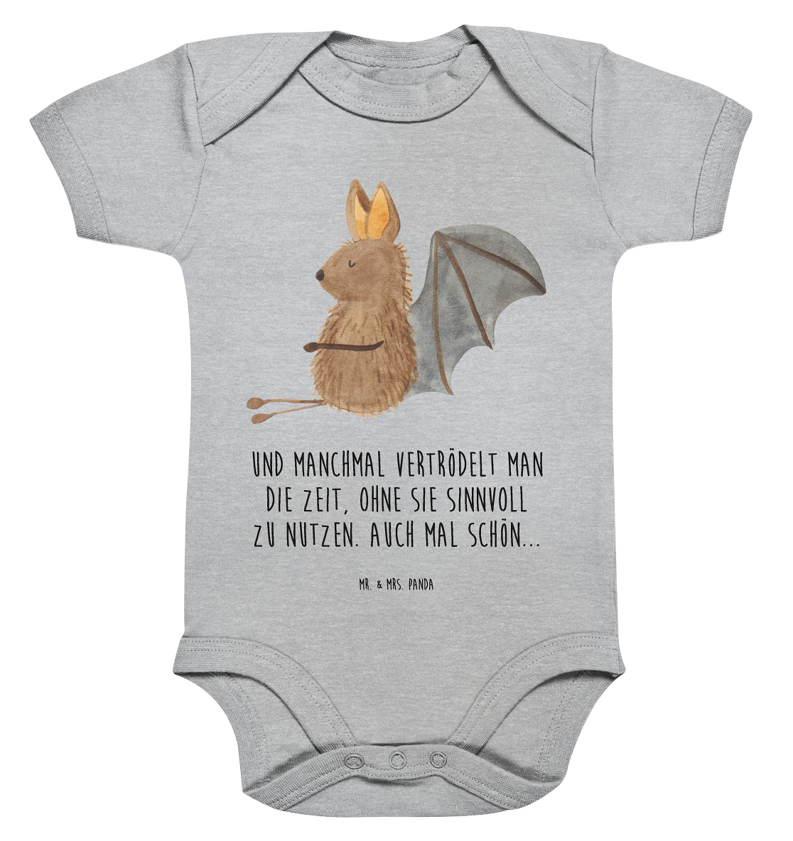 Organic Baby Body Fledermaus sitzend - 1. - 3. Monat - mit Spruch - Heather Grey
