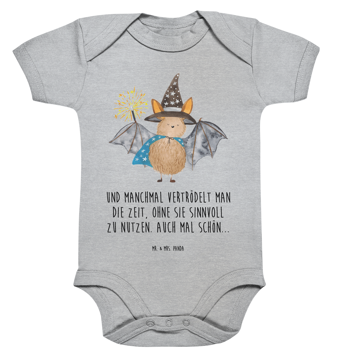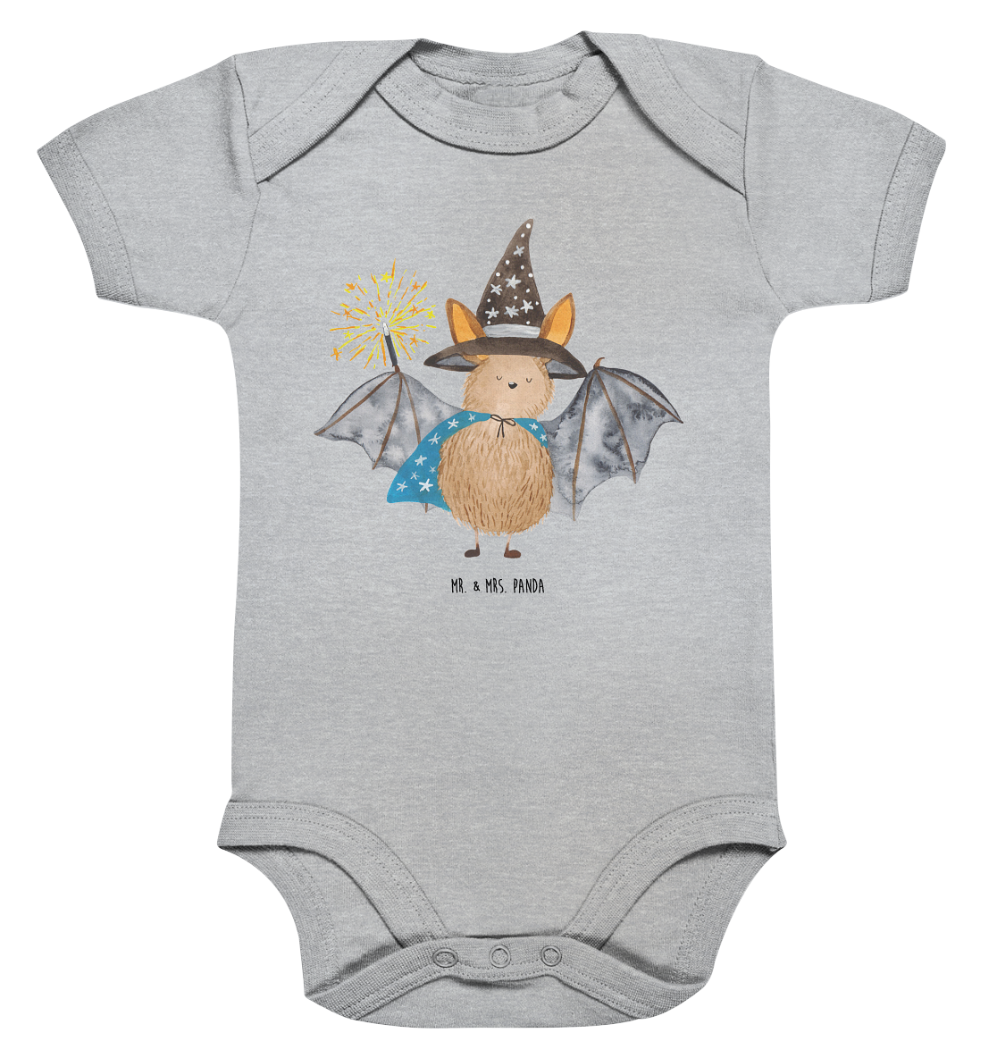 Organic Baby Body Fledermaus Zauberer - 1. - 3. Monat - mit Spruch - Heather Grey