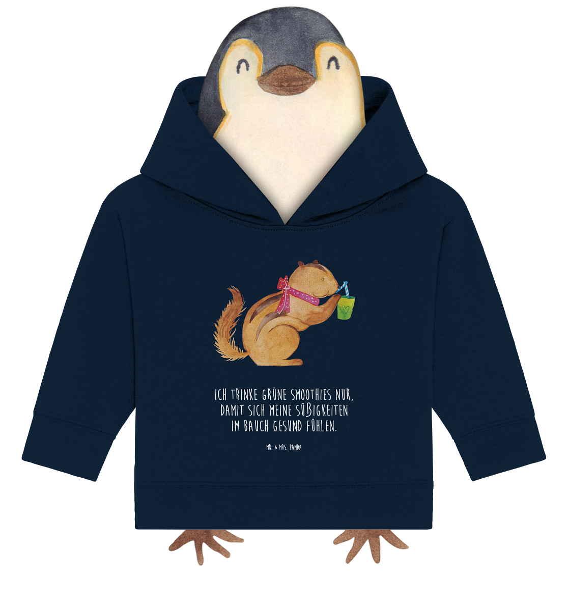 Organic Baby Hoodie Eichhörnchen Smoothie - 12. - 18. Monat - mit Spruch - French Navy