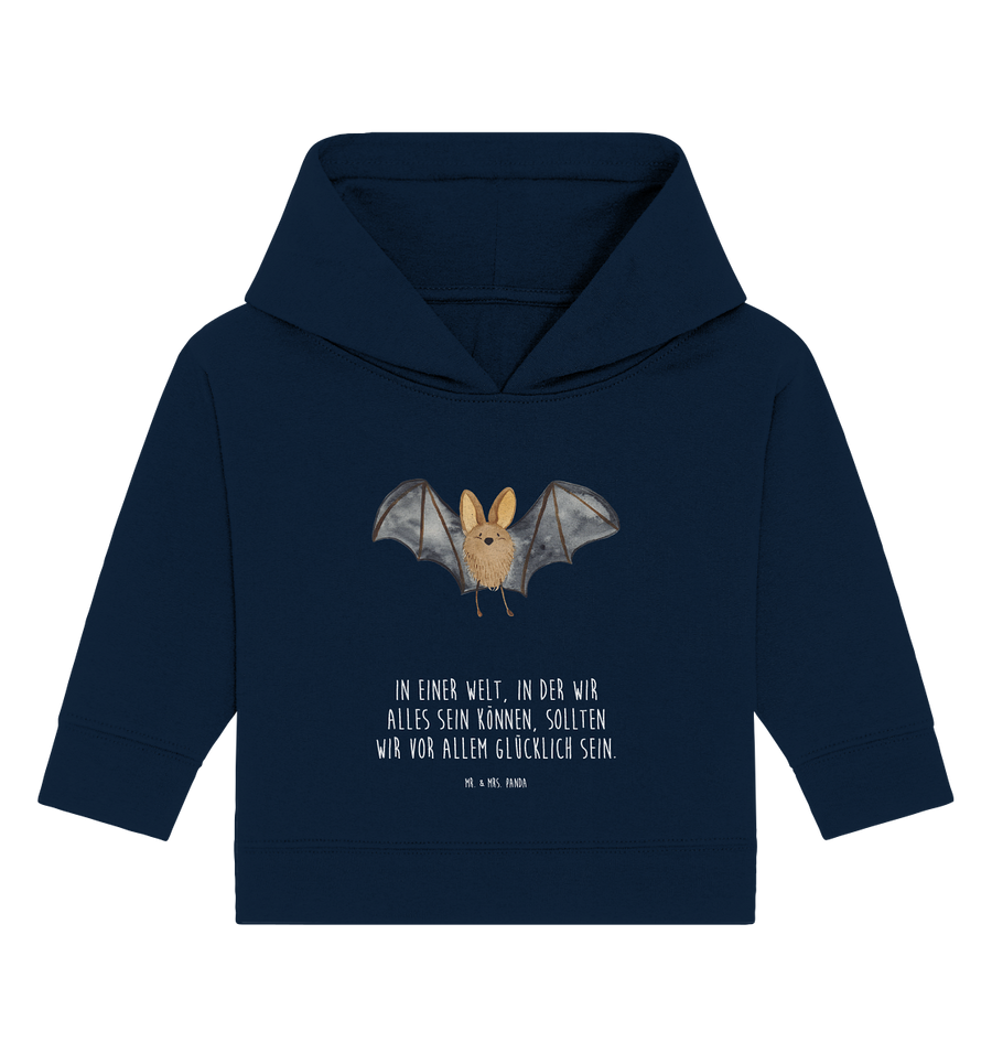 Organic Baby Hoodie Fledermaus Flügel - 12. - 18. Monat - mit Spruch - French Navy
