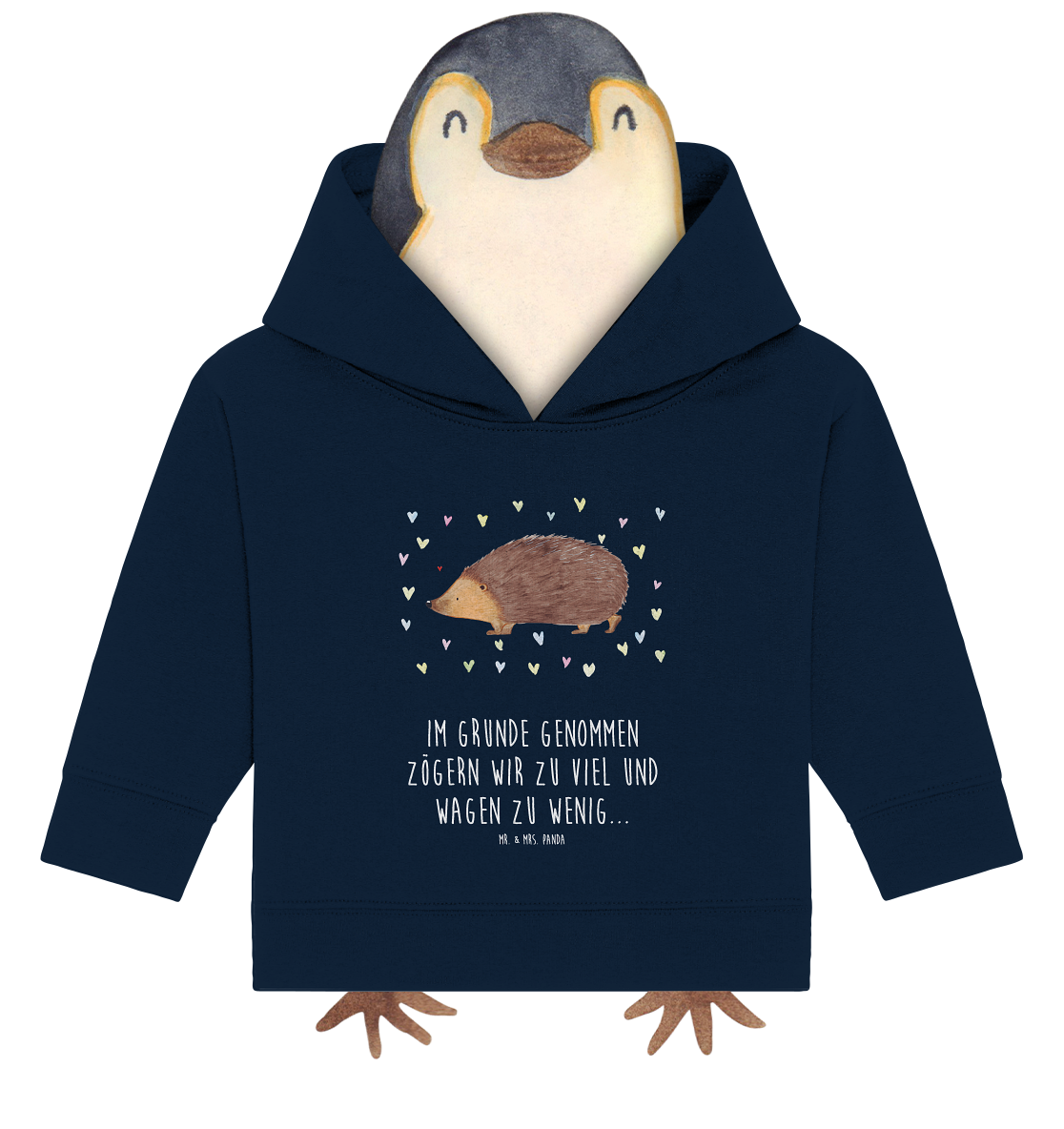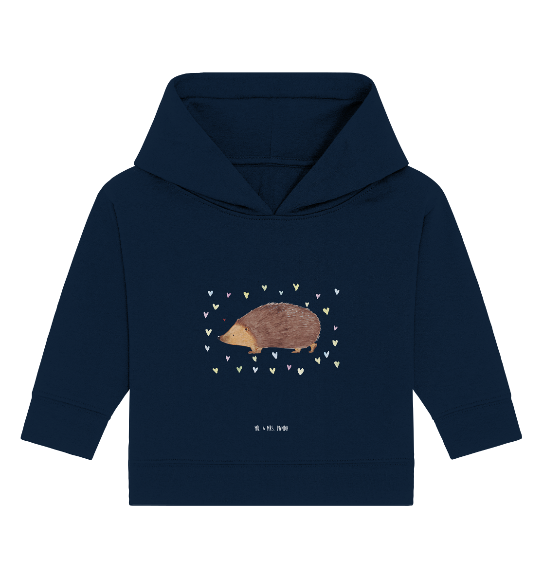 Organic Baby Hoodie Igel Herzen - 12. - 18. Monat - mit Spruch - French Navy