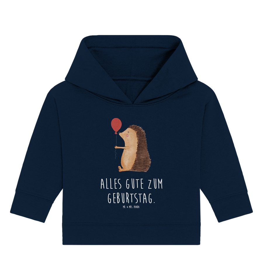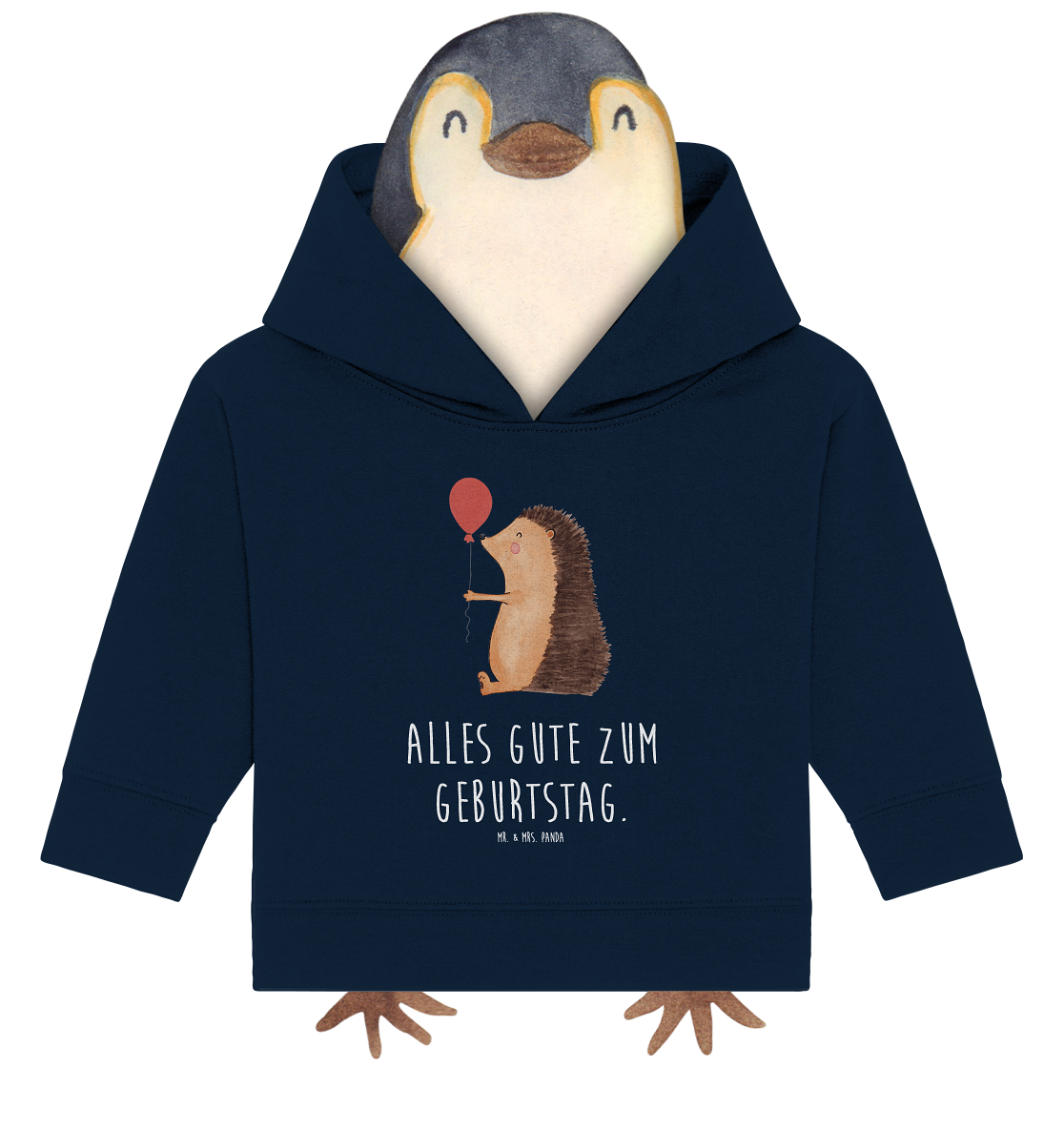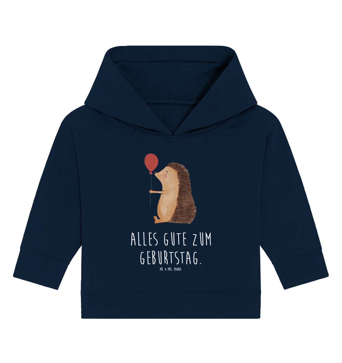 Organic Baby Hoodie Igel mit Luftballon - 12. - 18. Monat - mit Spruch - French Navy