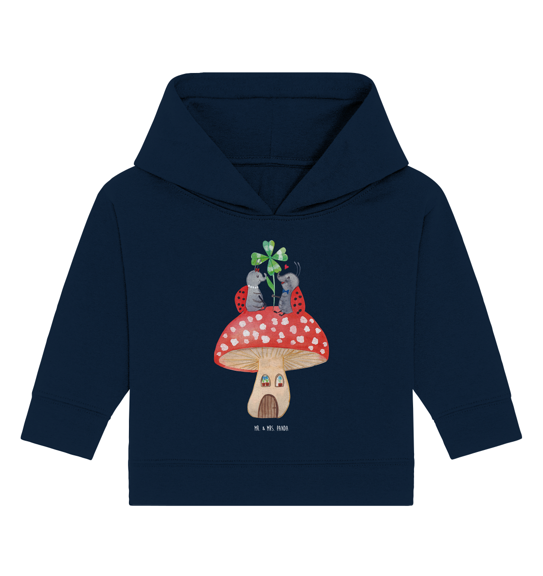 Organic Baby Hoodie Marienkäfer Paar Fliegenpilz - 12. - 18. Monat - mit Spruch - French Navy