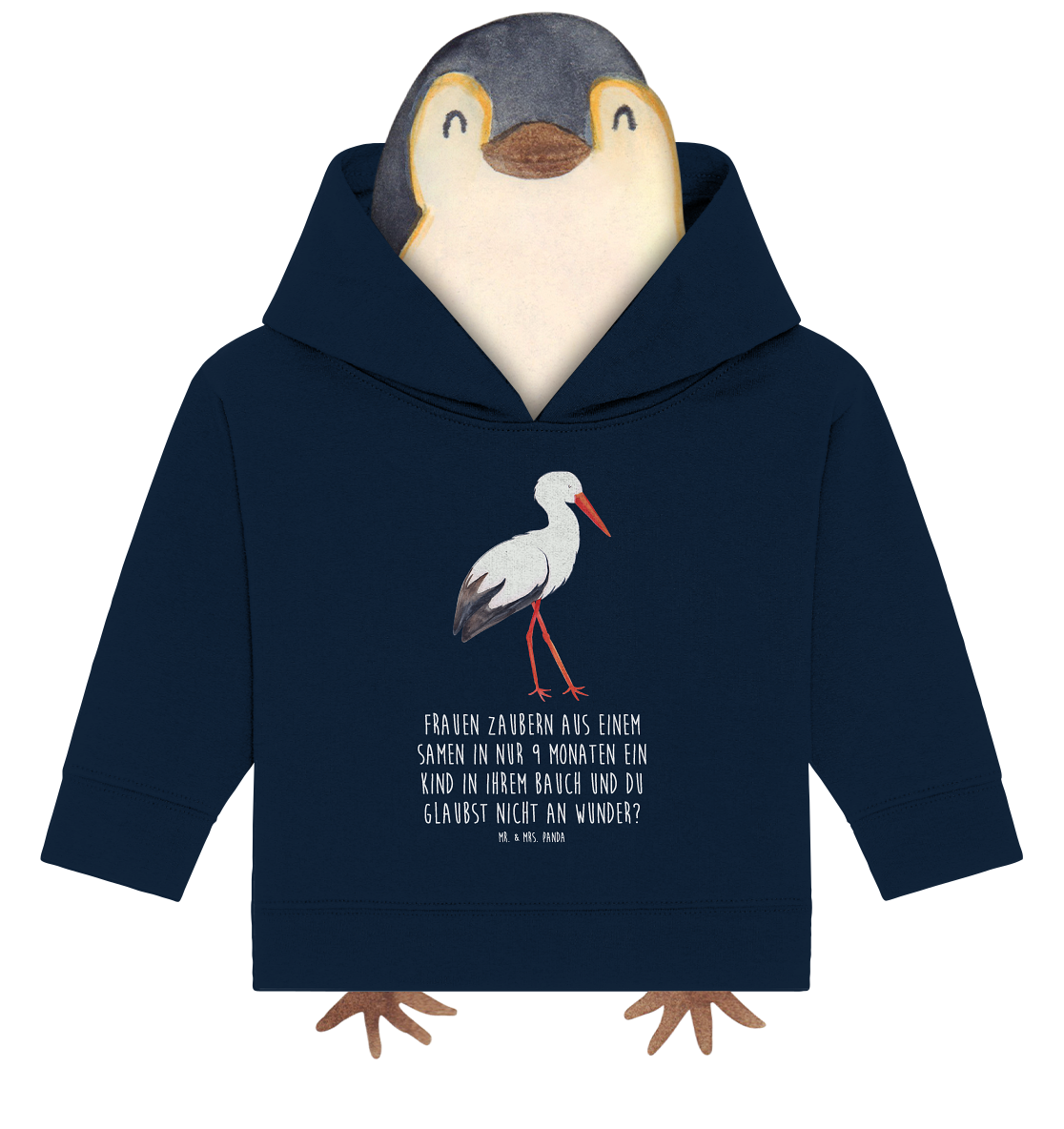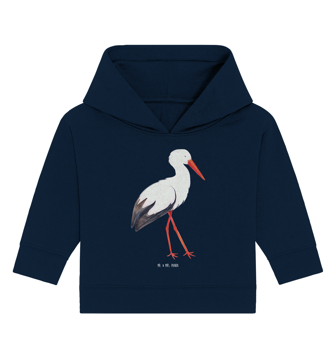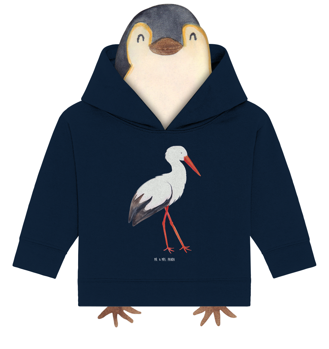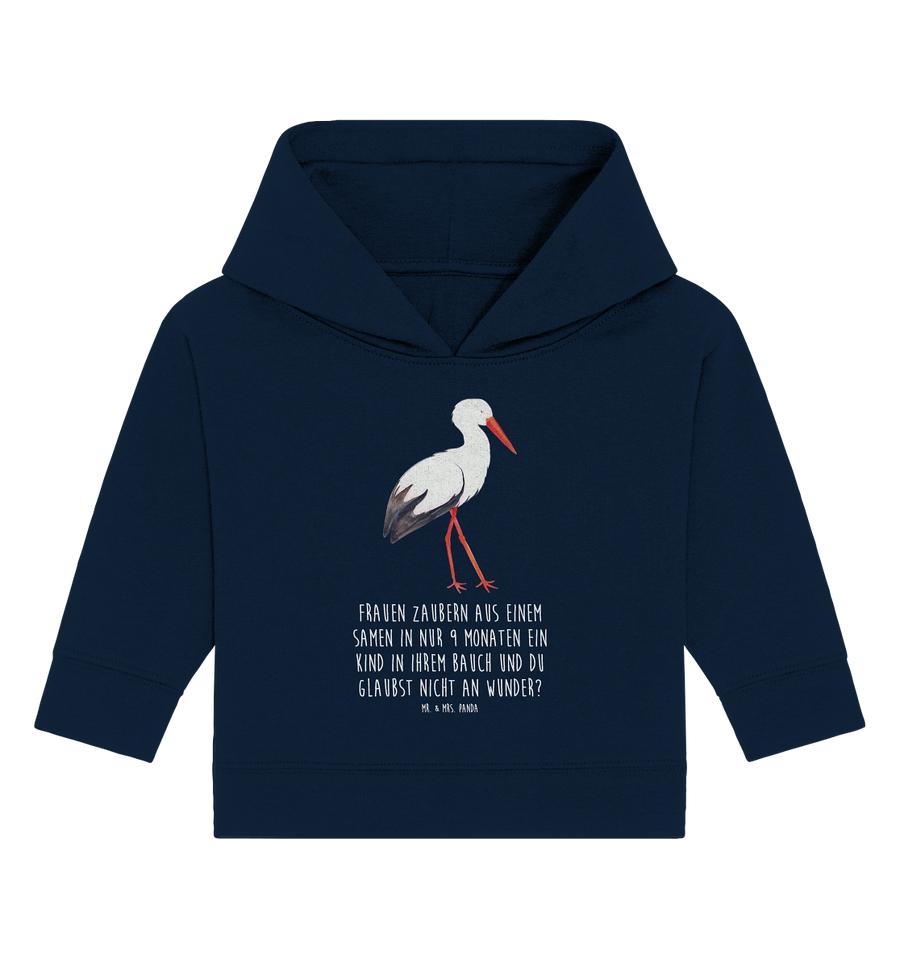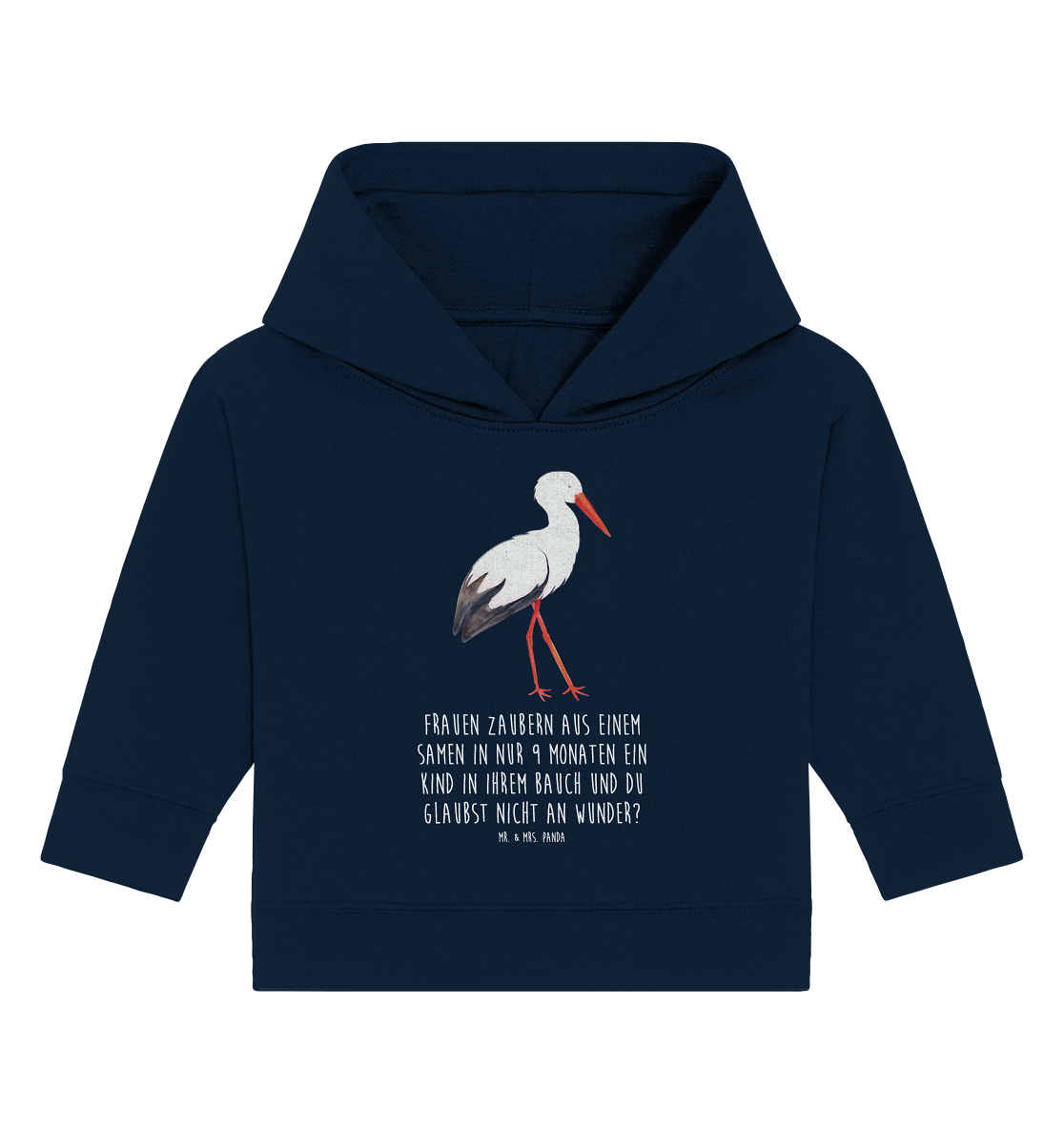 Organic Baby Hoodie Storch - 12. - 18. Monat - mit Spruch - French Navy