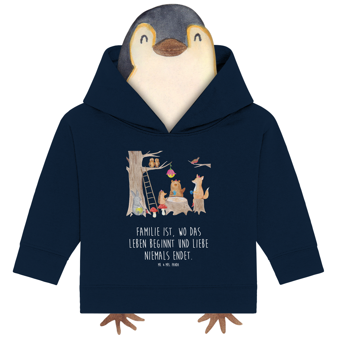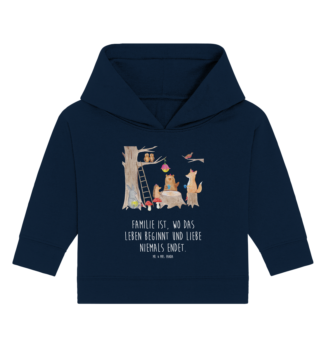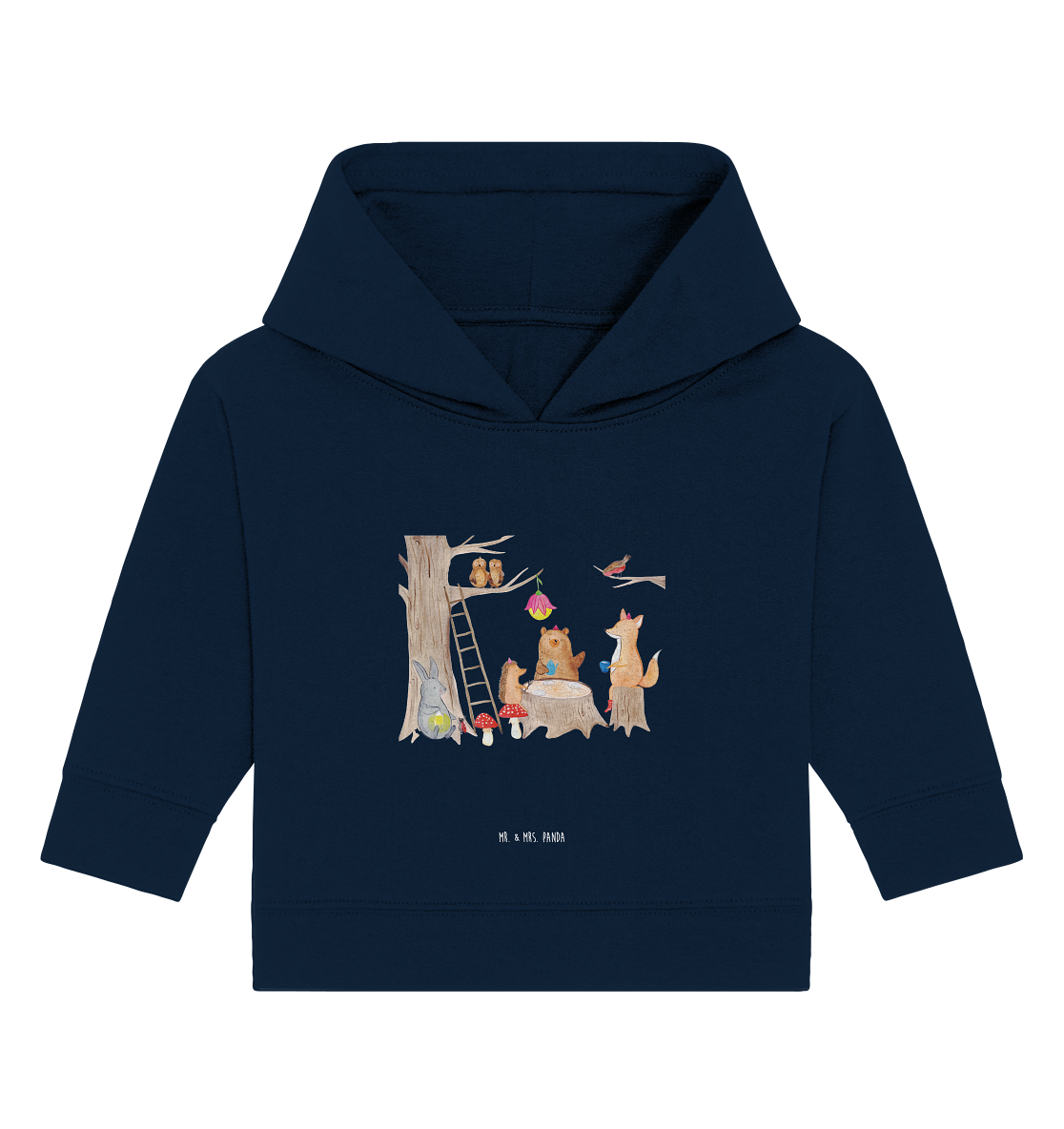 Organic Baby Hoodie Waldtiere Picknick - 12. - 18. Monat - mit Spruch - French Navy