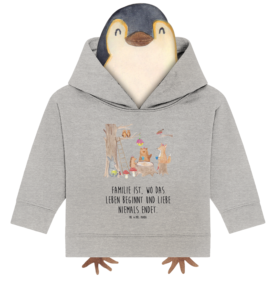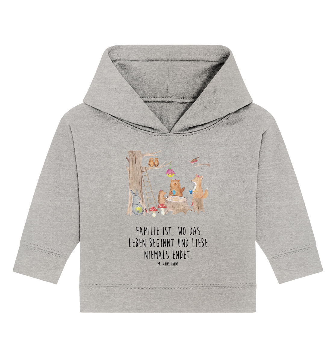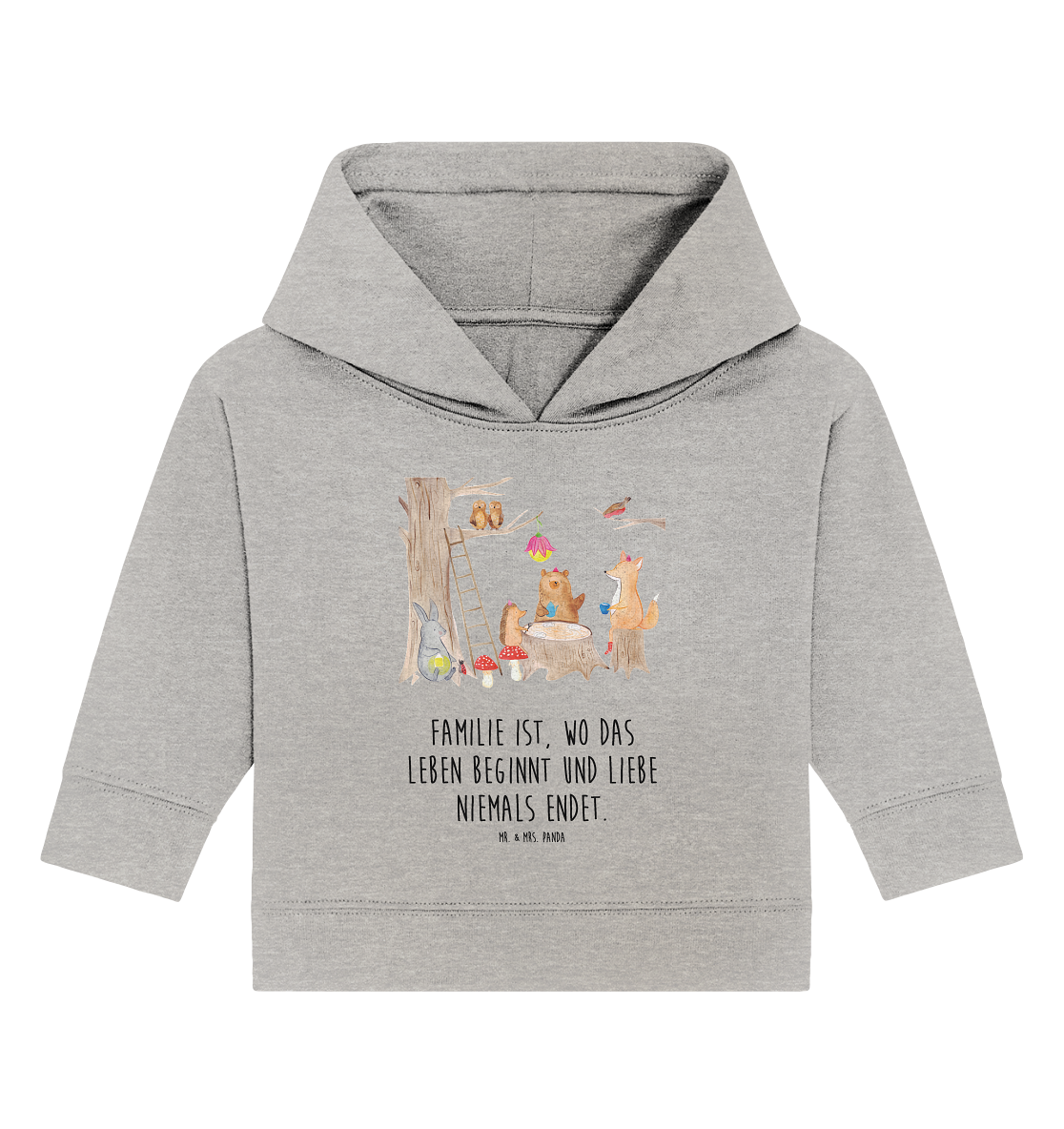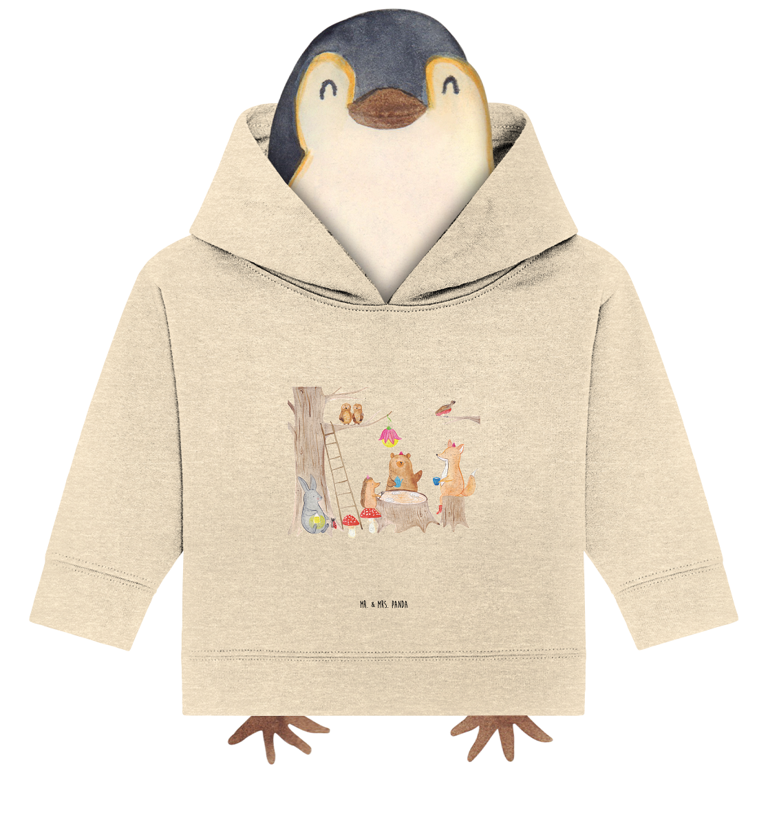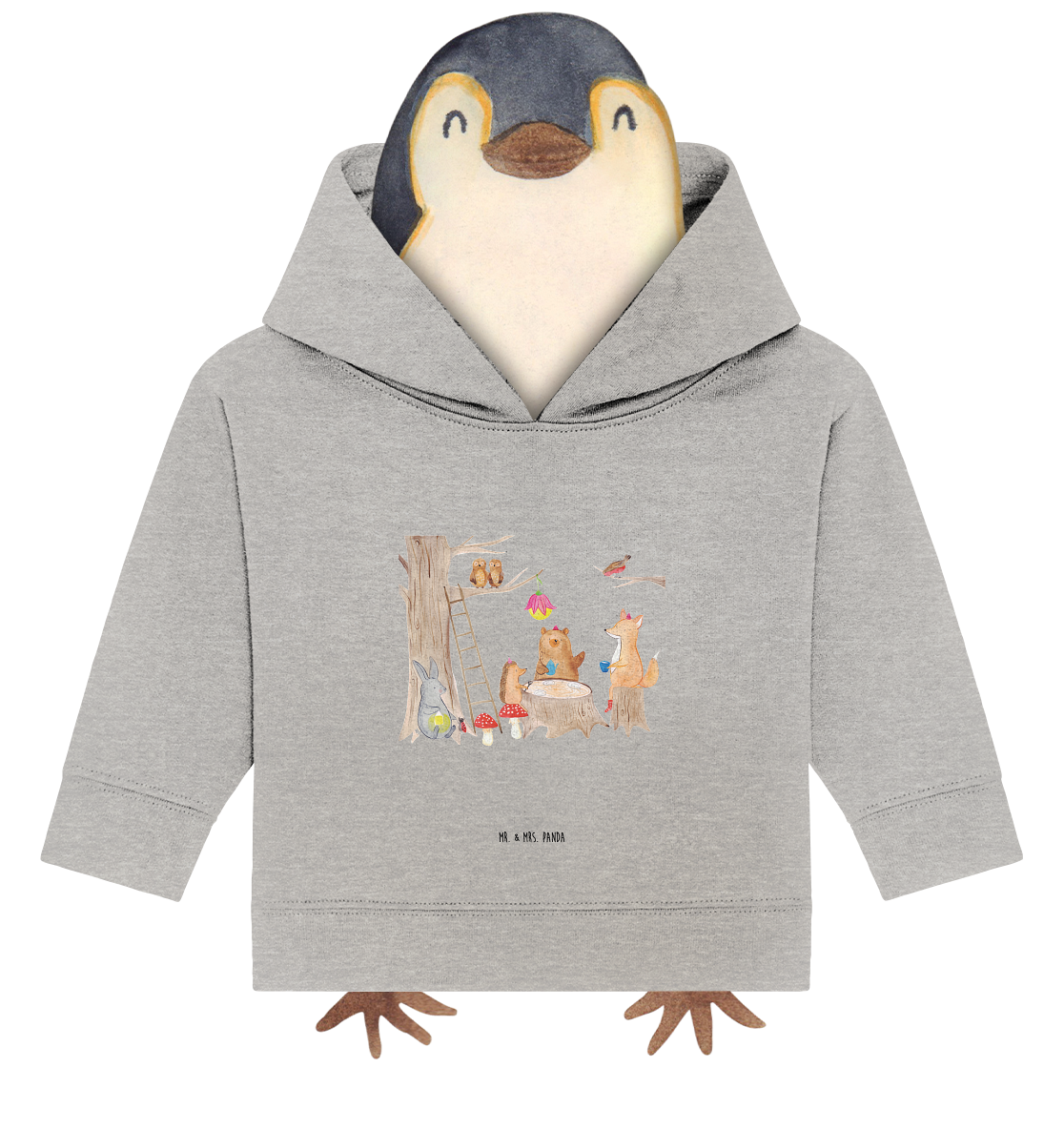 Organic Baby Hoodie Waldtiere Picknick Bio, Baby Kapuzenshirt, Baby Kapuzensweatshirt, Baby Hoodie, Baby Pullover, süße Tiermotive, gute Laune, lustige Sprüche, Tiere, Waldtiere, Picknick, Wald, Fuchs, Hase, Igel, Maus, Eichhörnchen