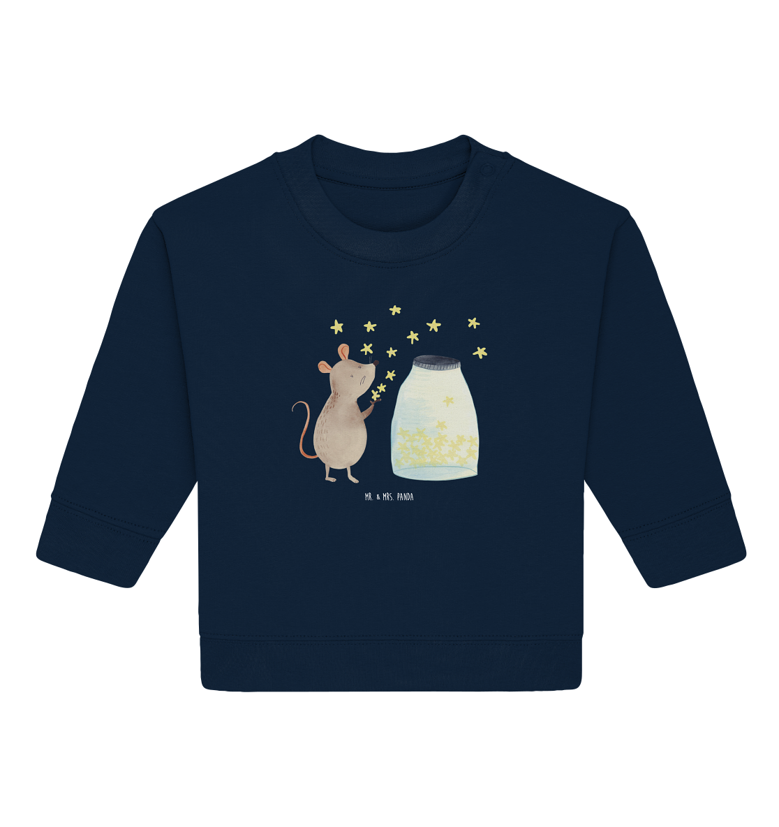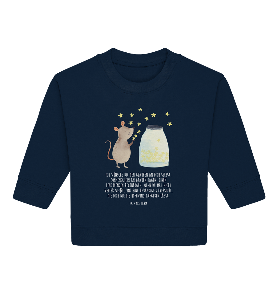 Organic Baby Pullover Maus Sterne - 18. - 24. Monat - mit Spruch - French Navy