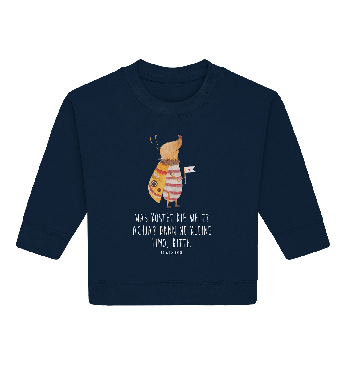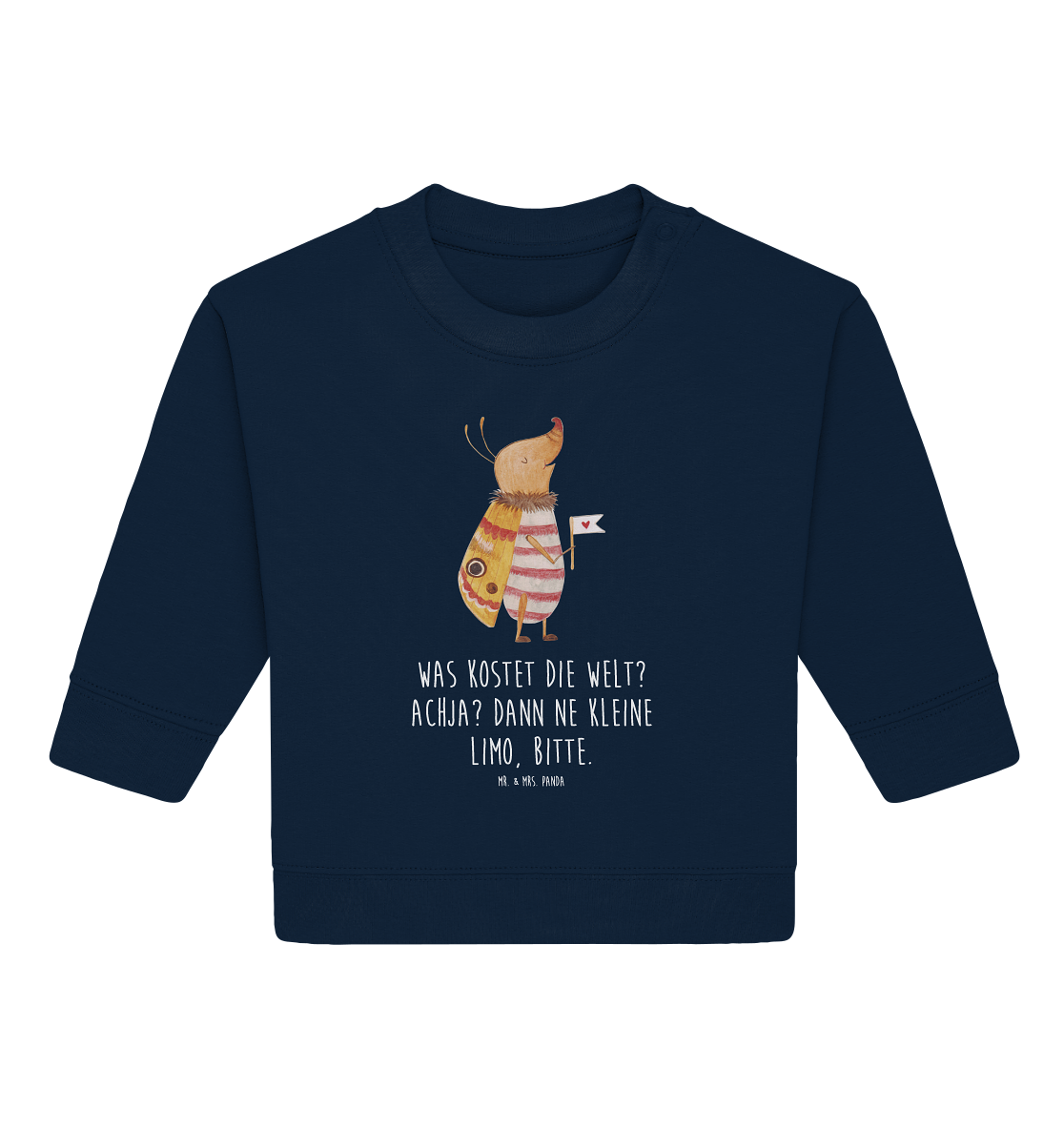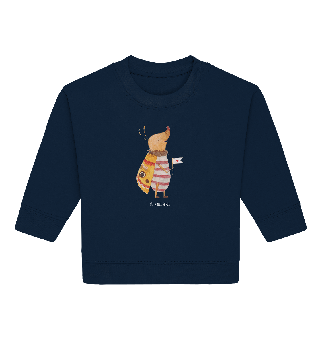 Organic Baby Pullover Nachtfalter mit Fähnchen - 6. - 12. Monat - mit Spruch - French Navy