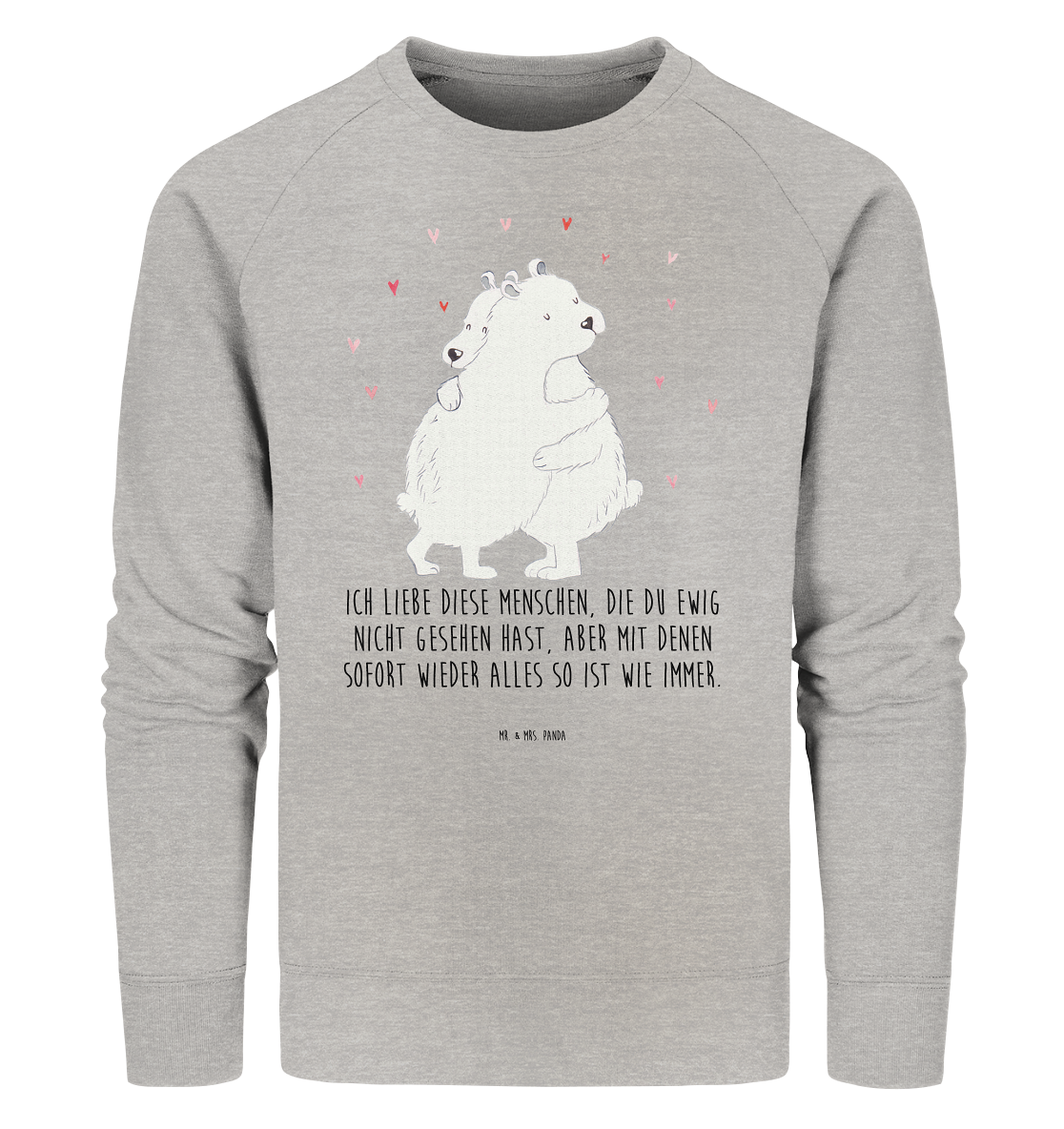 Organic Pullover Eisbär Umarmen - Größe XXL - mit Spruch - Heather Grey