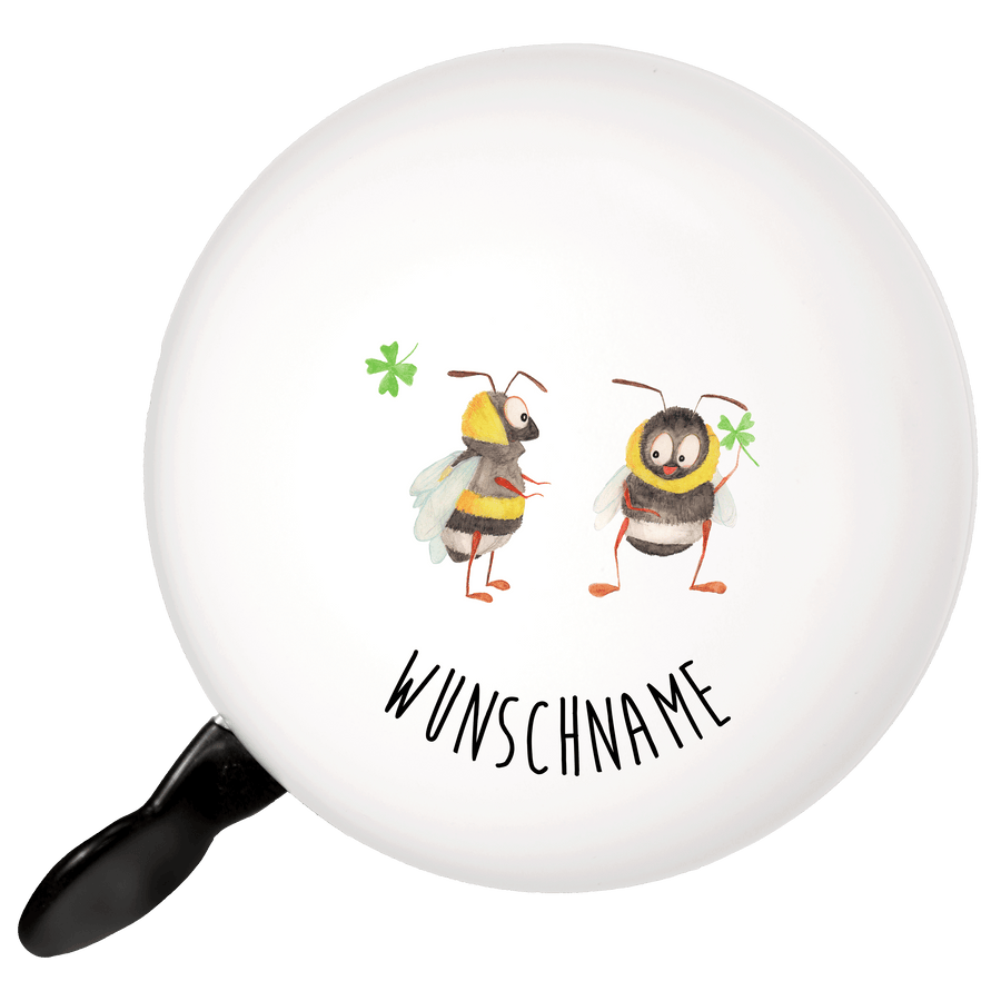 Personalisierte Fahrradklingel Hummeln mit Kleeblatt