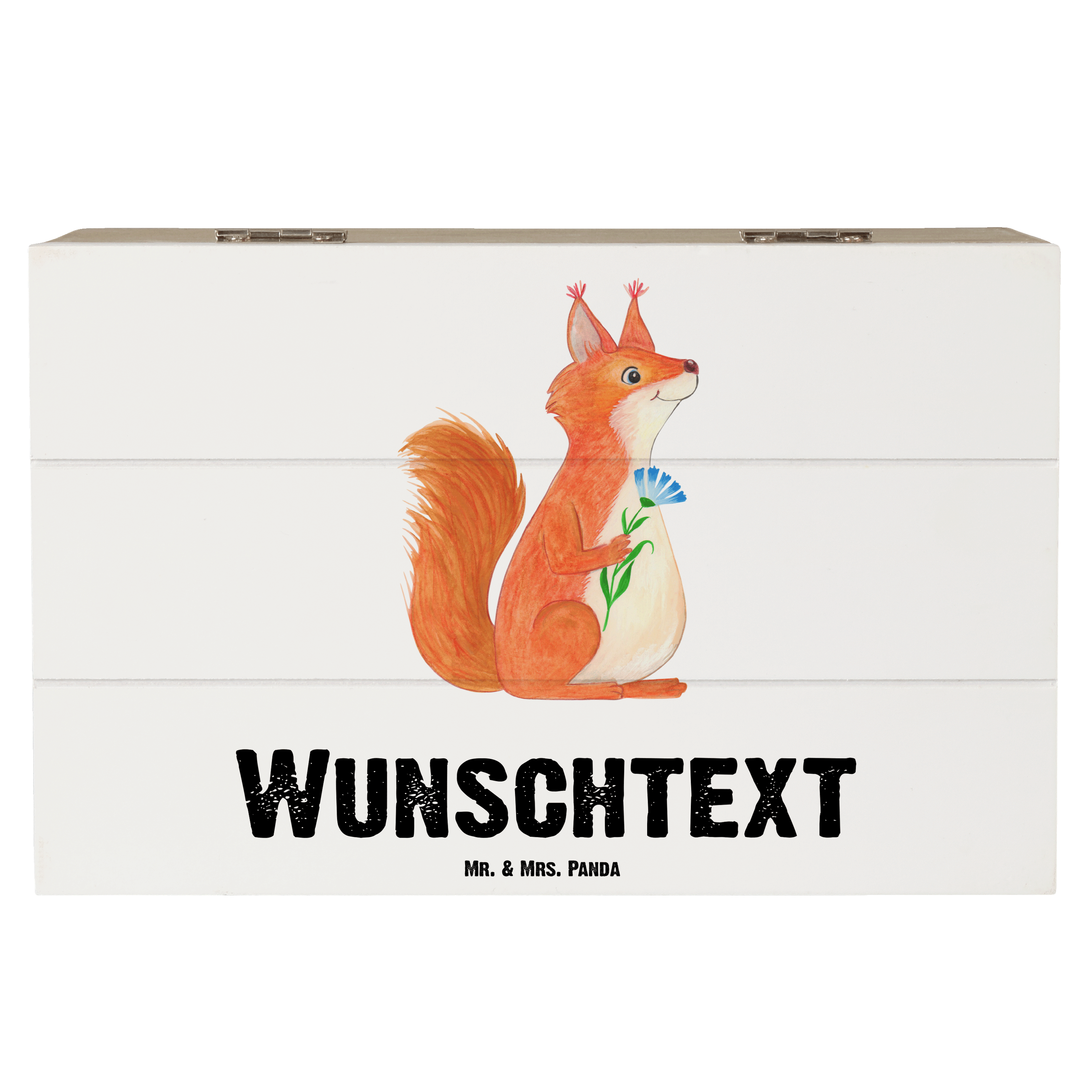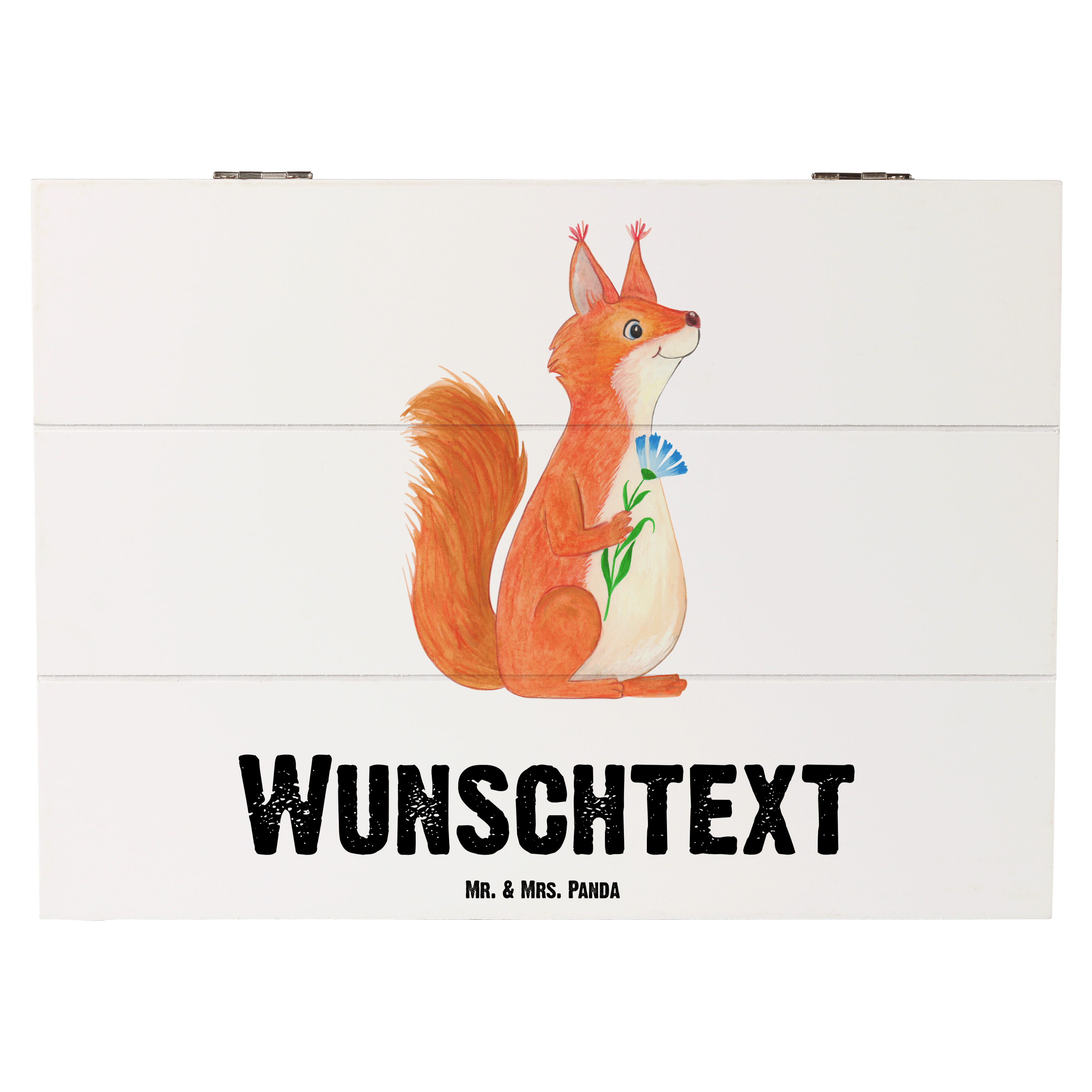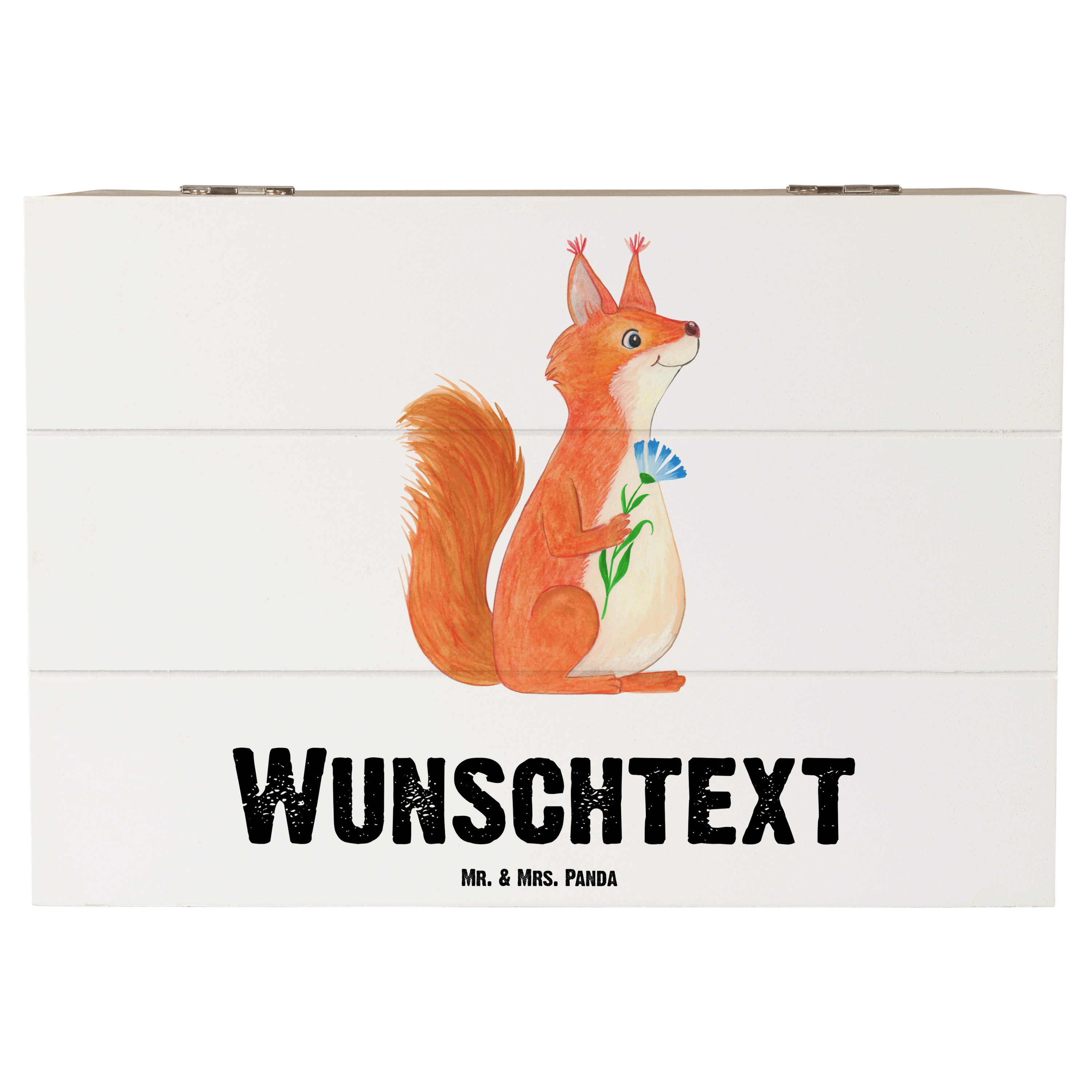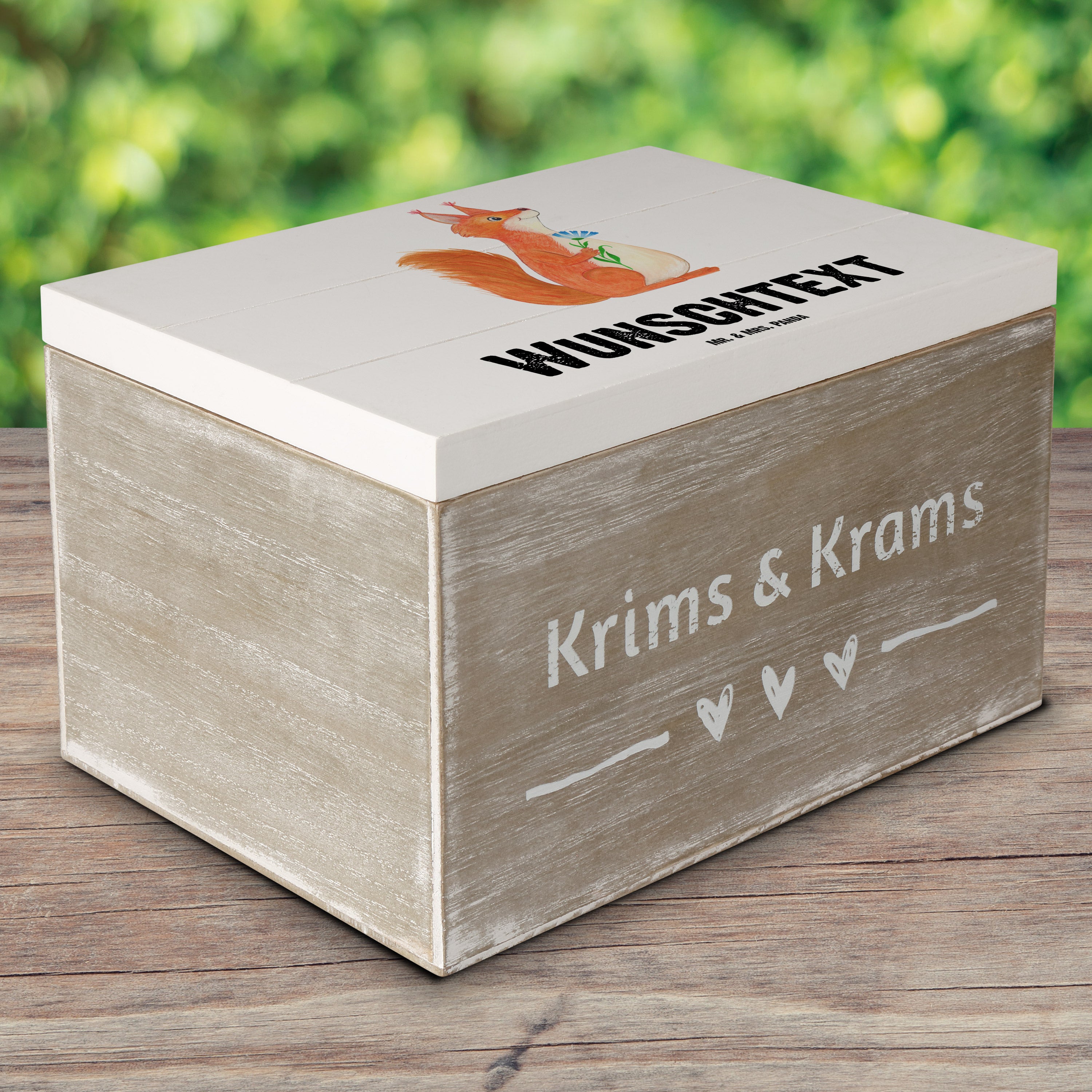 Personalisierte Holzkiste Eichhörnchen Blume - Weiß - 19 x 12 cm