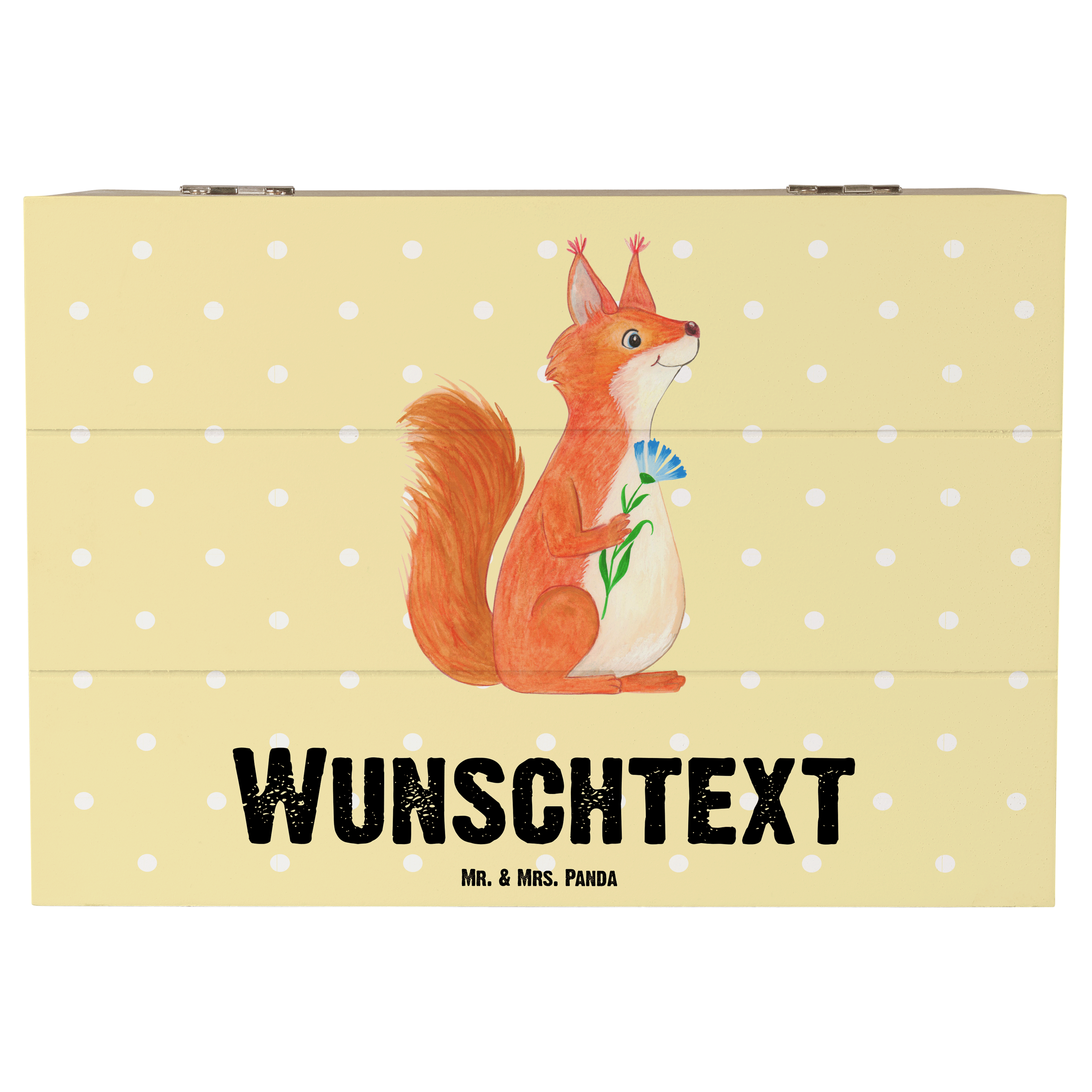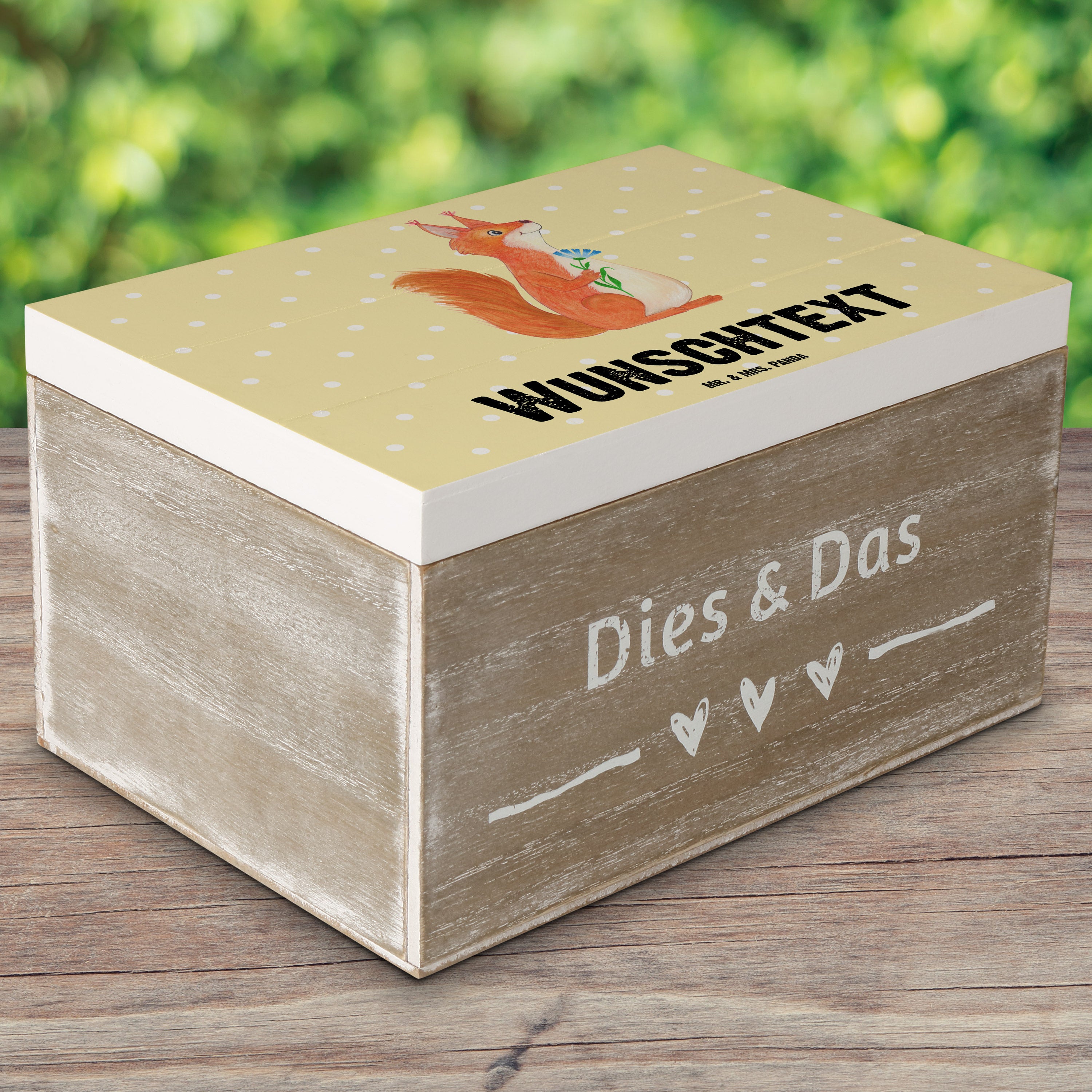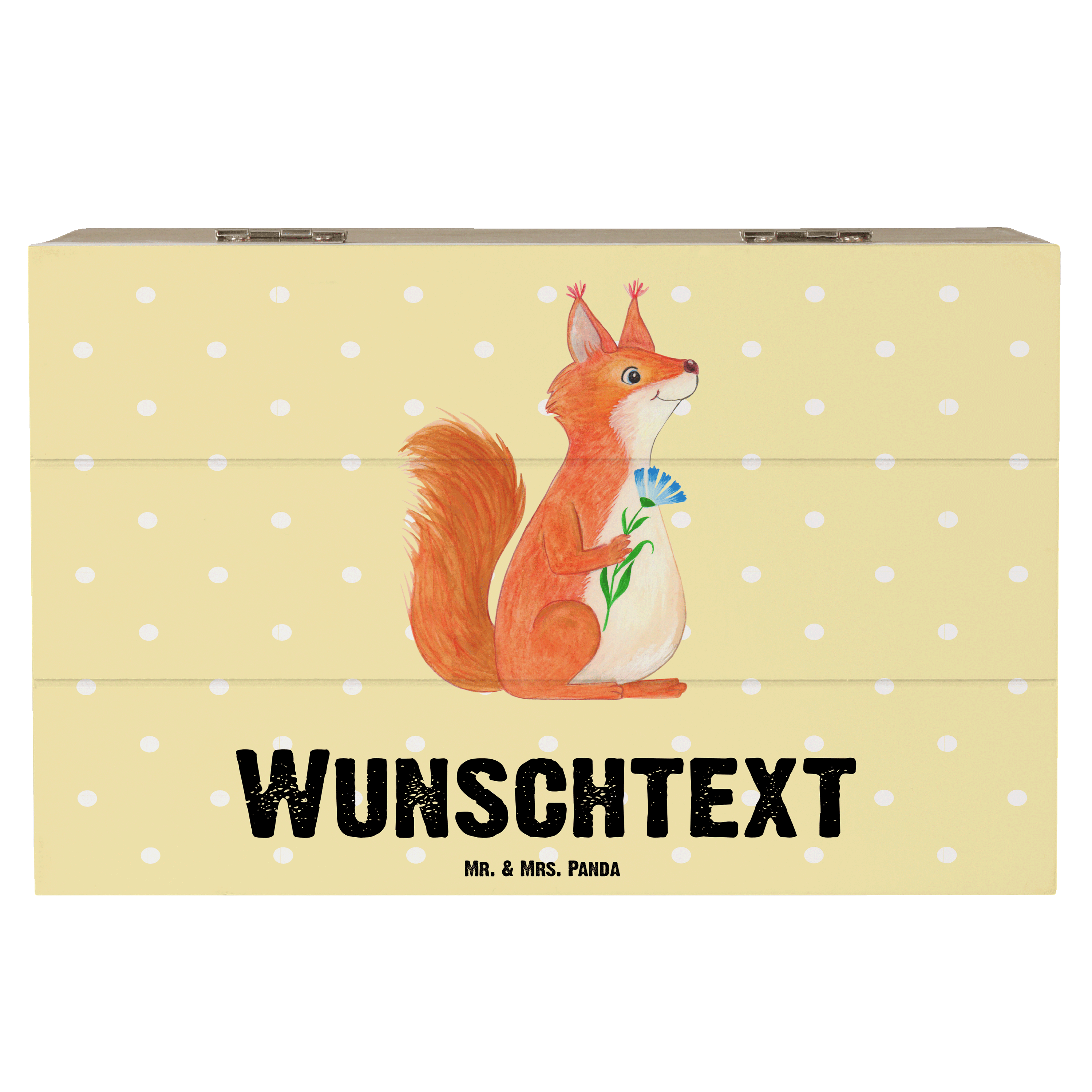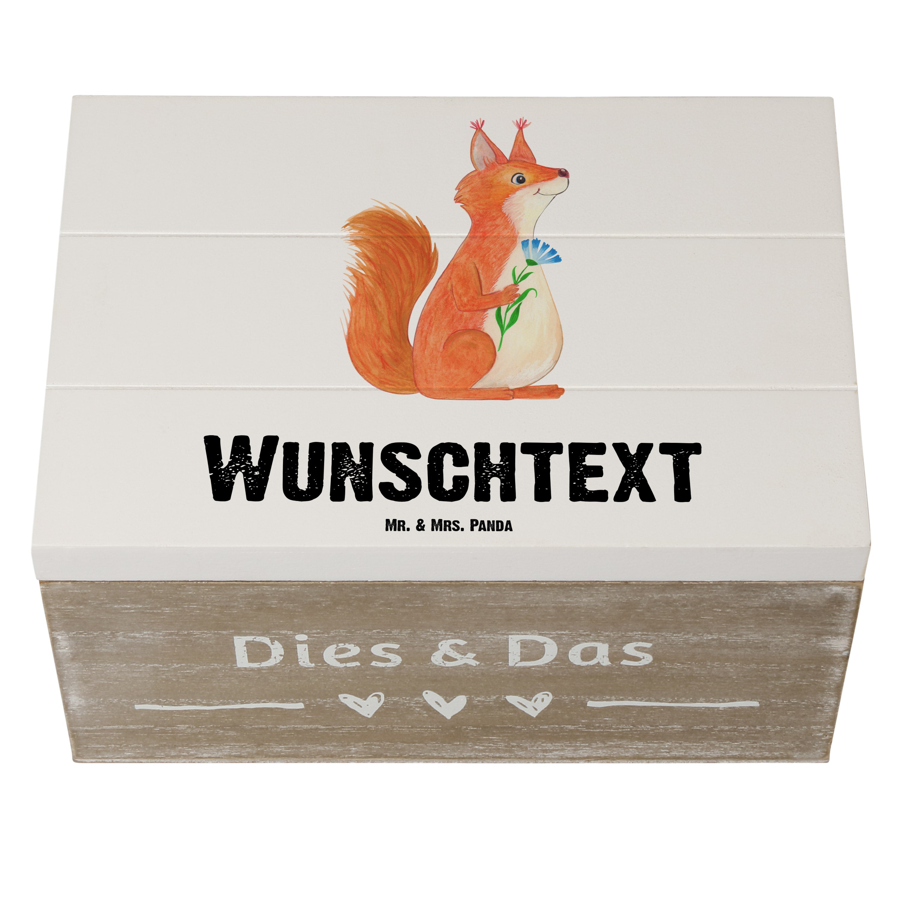 Personalisierte Holzkiste Eichhörnchen Blume - Weiß - 19 x 12 cm