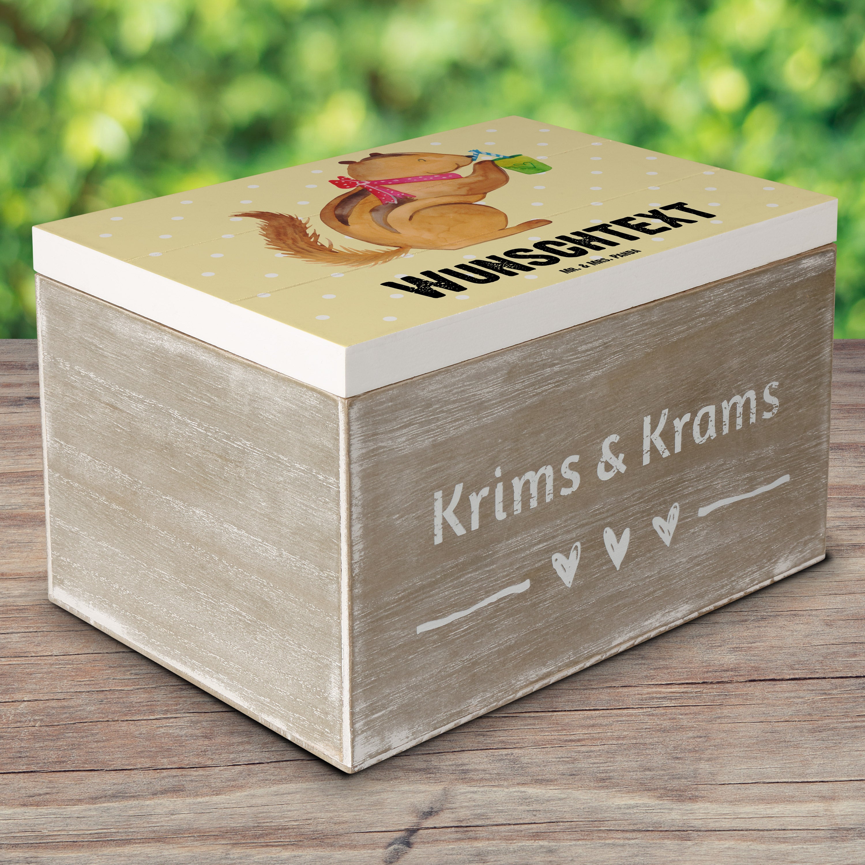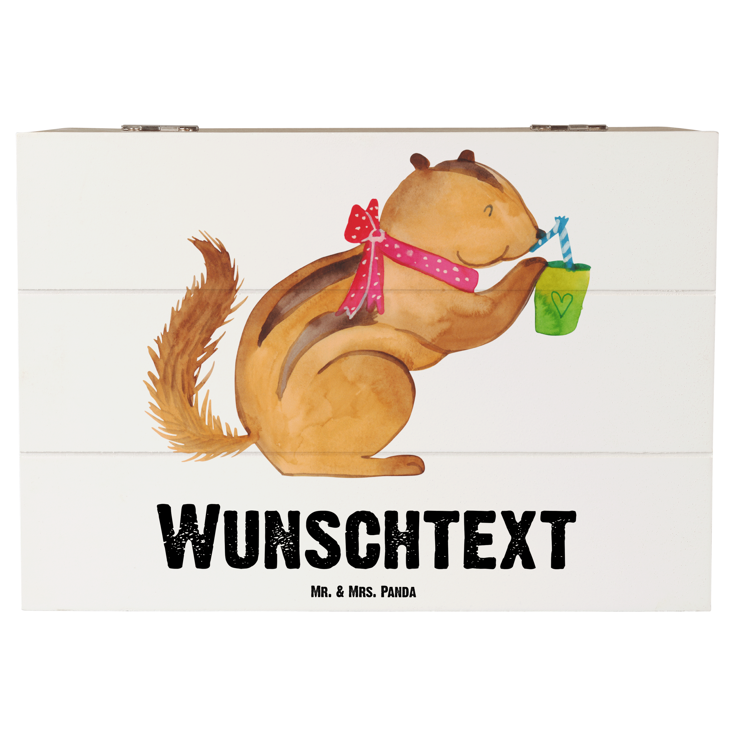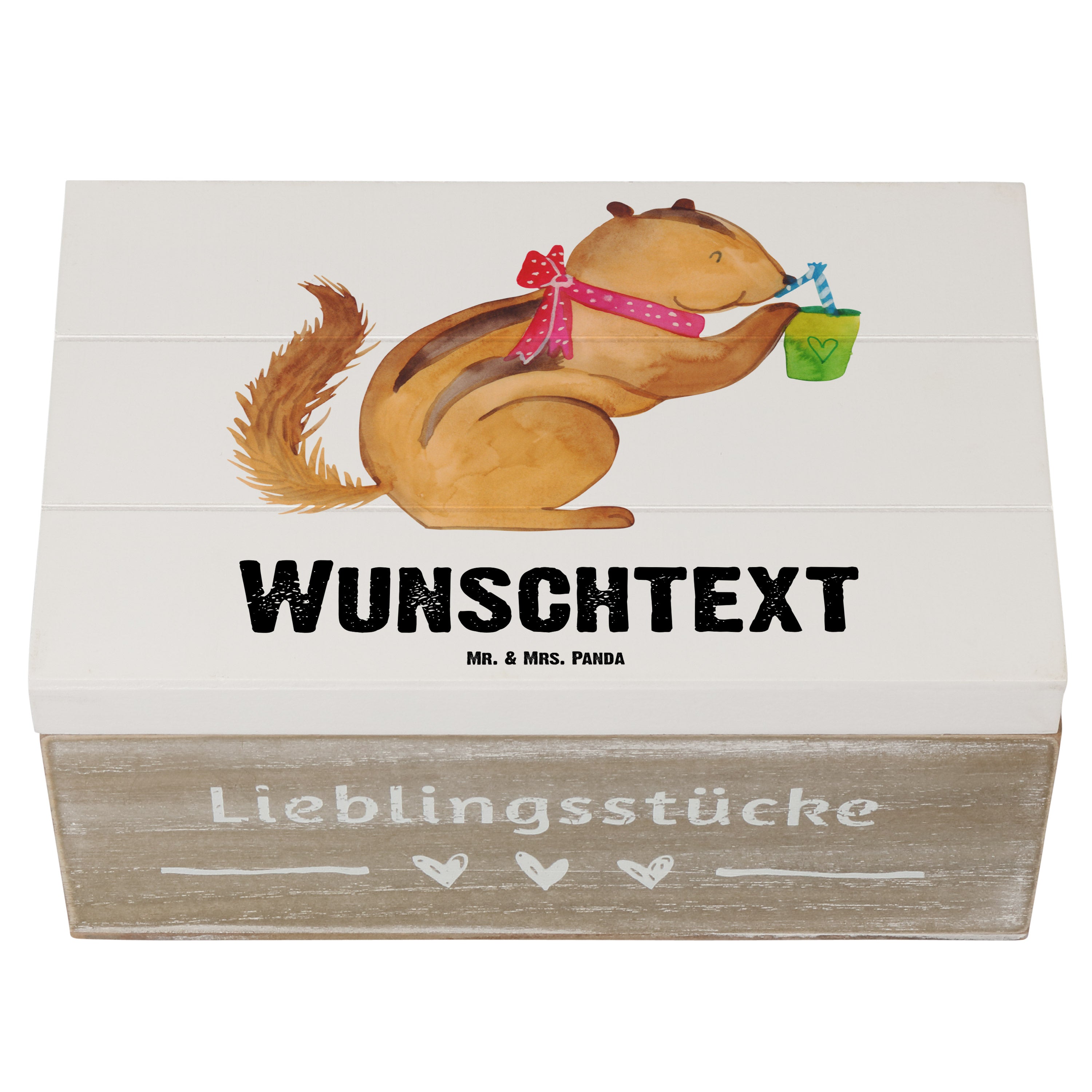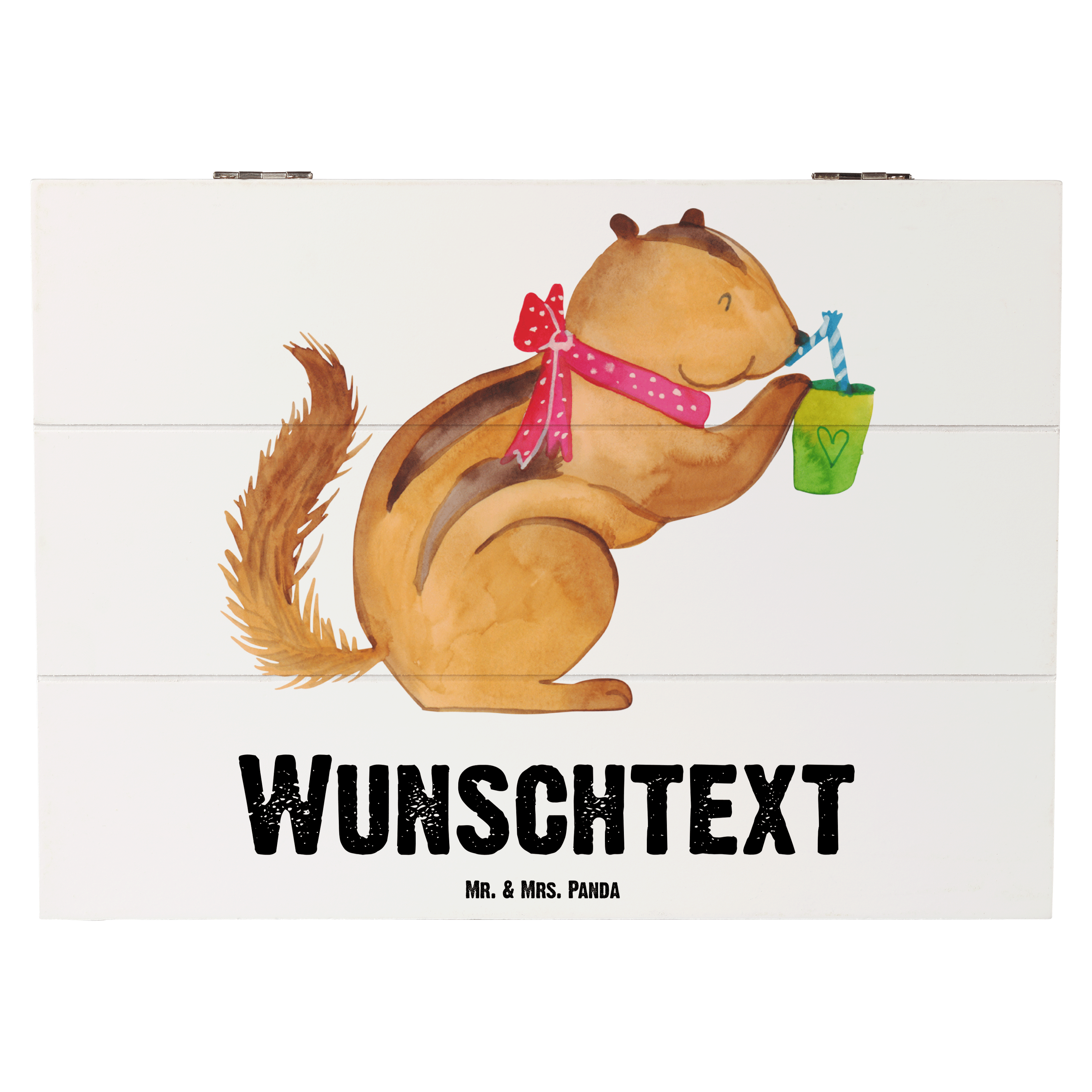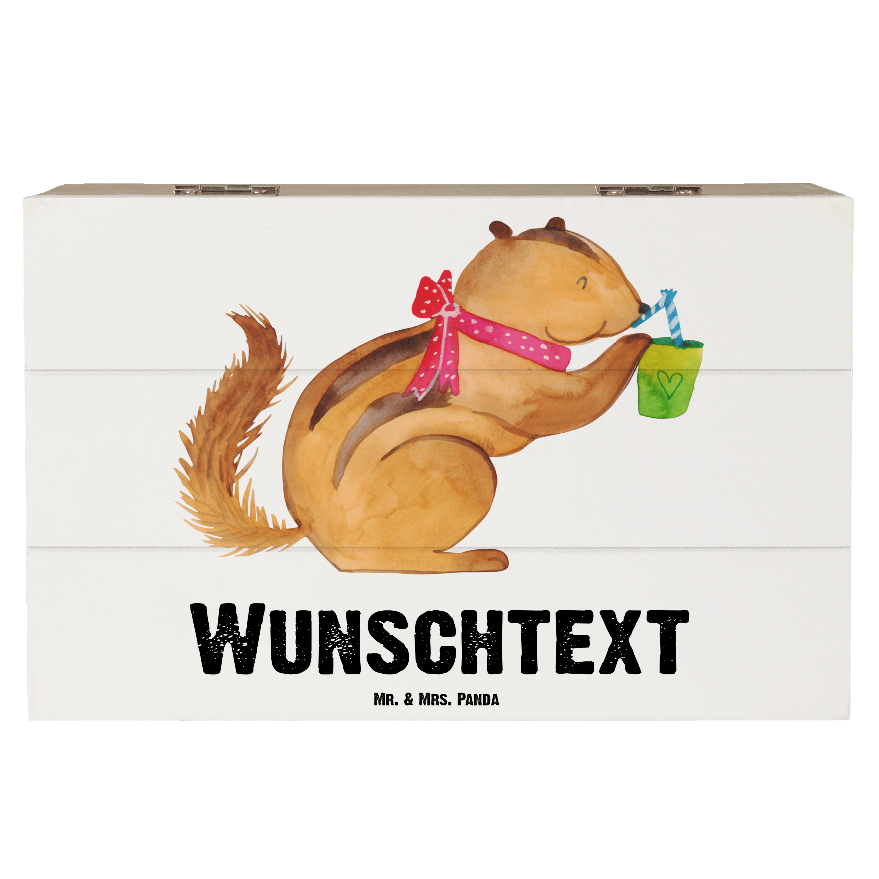 Personalisierte Holzkiste Eichhörnchen Smoothie - Weiß - 19 x 12 cm