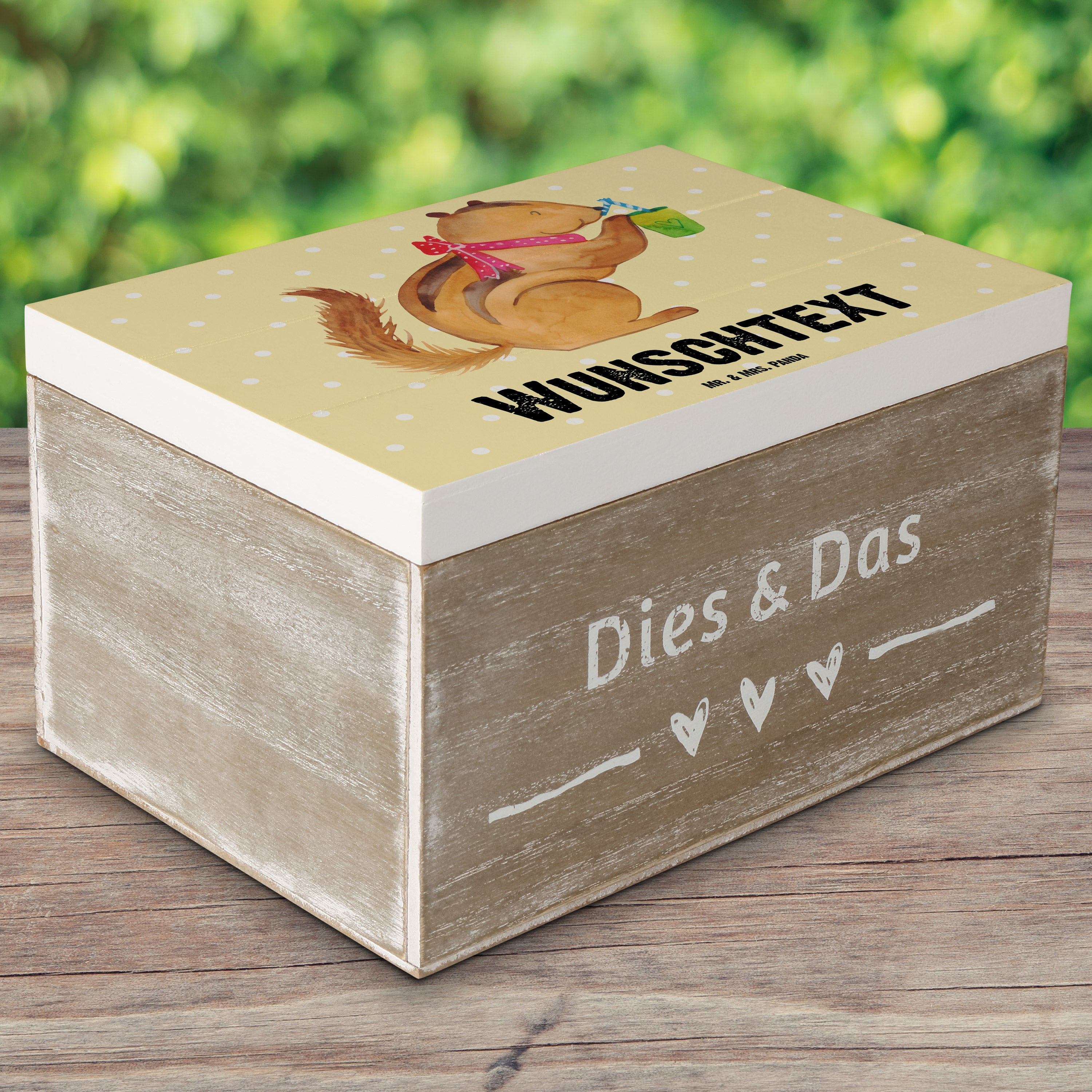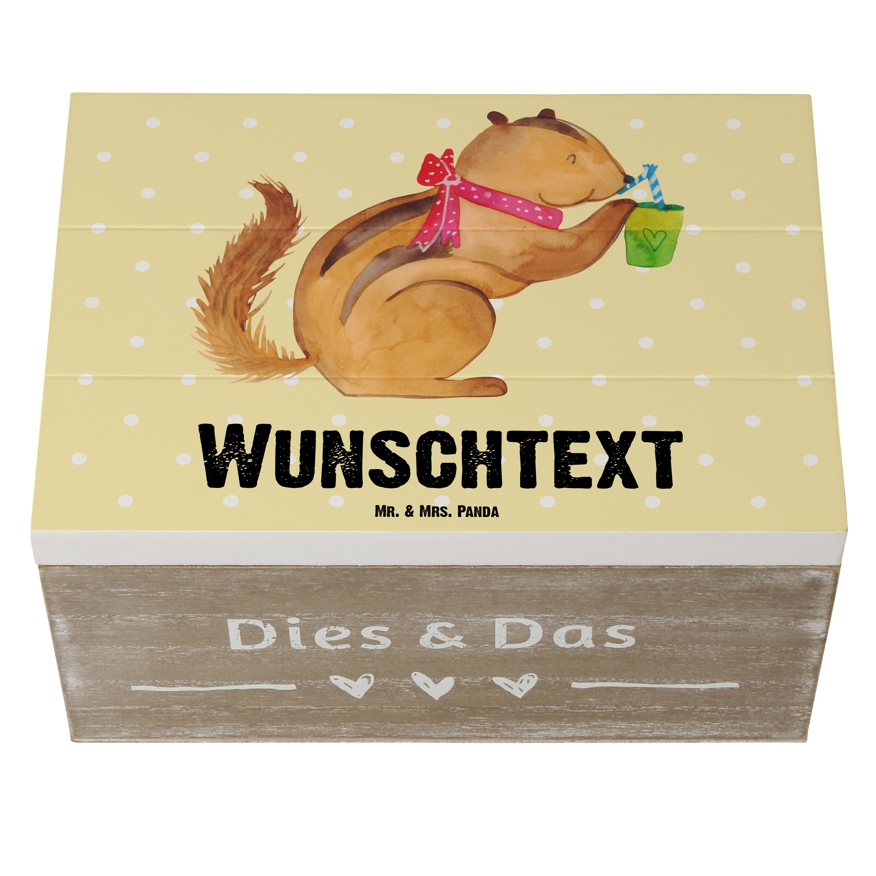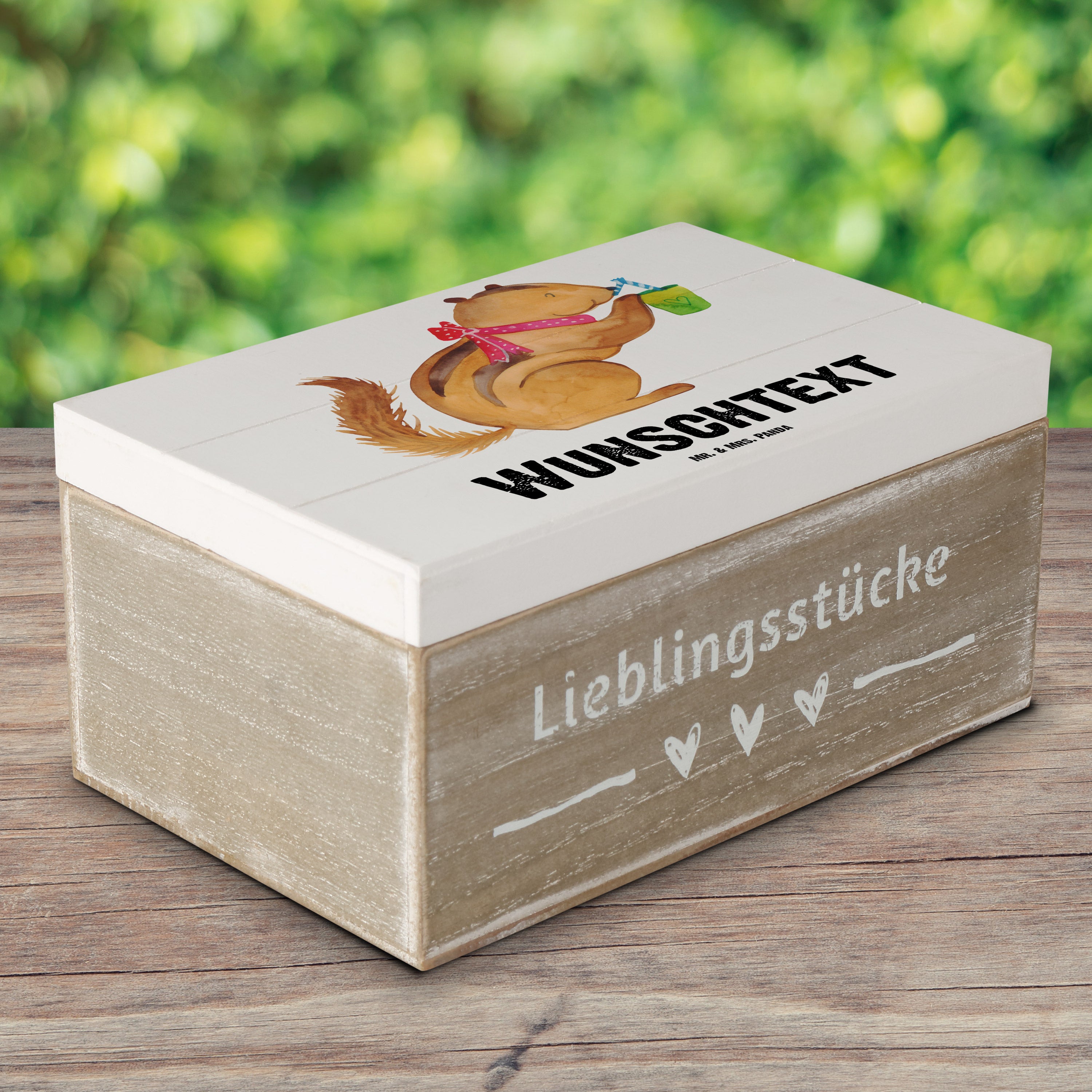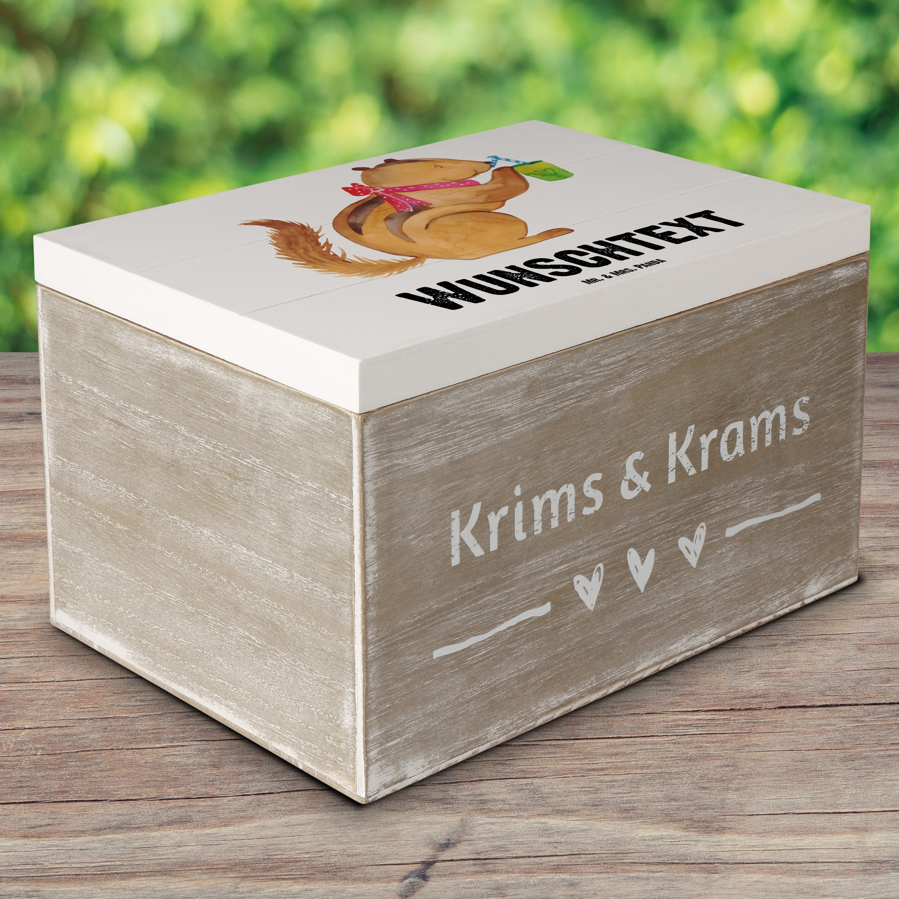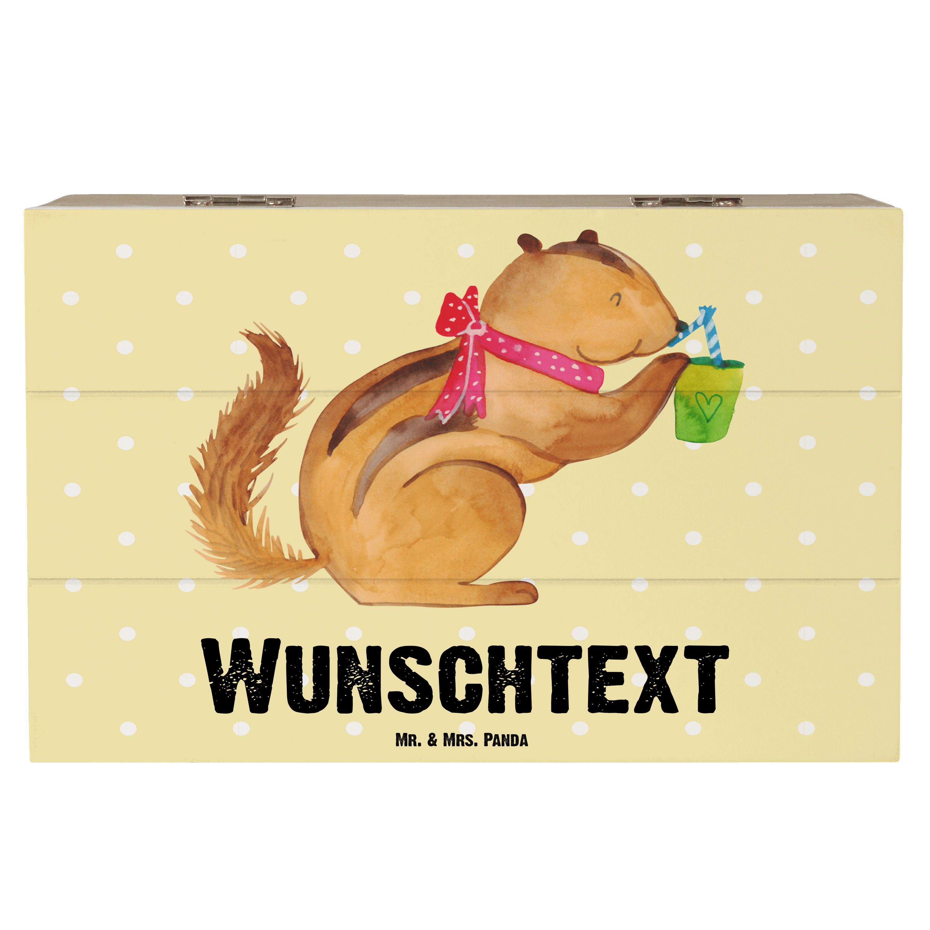 Personalisierte Holzkiste Eichhörnchen Smoothie - Weiß - 19 x 12 cm