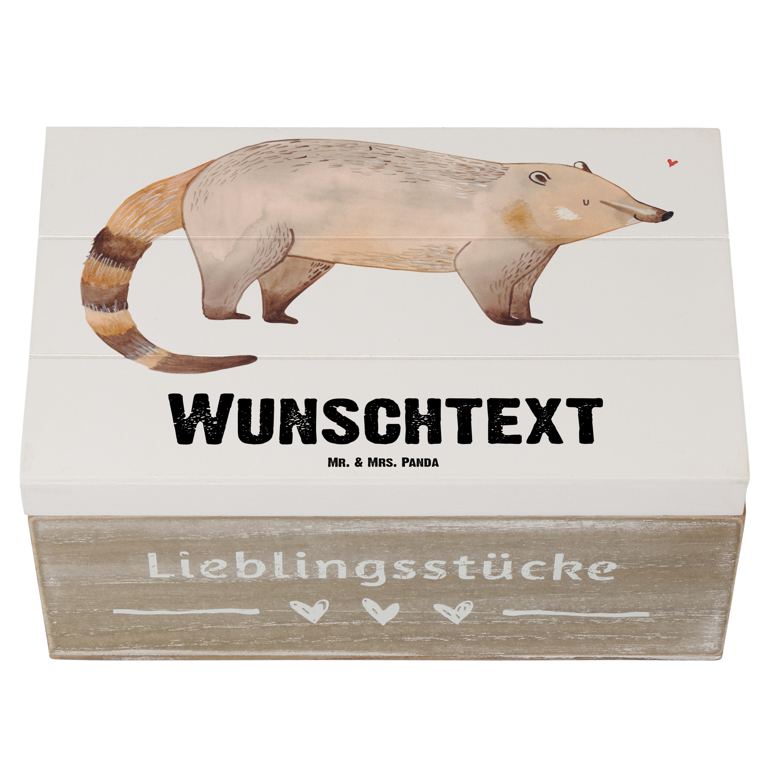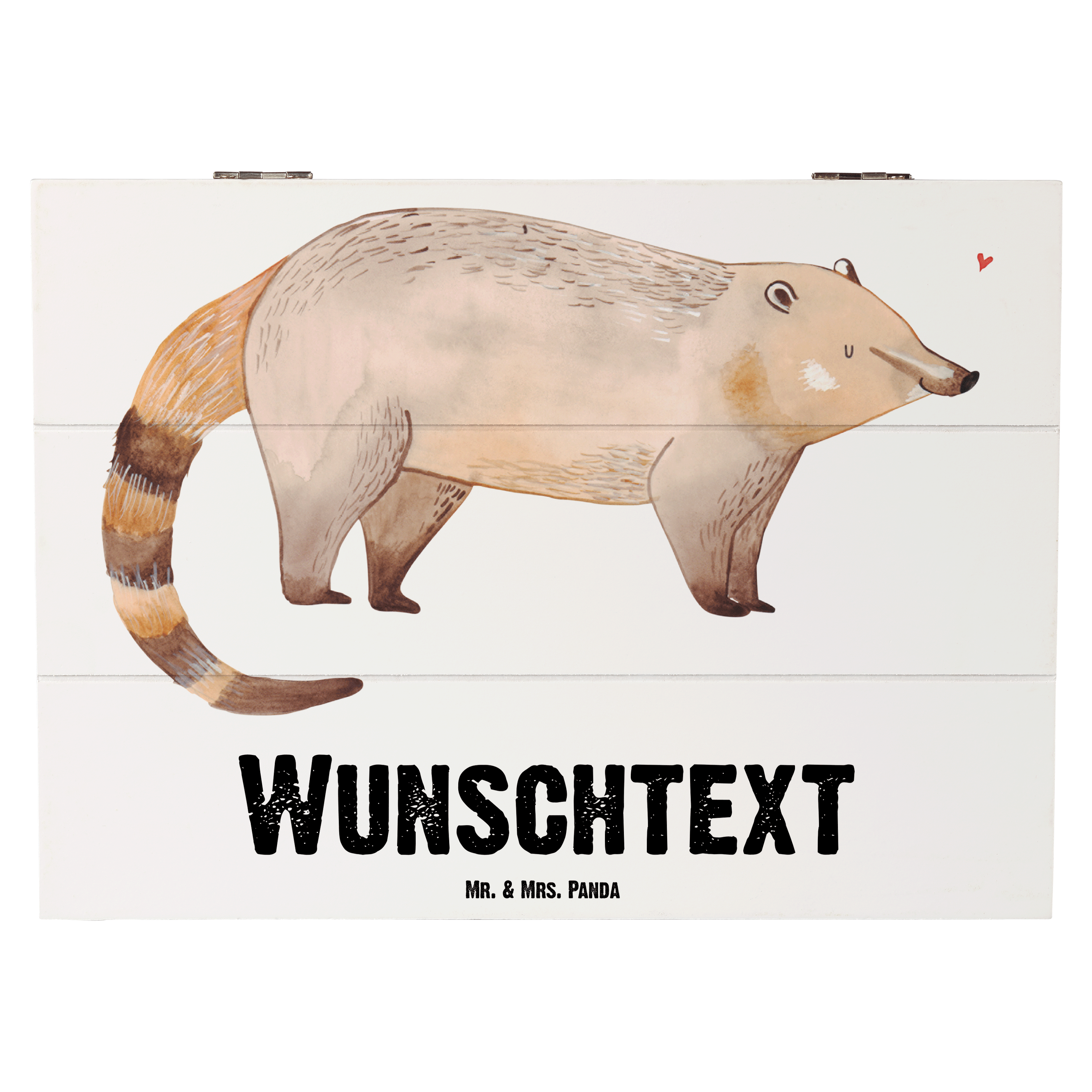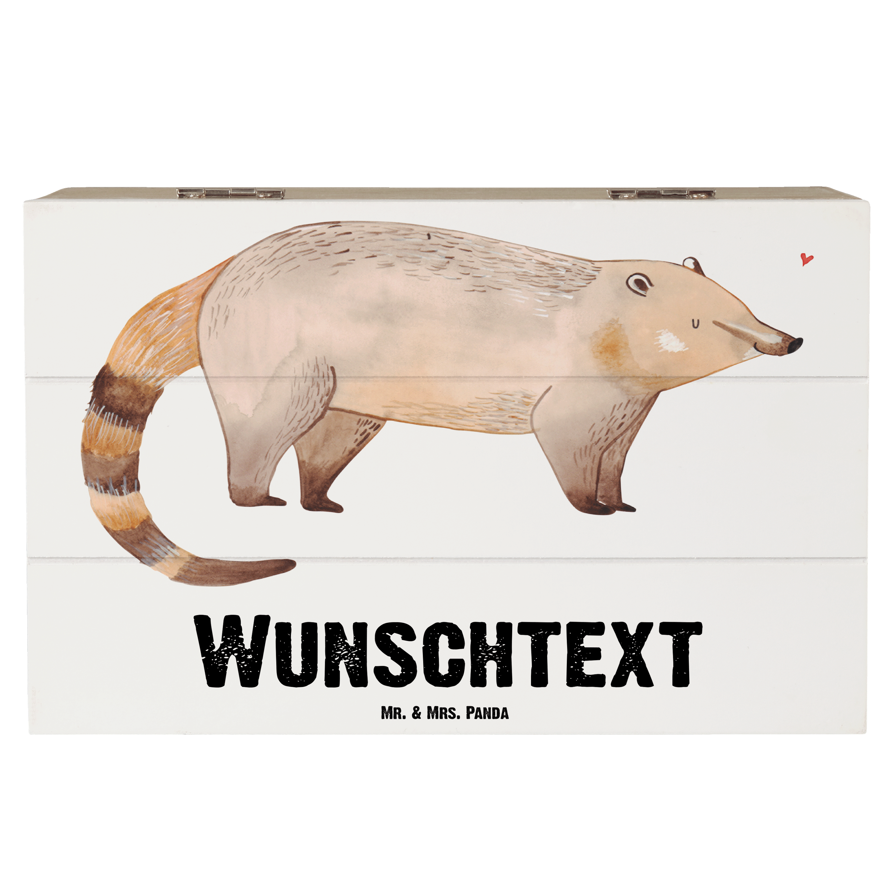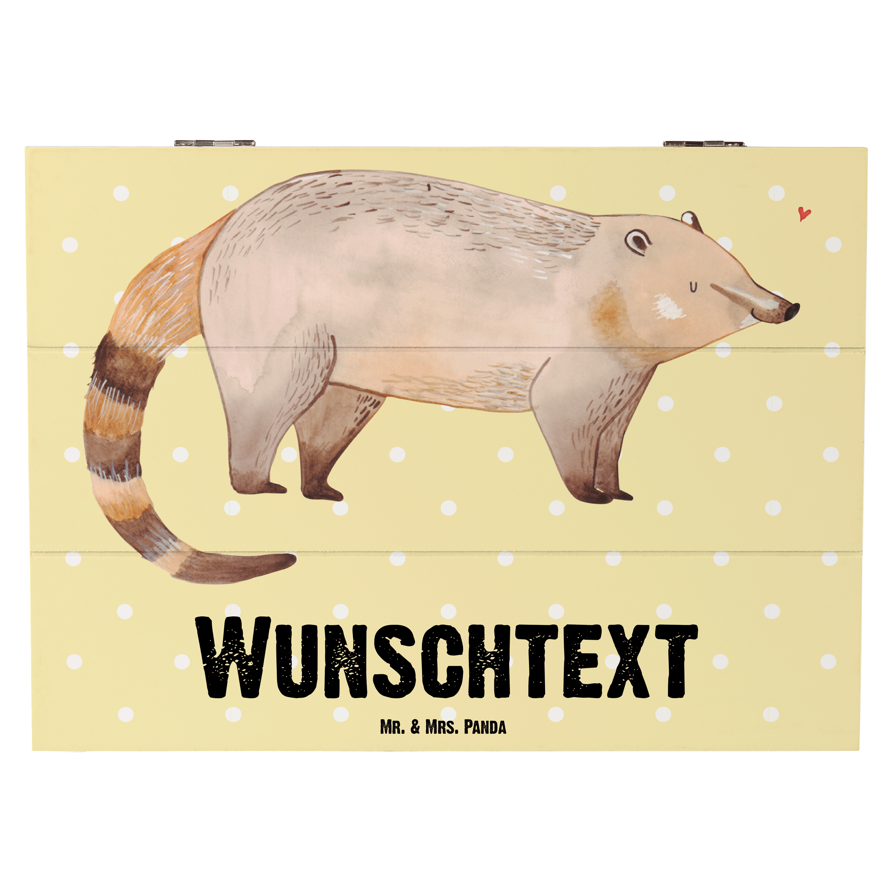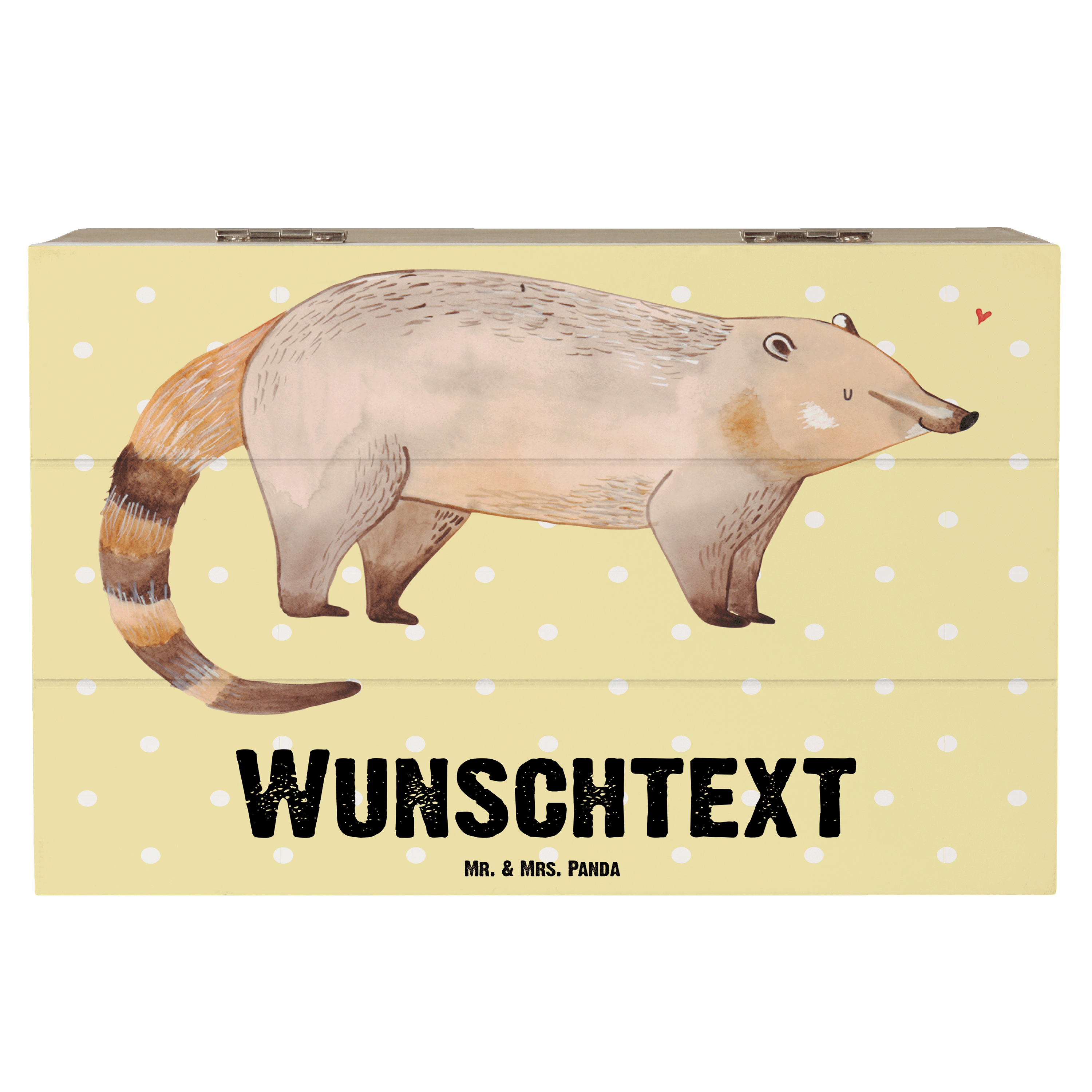 Personalisierte Holzkiste Nasenbaer - Gelb Pastell - 19 x 12 cm
