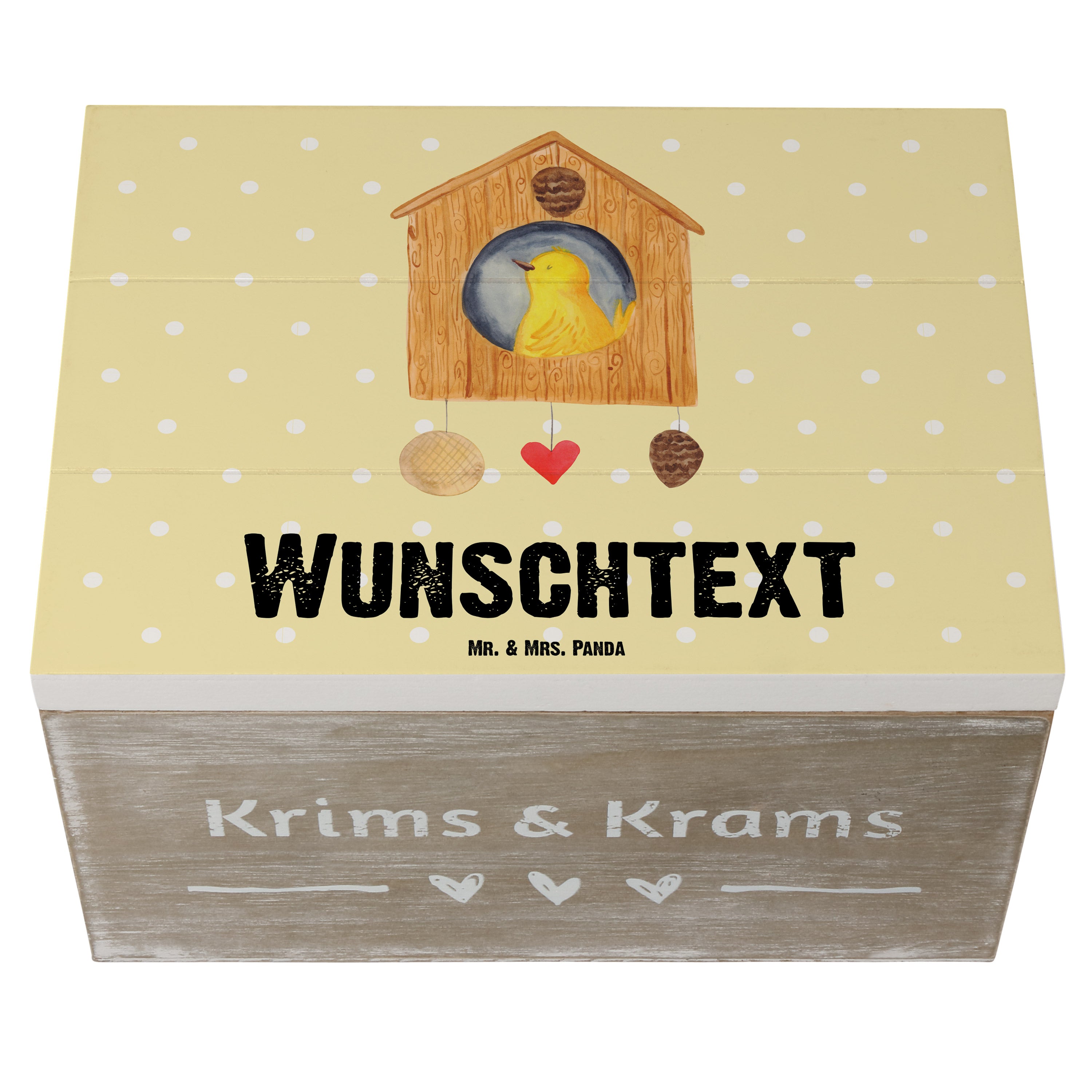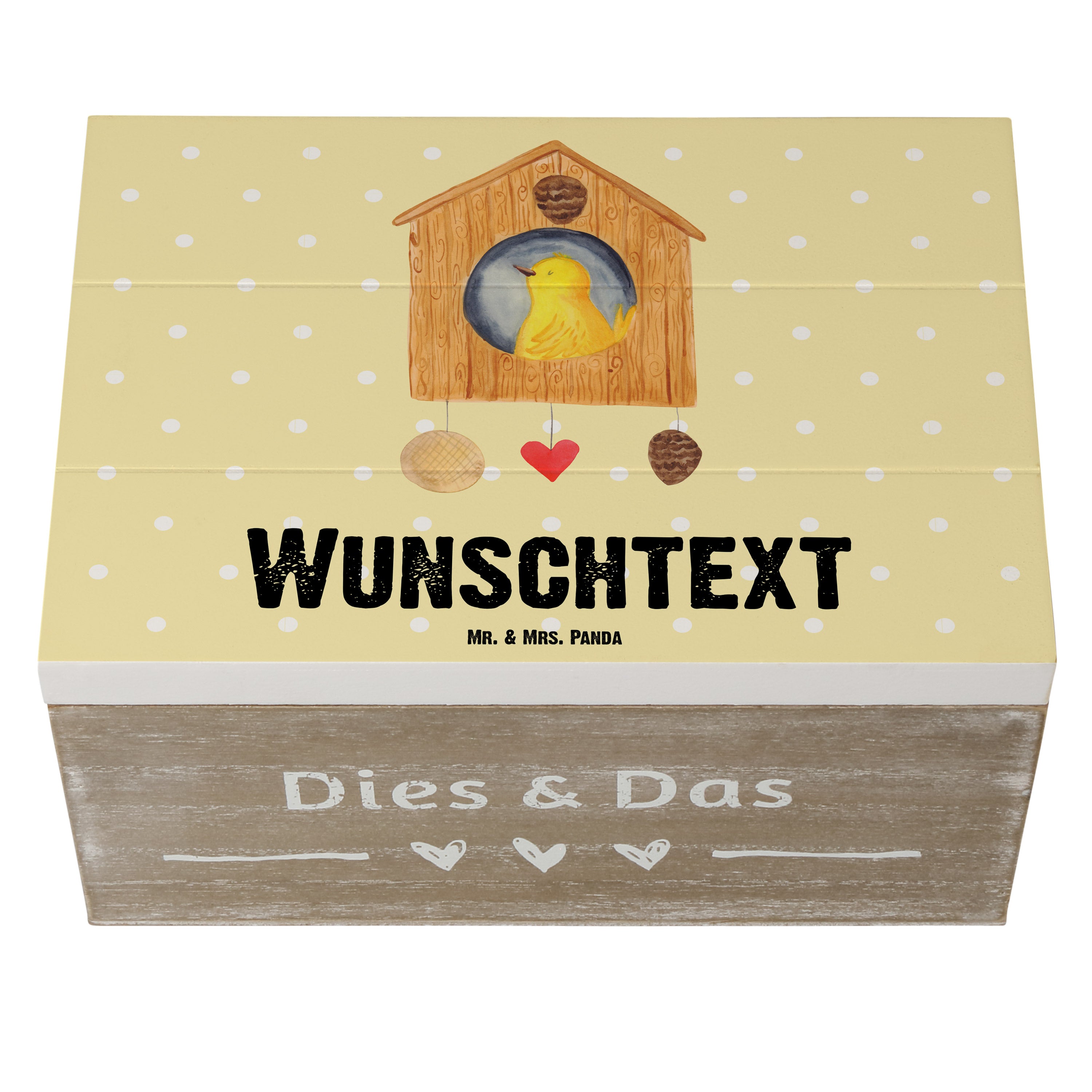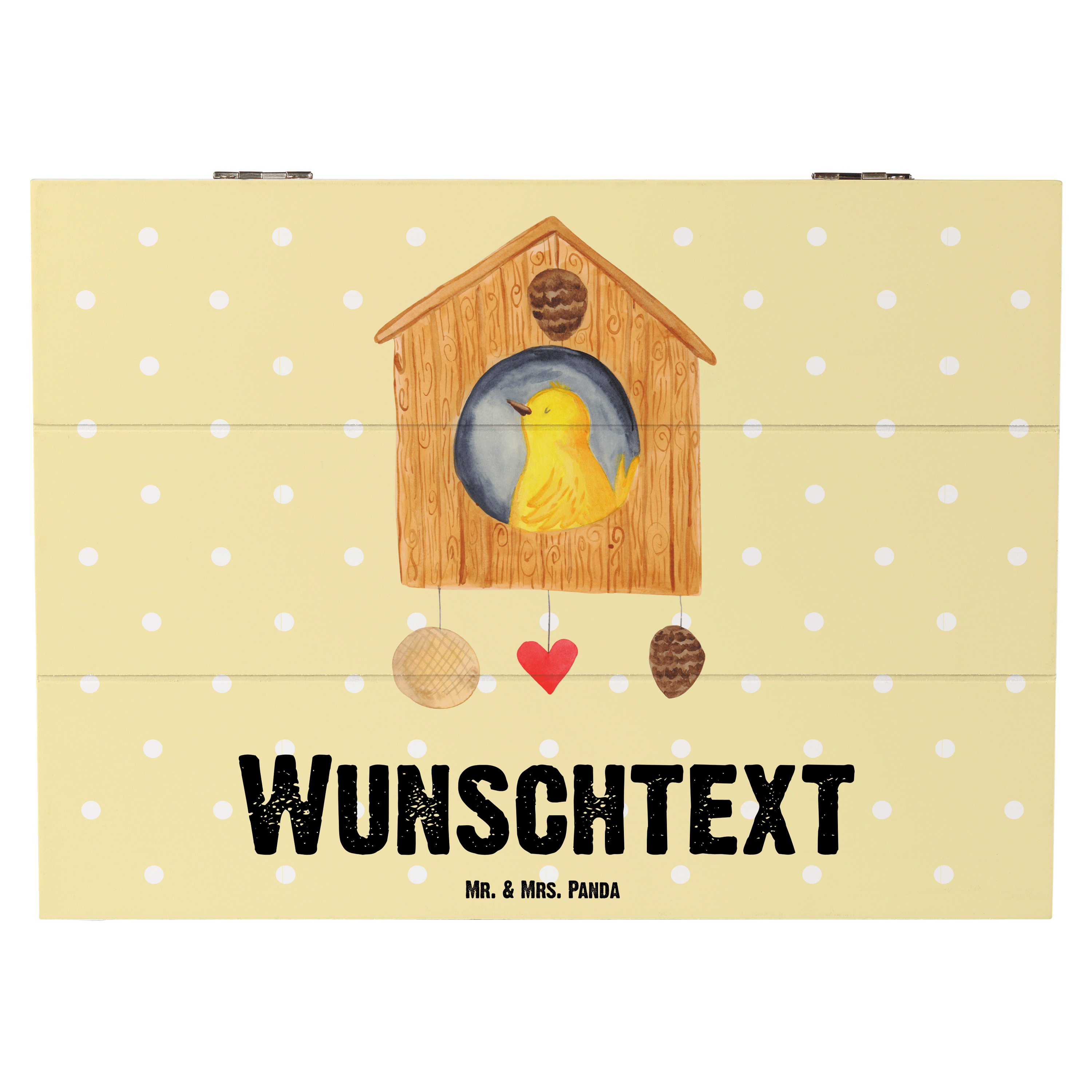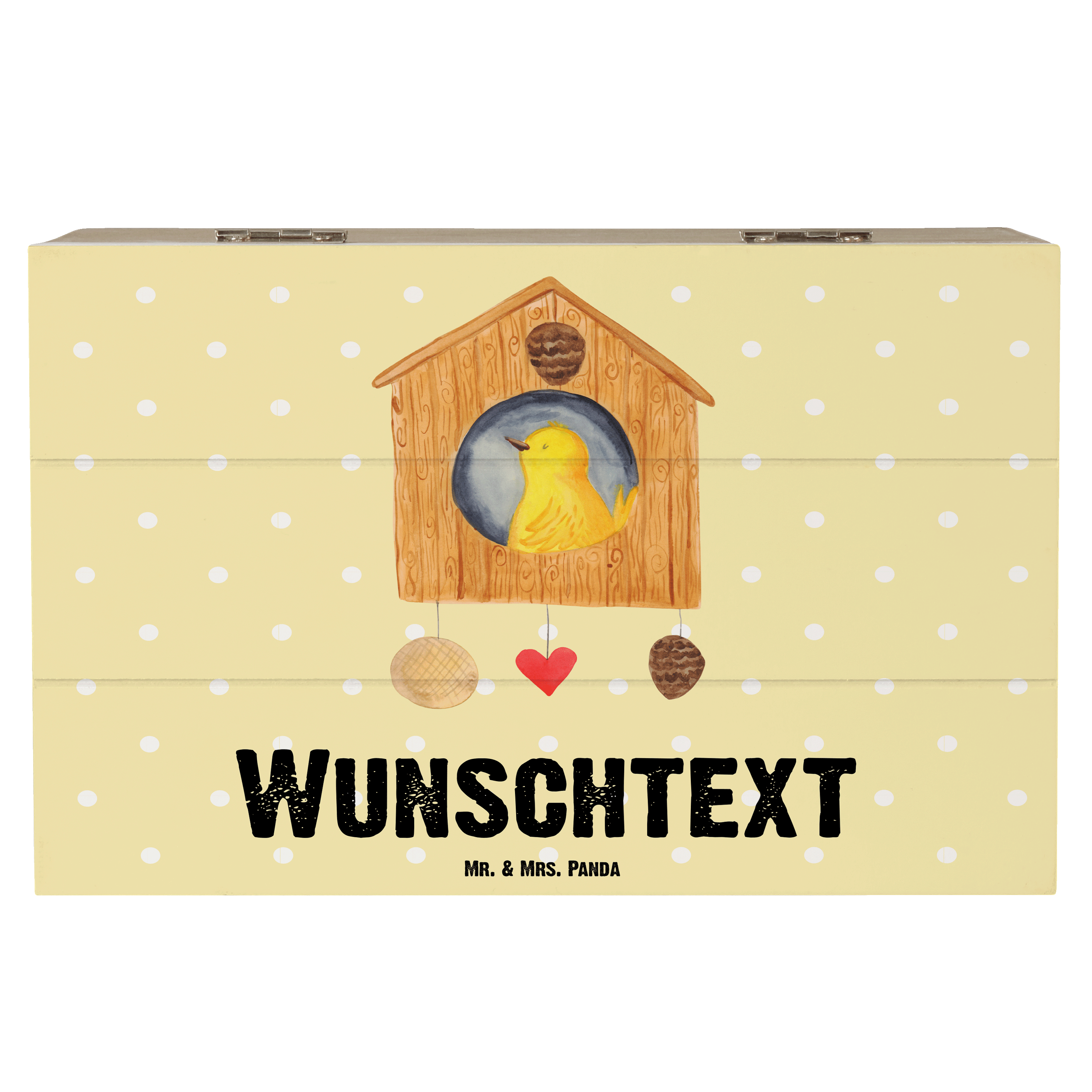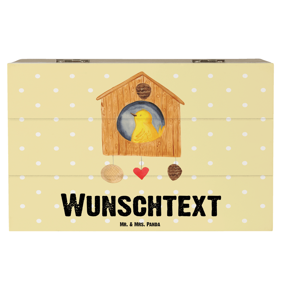 Personalisierte Holzkiste Vogelhaus sweet Home - Gelb Pastell - 19 x 12 cm