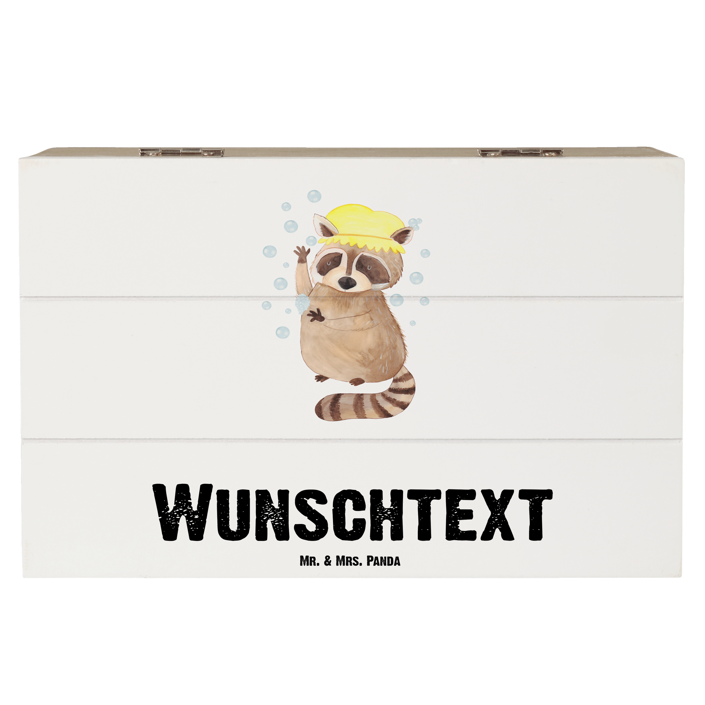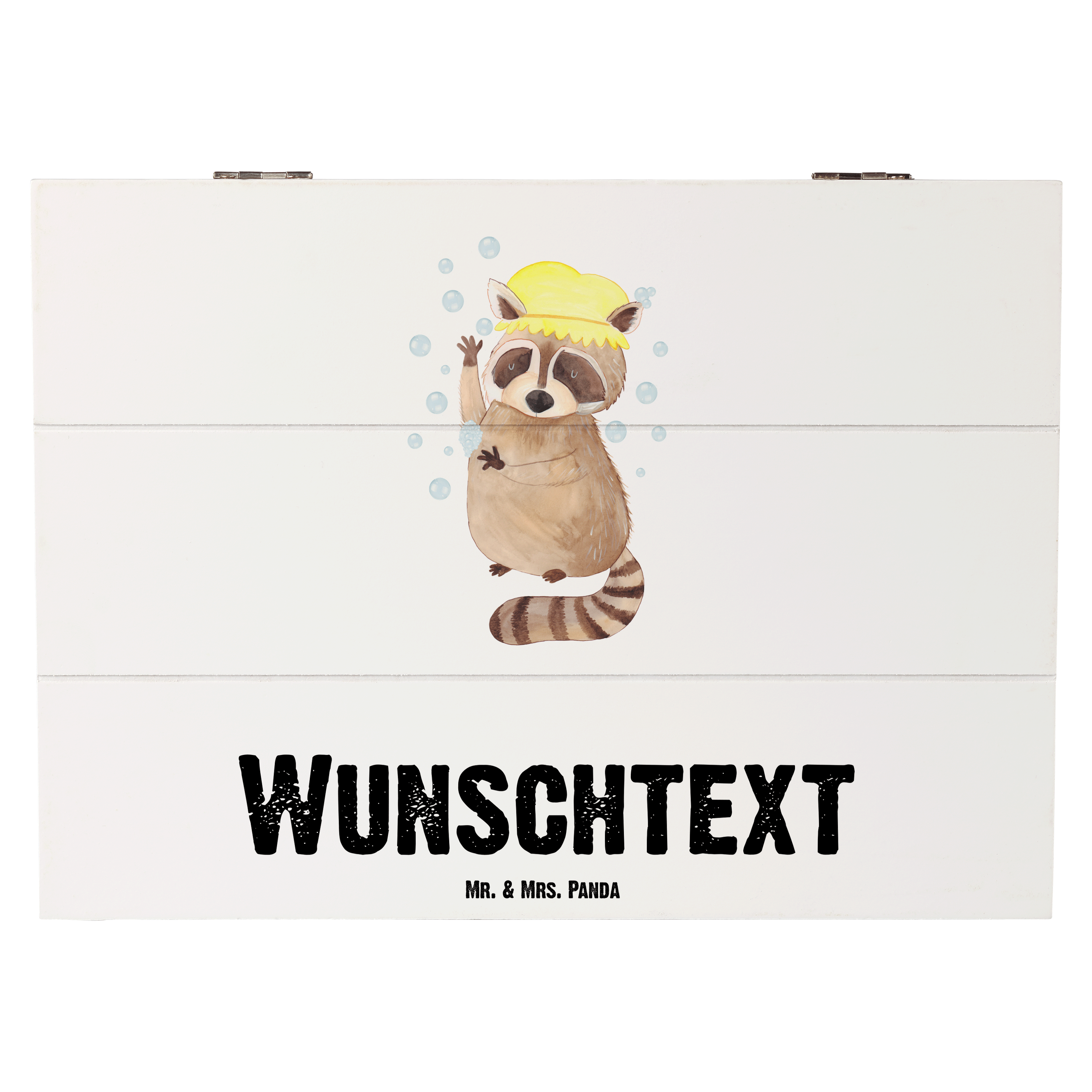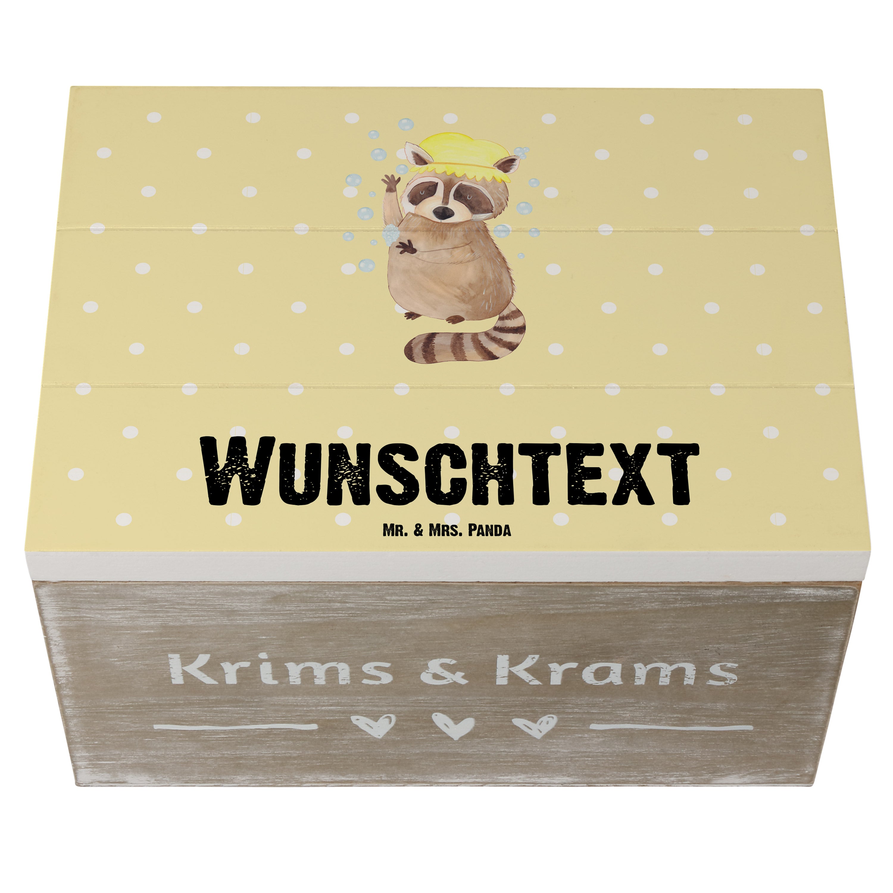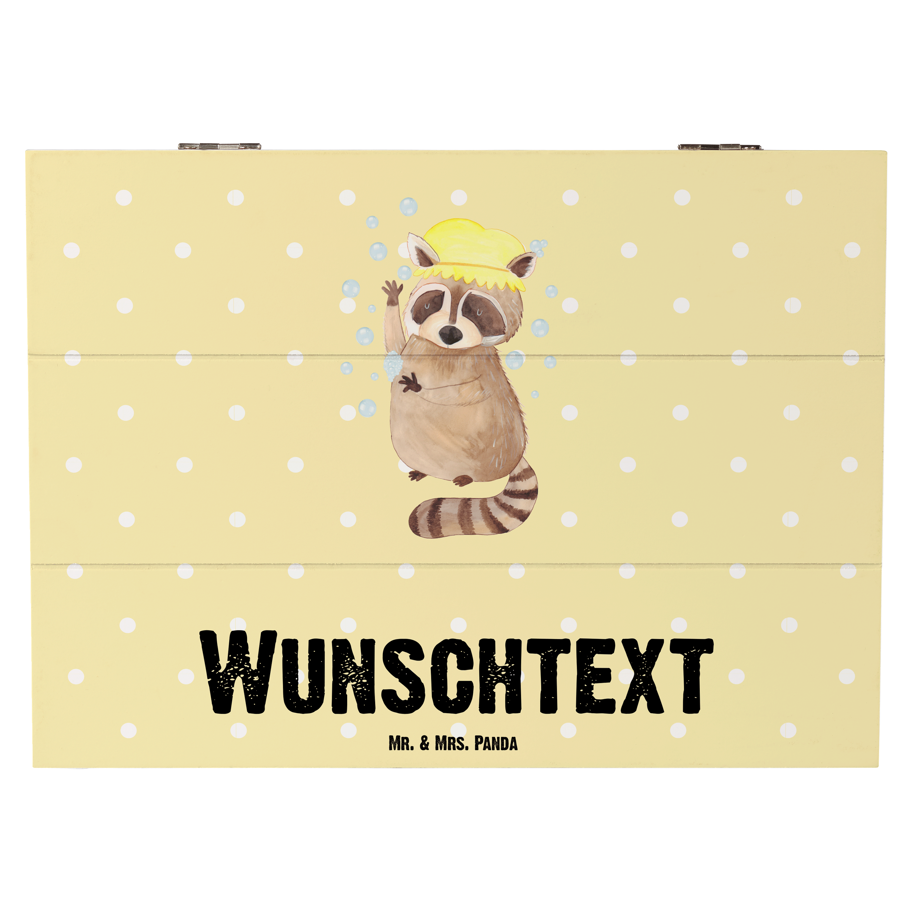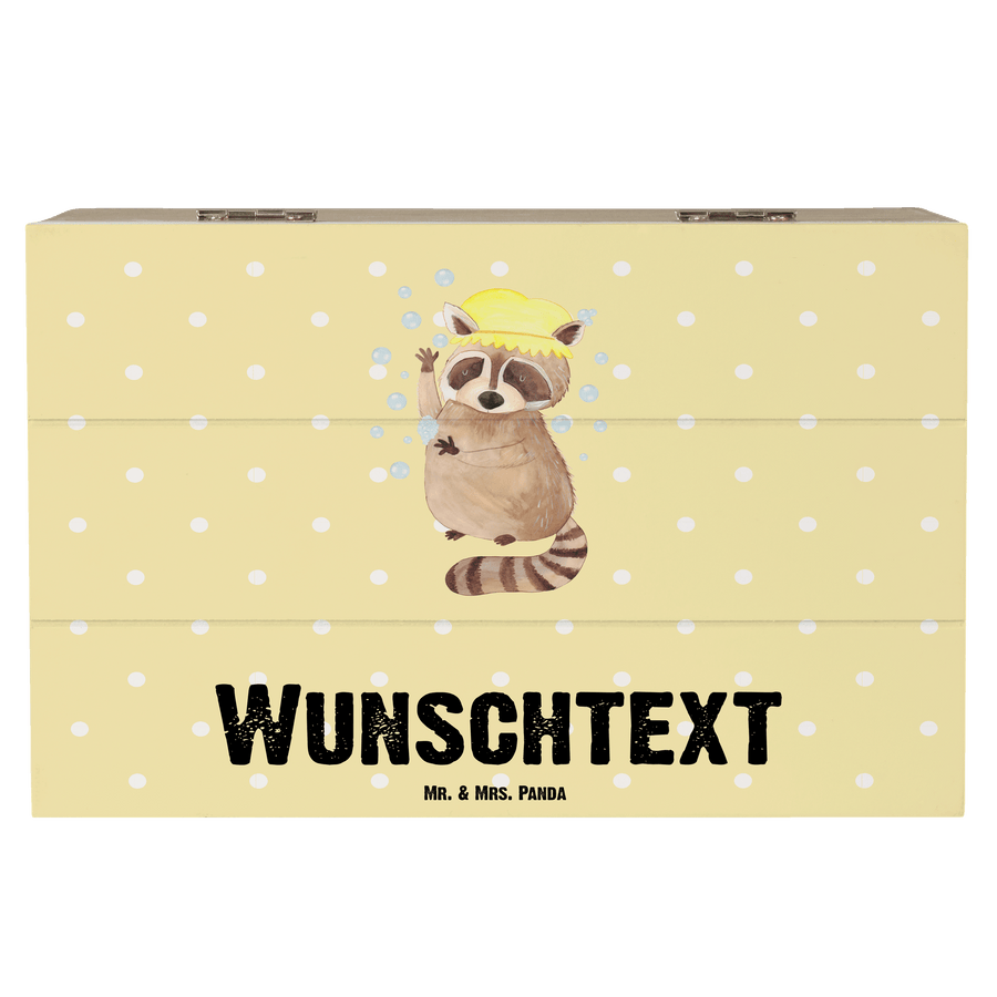 Personalisierte Holzkiste Waschbär - Gelb Pastell - 19 x 12 cm