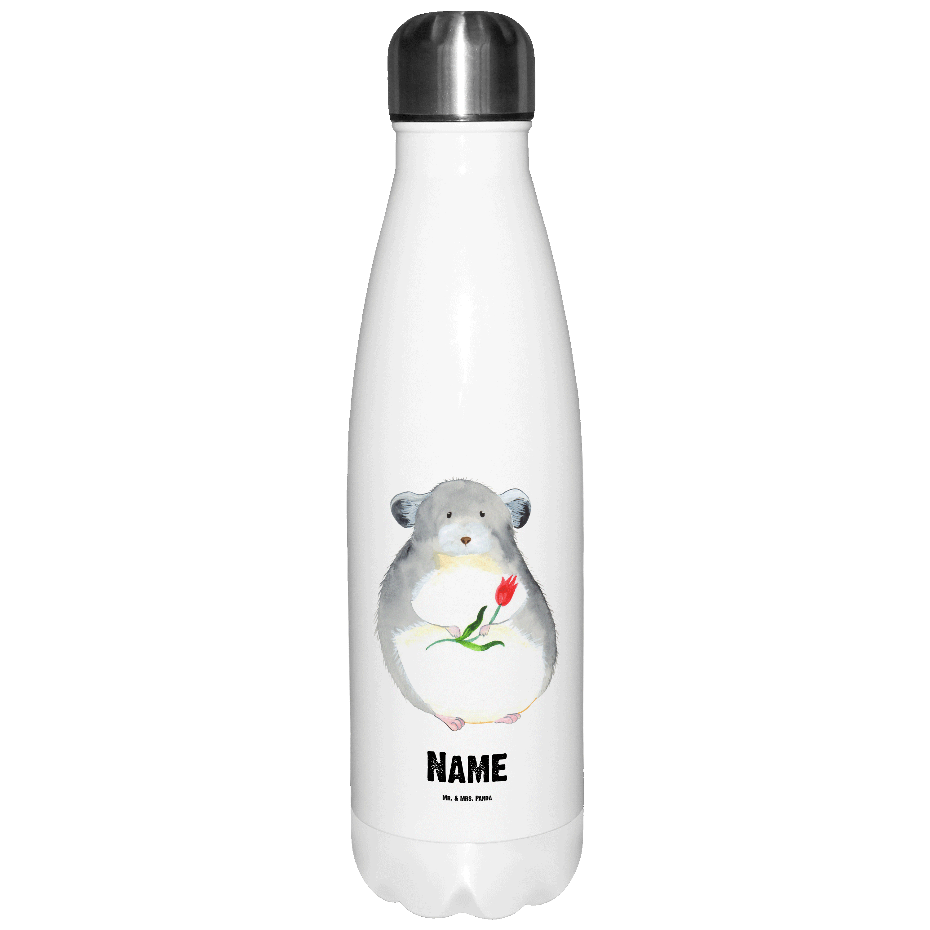 Personalisierte Thermosflasche Chinchilla mit Blume