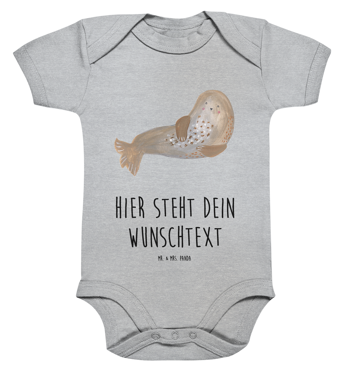Personalisierter Baby Body Robbe lachend - 1. - 3. Monat - Heather Grey