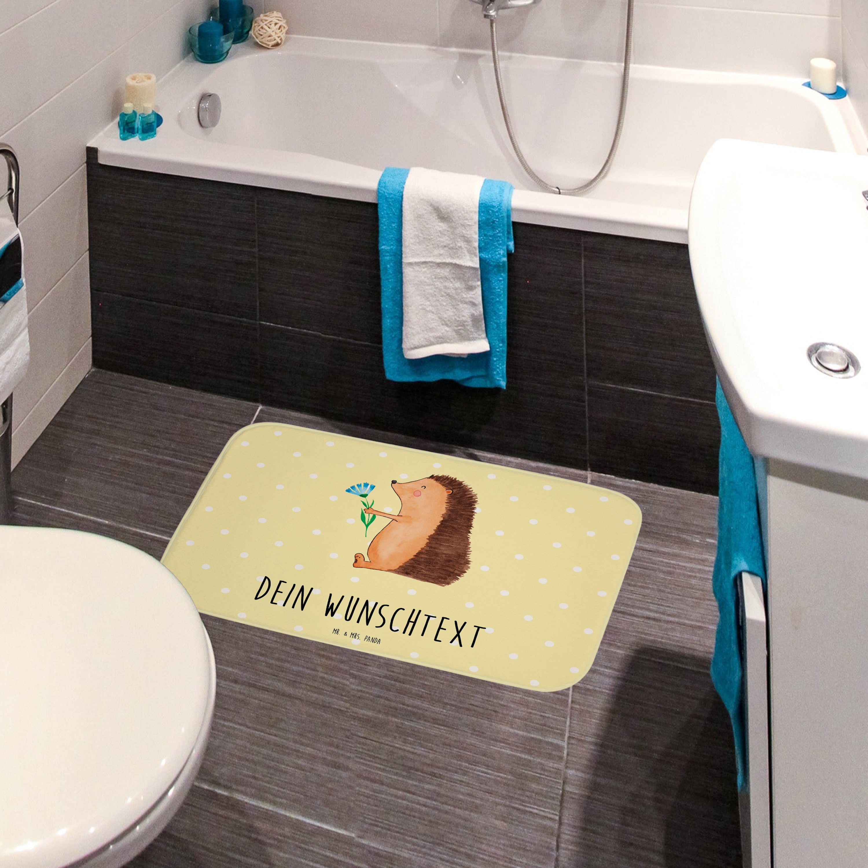 Personalisierter Badvorleger Igel mit Blume