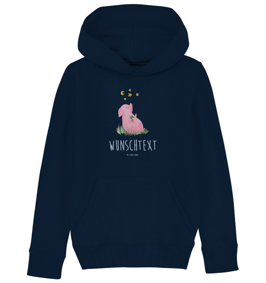 Personalisierter Kinder Hoodie Glücksschwein - 12-14 Jahre (152/164) - French Navy