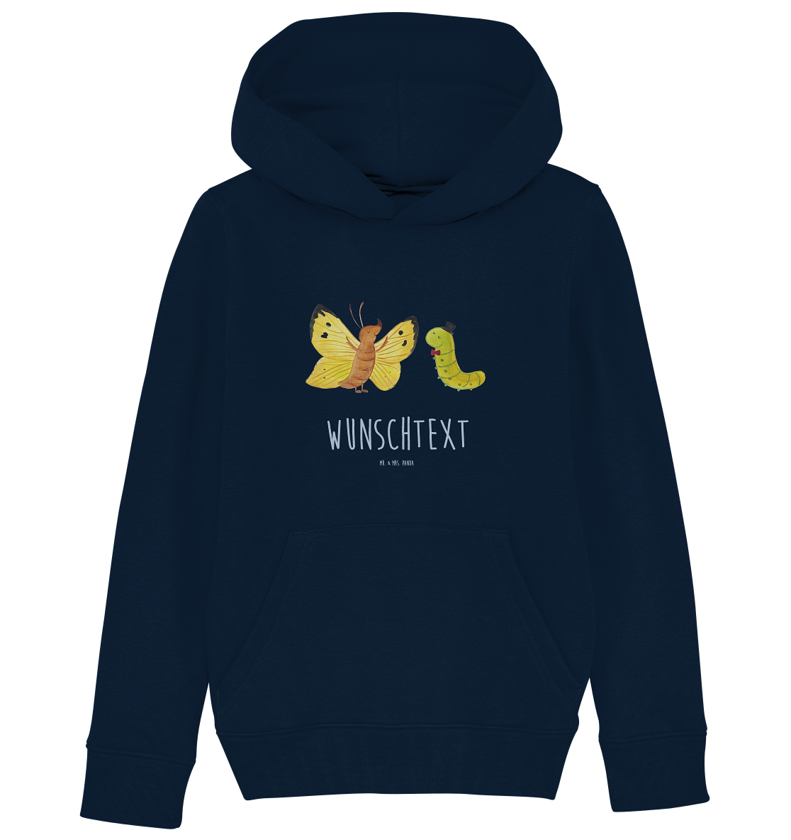 Personalisierter Kinder Hoodie Raupe & Schmetterling - 12-14 Jahre (152/164) - French Navy