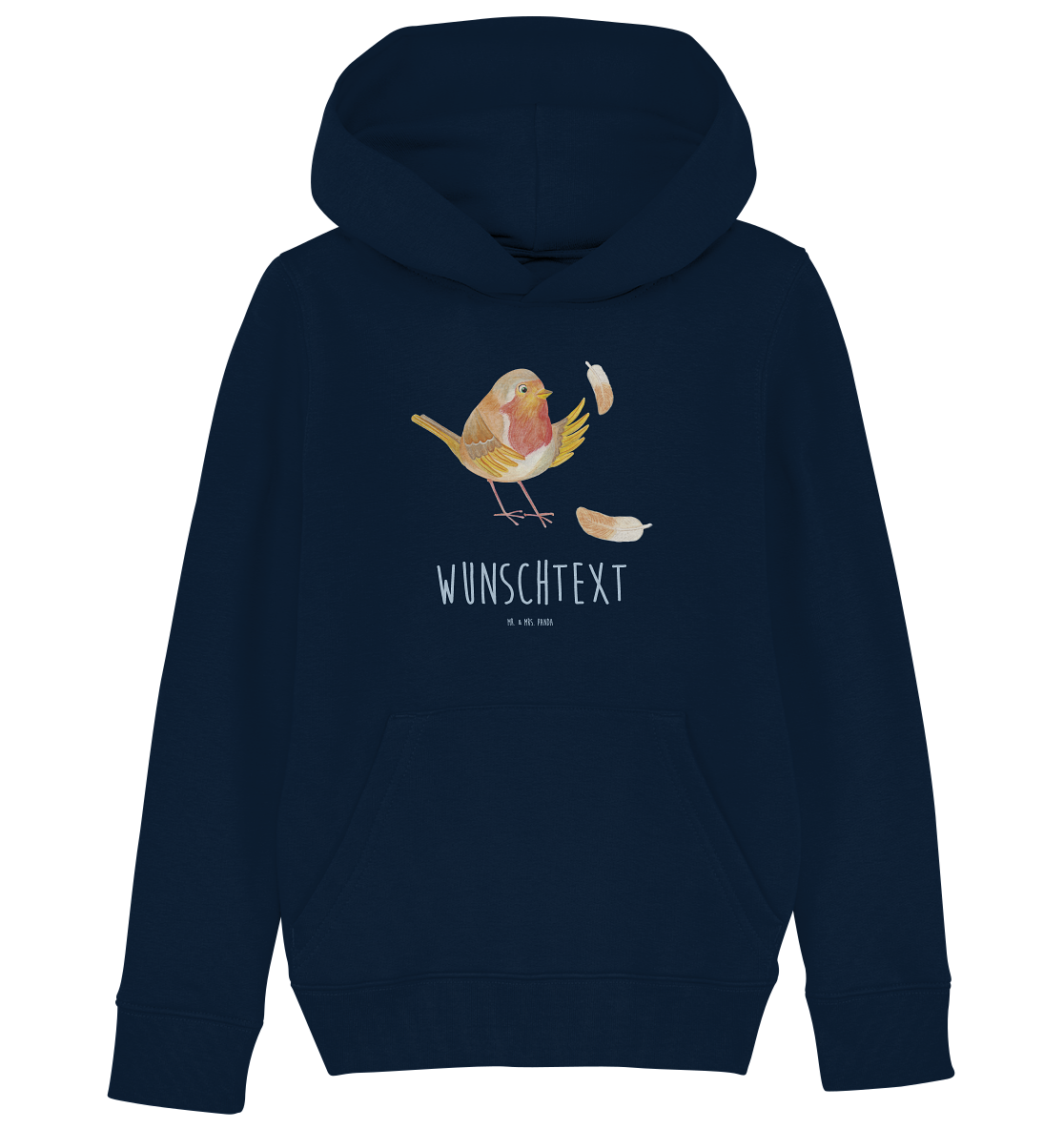 Personalisierter Kinder Hoodie Rotkehlchen mit Federn - 12-14 Jahre (152/164) - French Navy