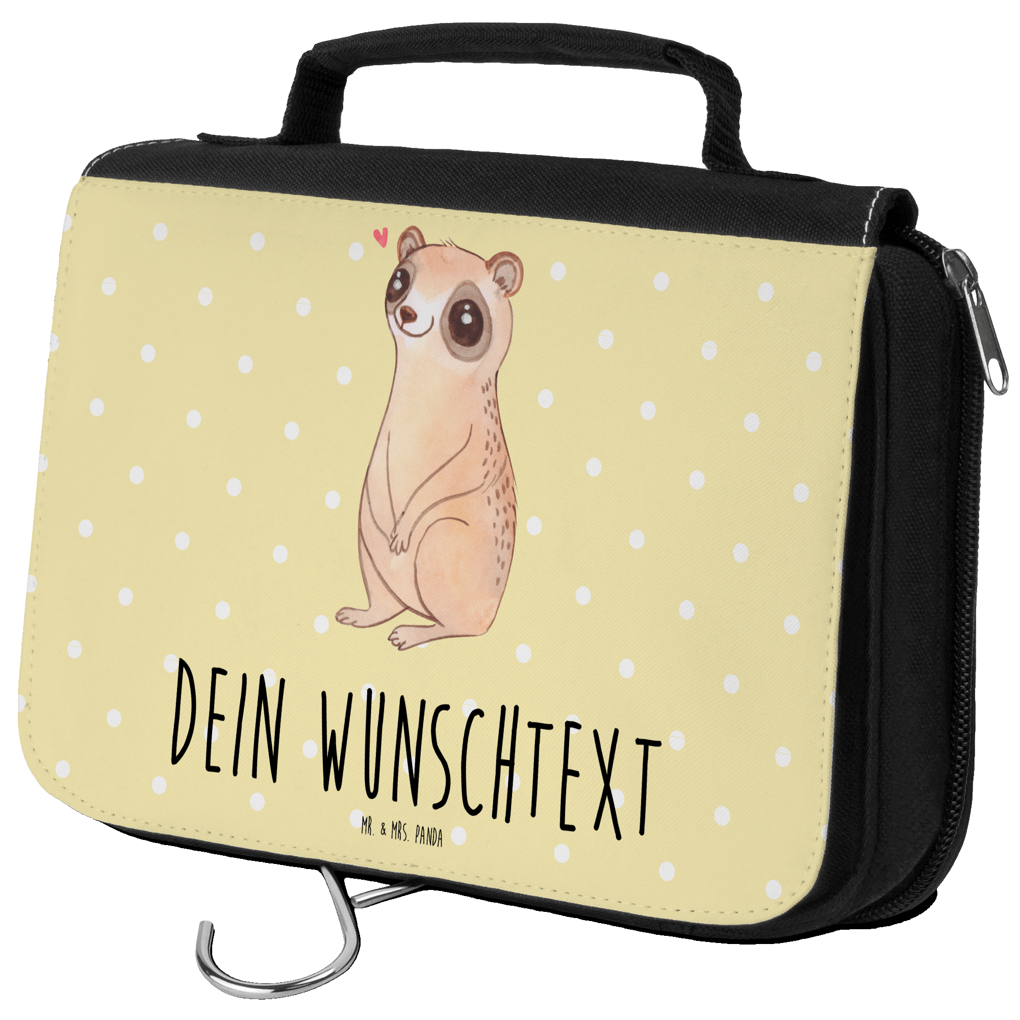 Dieser wunderschöne Kulturbeutel zum Aufhängen von Mr. und Mrs. Panda ist für Damen und Herren gleichermaßen geeignet. Auch wenn du in deiner Waschtasche viele Utensilien zu verstauen hast: In diesem Modell sind weitere Fächer mit Reißverschlüssen für Kosmetik- und Hygieneartikel vorhanden, die für Ordnung sorgen. Die Kosmetiktasche oder Schminktasche hat die Größe von 22,5 x 18 x 9 cm, um im Koffer so wenig Platz und Gewicht wie möglich zu beanspruchen und ist damit auch perfekt zum Reisen geeignet.