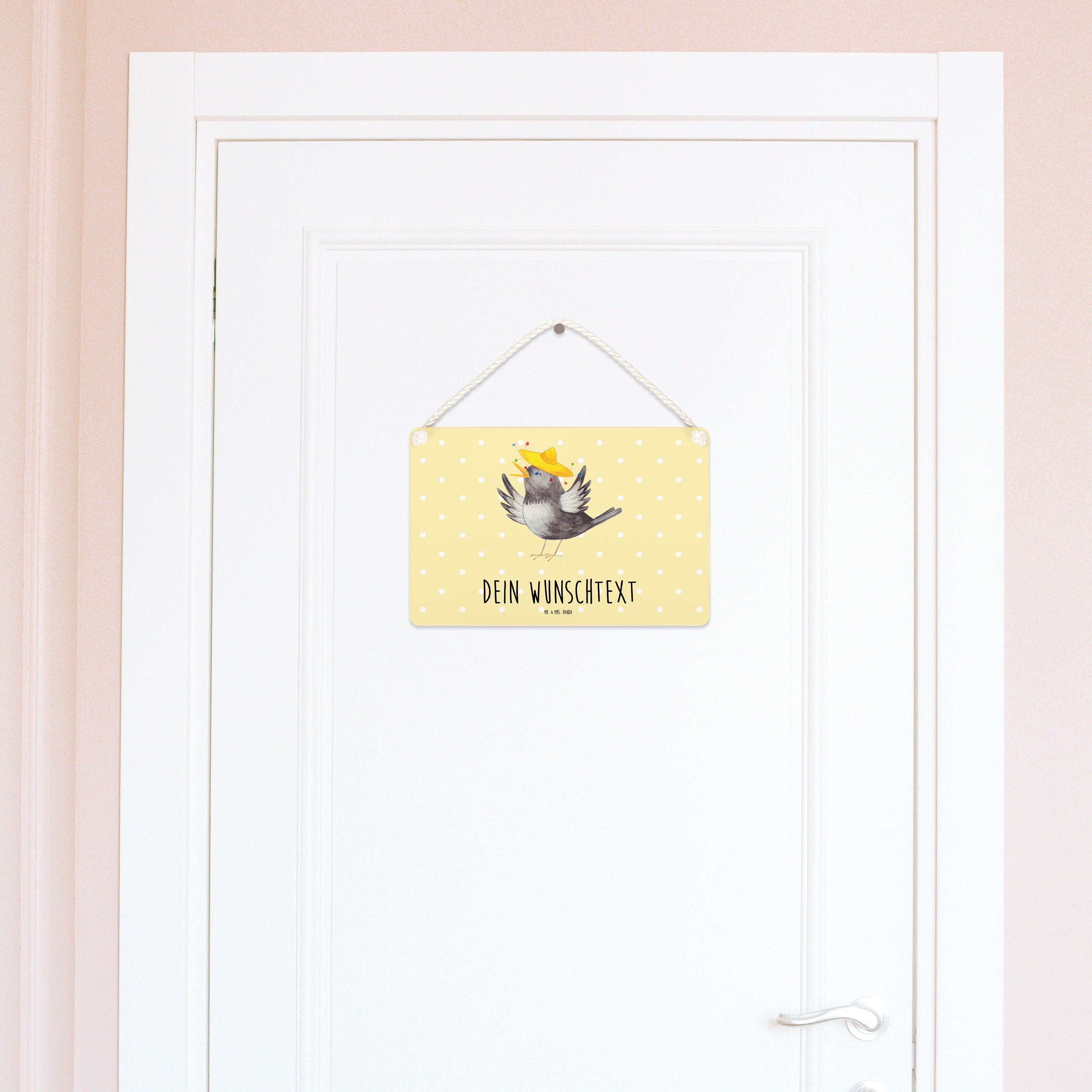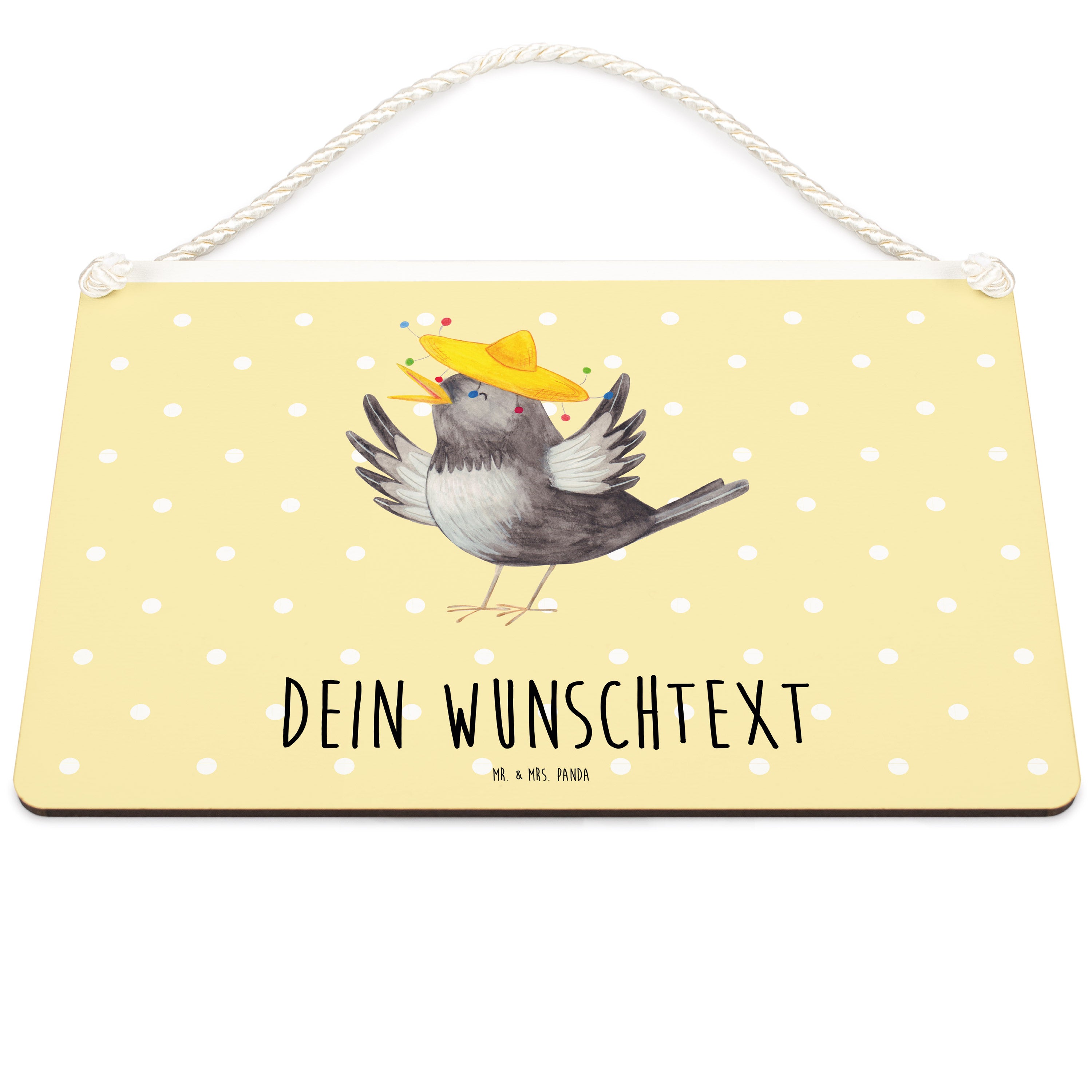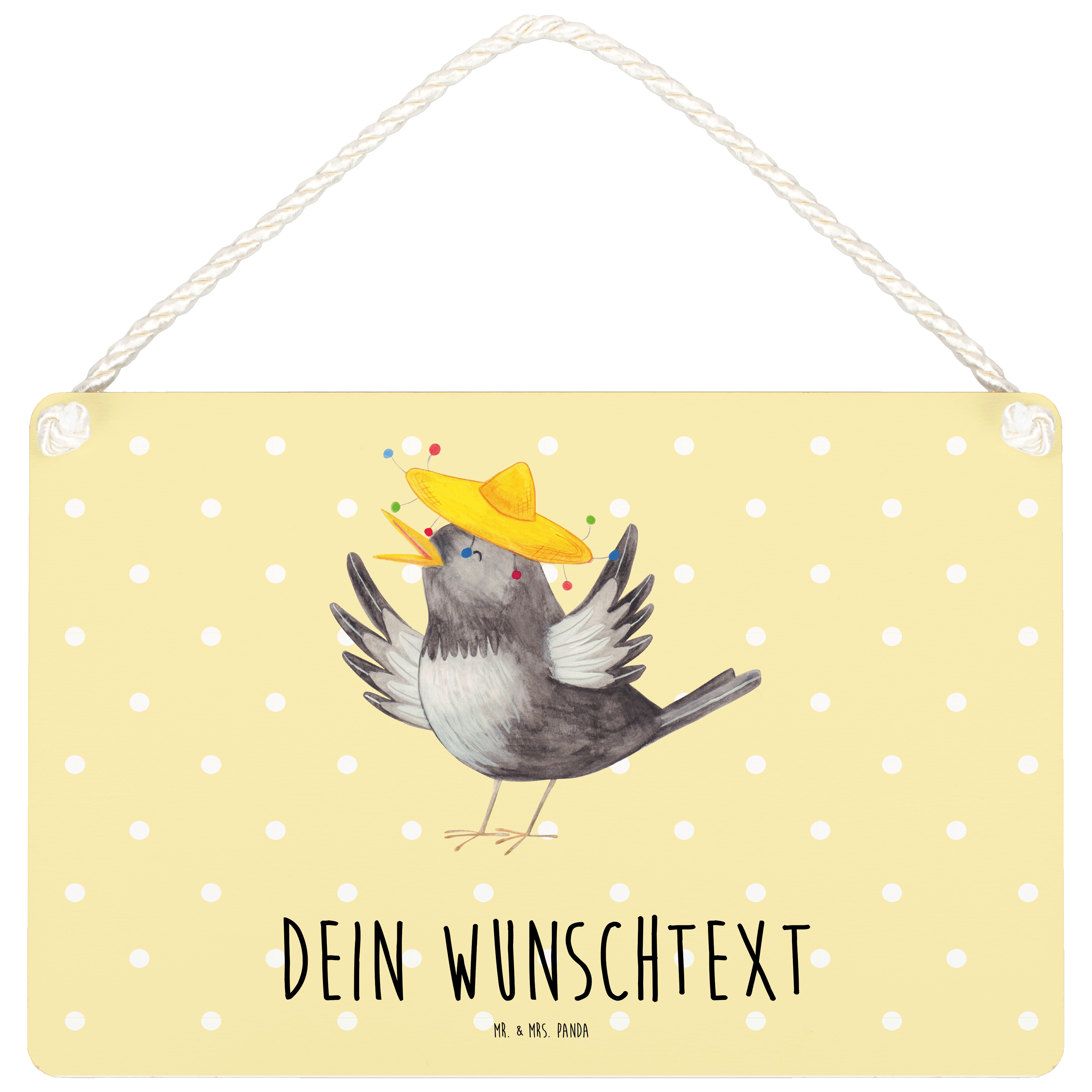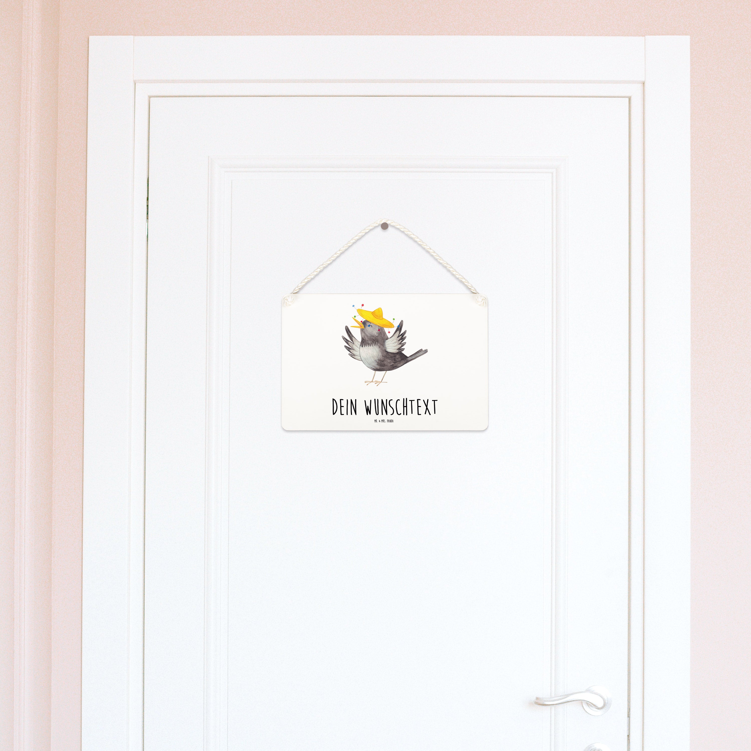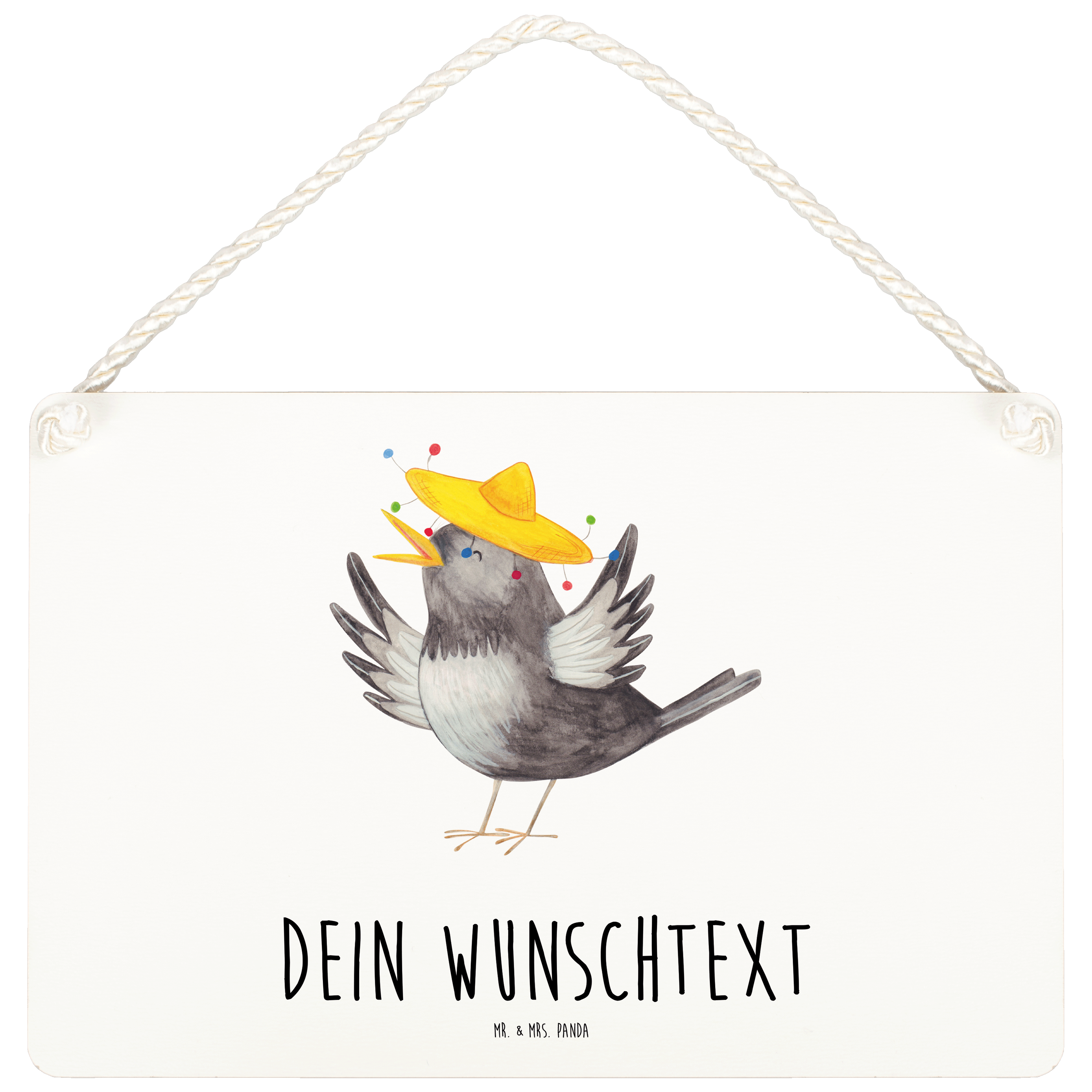 Personalisiertes Deko Schild Rabe mit Sombrero - DIN A6 - Weiß