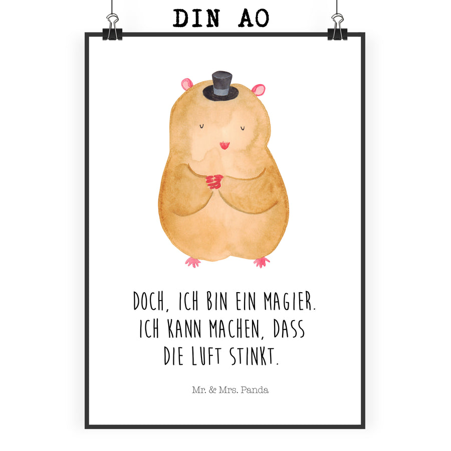 Mr. & Mrs. Panda präsentieren stolz den "Hamster mit Hut" als neuen niedlichen Botschafter für dein Zuhause. Der kleine Nagetier hat eine wichtige Aufgabe und sorgt mit seiner süßen Darstellung für gute Laune. Setze ein Highlight in deinem Wohnzimmer, indem du das Motiv liebevoll in Szene setzt. Der kleine Zylinder auf dem Kopf des Hamsters gibt dem Motiv das gewisse Etwas und zieht alle Blicke auf sich.