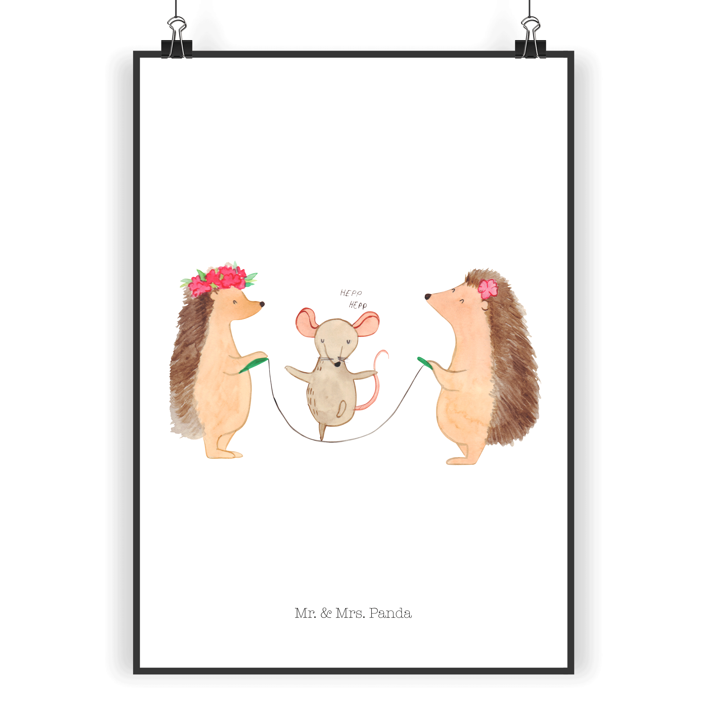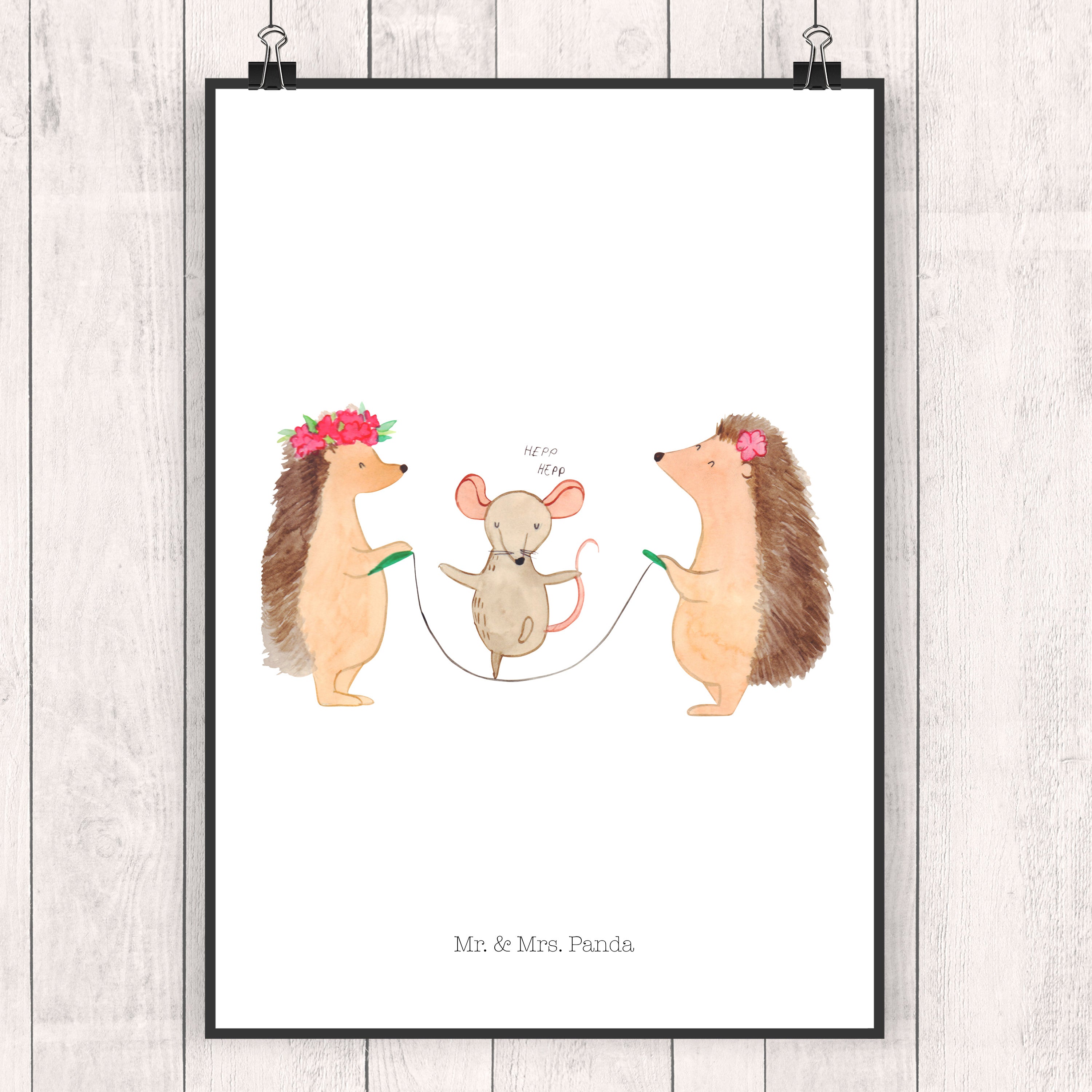 Poster Igel Seilhüpfen Poster, Wandposter, Bild, Wanddeko, Küchenposter, Kinderposter, Wanddeko Bild, Raumdekoration, Wanddekoration, Handgemaltes Poster, Mr. & Mrs. Panda Poster, Designposter, Kunstdruck, Posterdruck, Tiermotive, Gute Laune, lustige Sprüche, Tiere, Igel, Maus, Seilspringen, Seilhüpfen, Kinder, Kindergarten