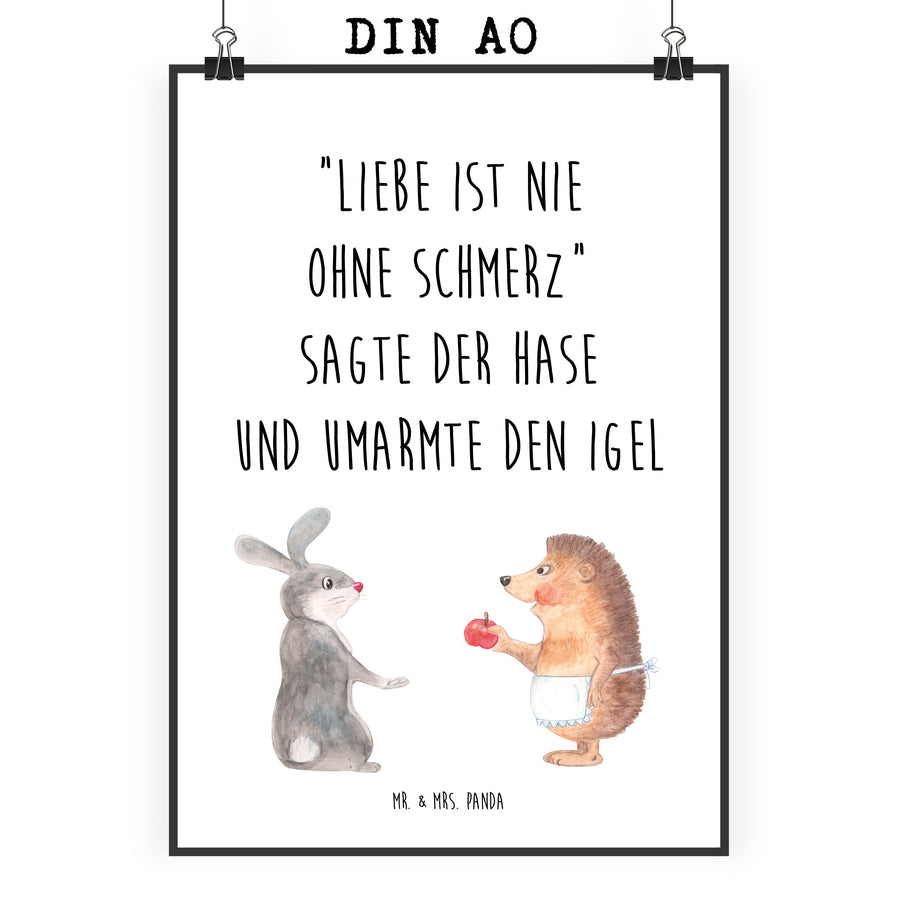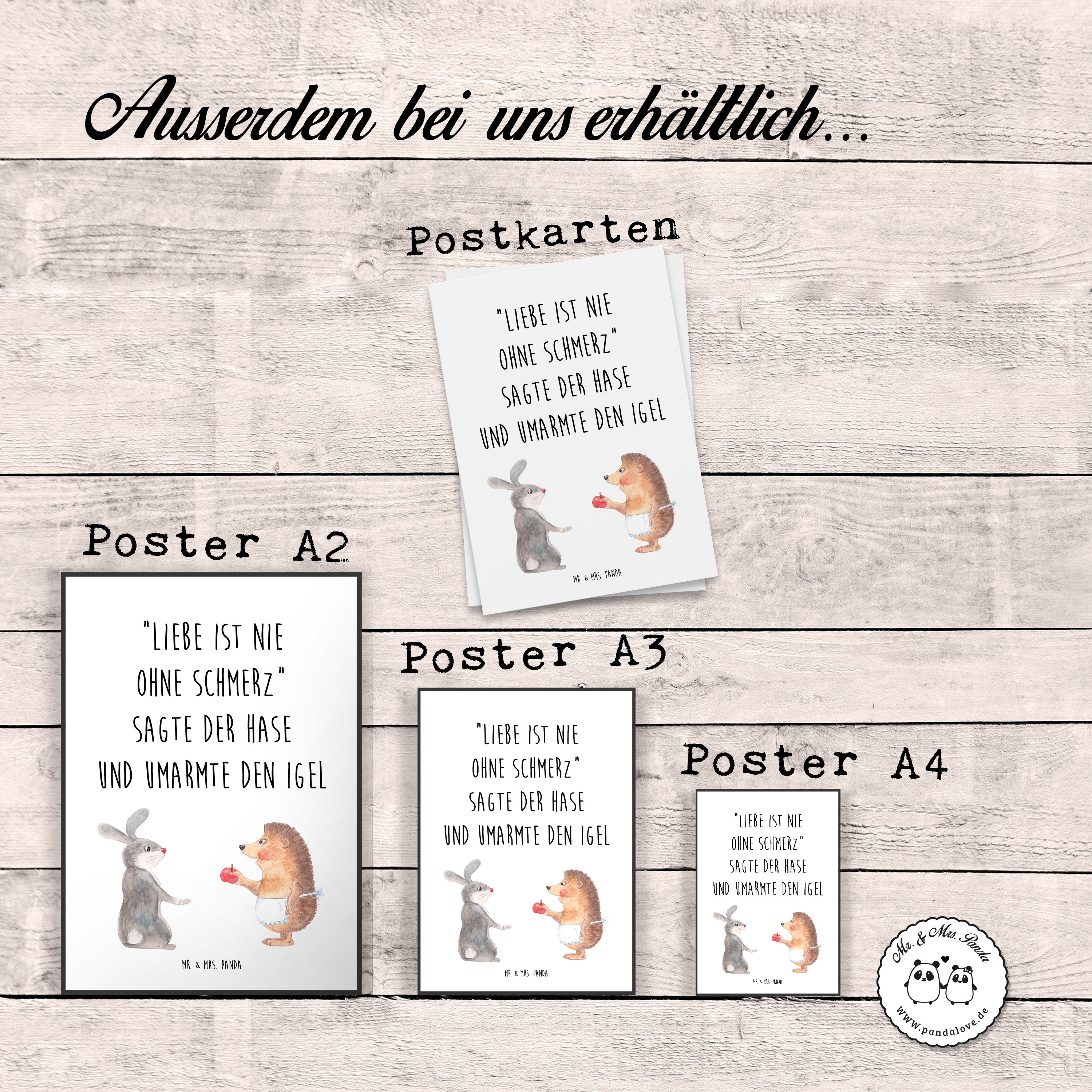 Mit diesem süßen Motiv erinnert dich Mr. & Mrs. Panda daran, dass Liebe nicht immer einfach ist. Aber trotz allem kann sie stark und wunderschön sein. Der niedliche Hase und der süße Igel, die ineinander verliebt sind, zeigen, dass die Liebe über Alles siegt. Das hochwertige Motiv eignet sich perfekt als Geschenk für deinen Partner oder als Dekoration für euer gemeinsames Zuhause.