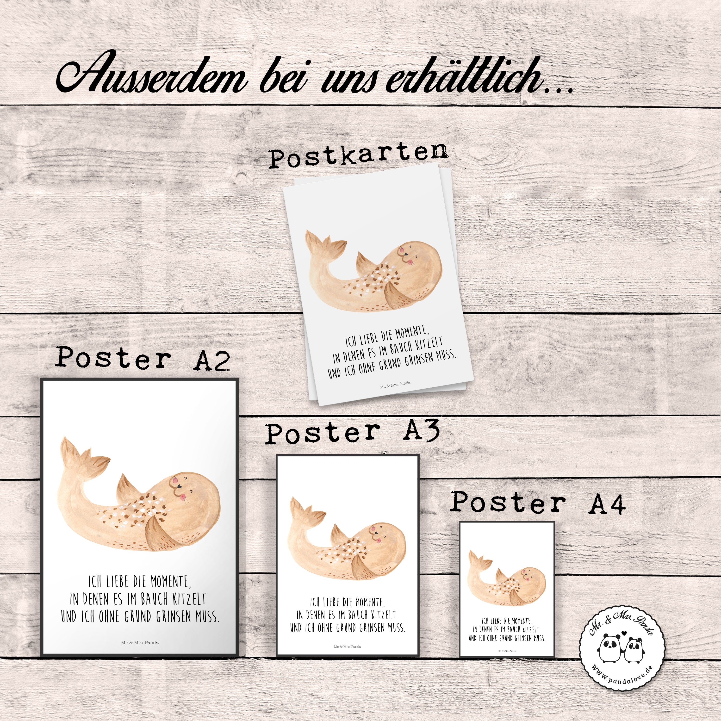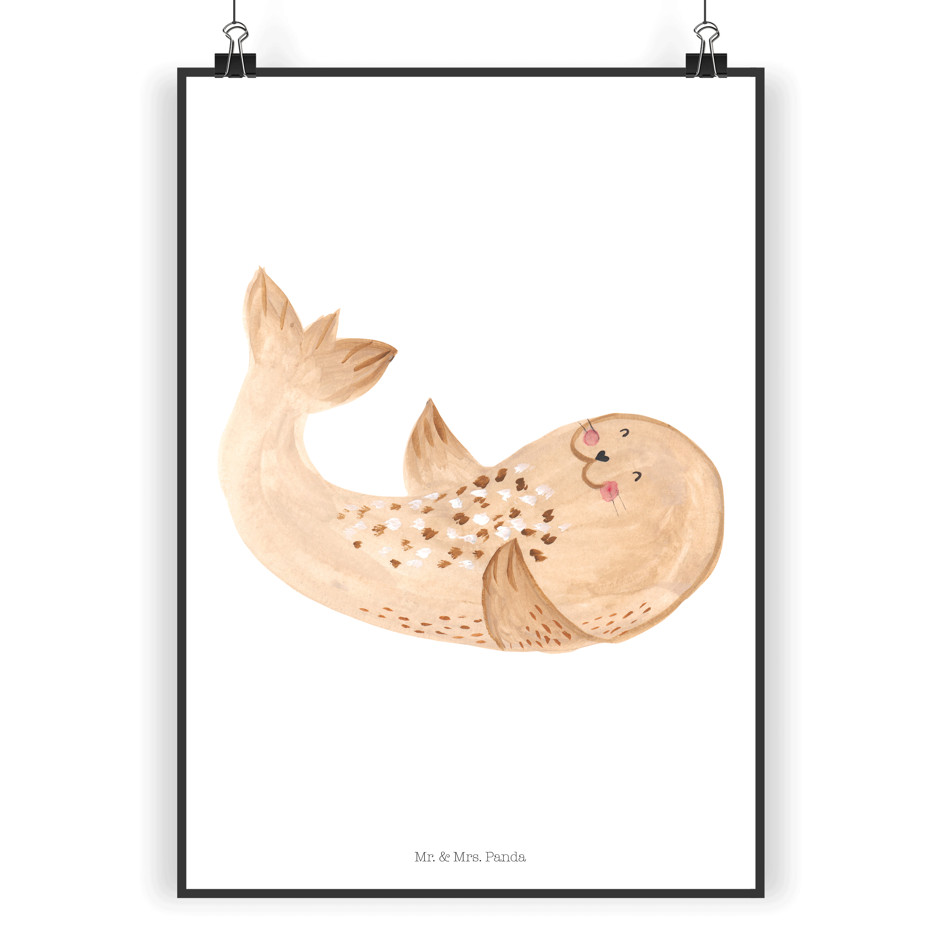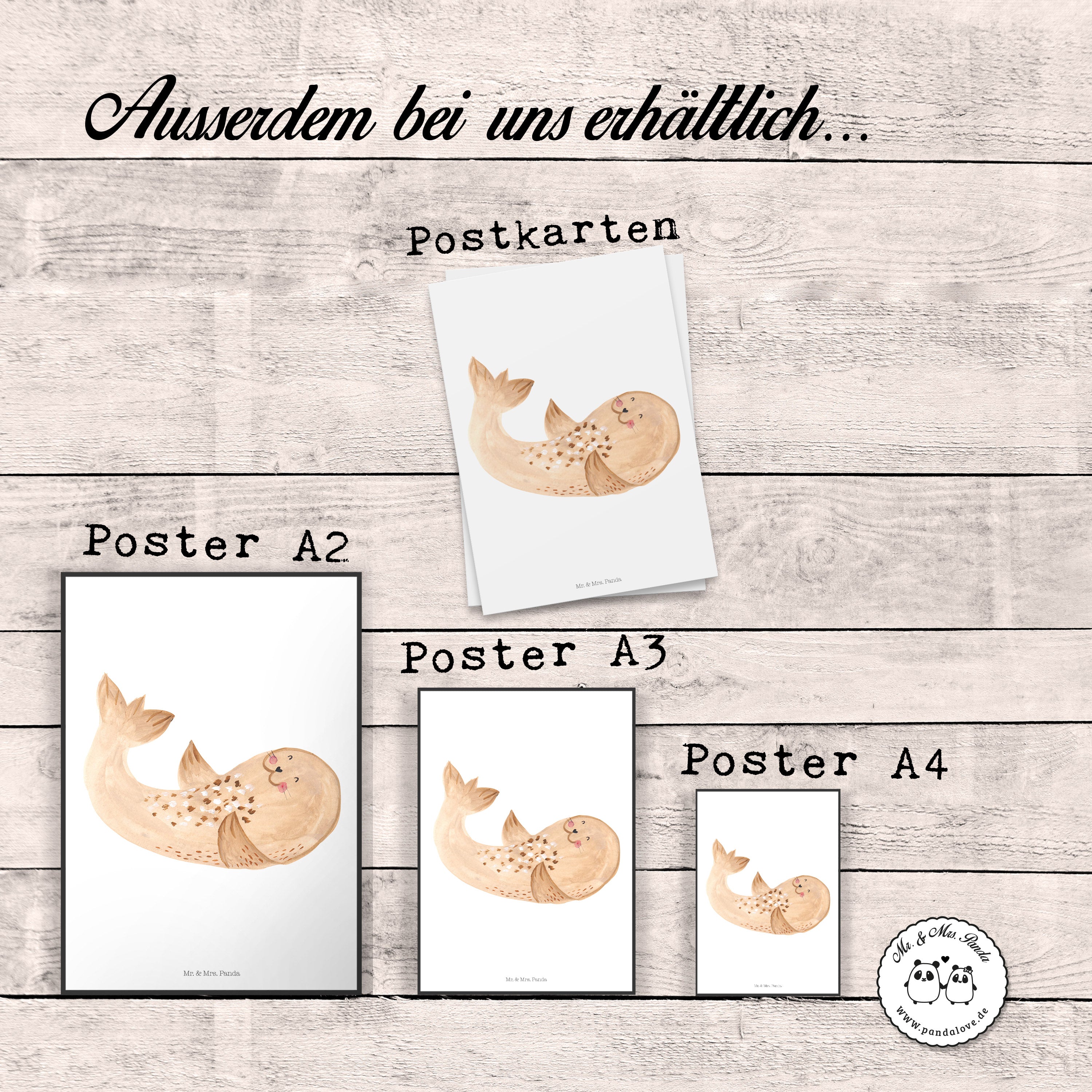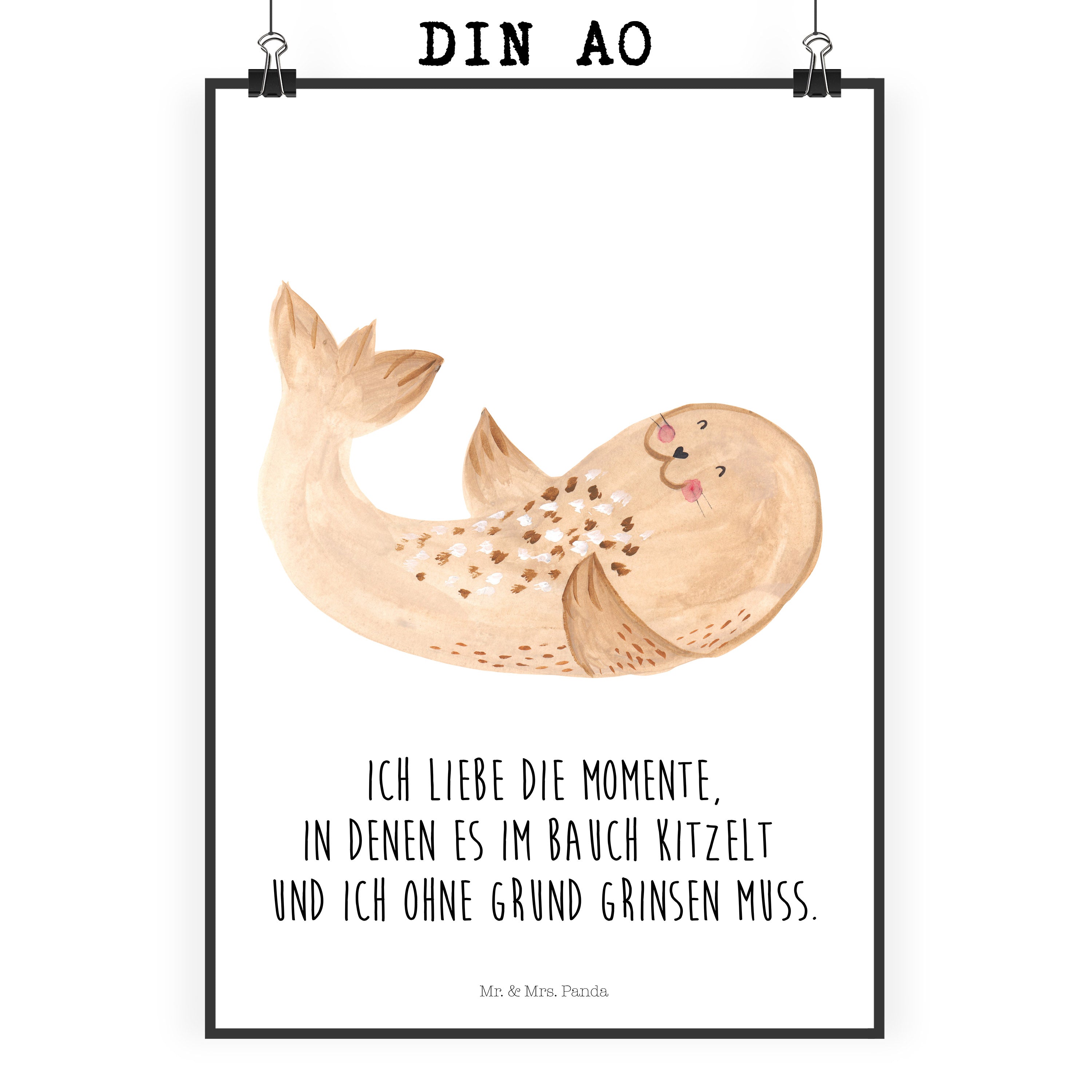 Poster Robbe liegend Poster, Wandposter, Bild, Wanddeko, Küchenposter, Kinderposter, Wanddeko Bild, Raumdekoration, Wanddekoration, Handgemaltes Poster, Mr. & Mrs. Panda Poster, Designposter, Kunstdruck, Posterdruck, Tiermotive, Gute Laune, lustige Sprüche, Tiere, Robbe, Robben, Seehund, Strand, Meerestier, Ostsee, Nordsee, Lachen, Freude