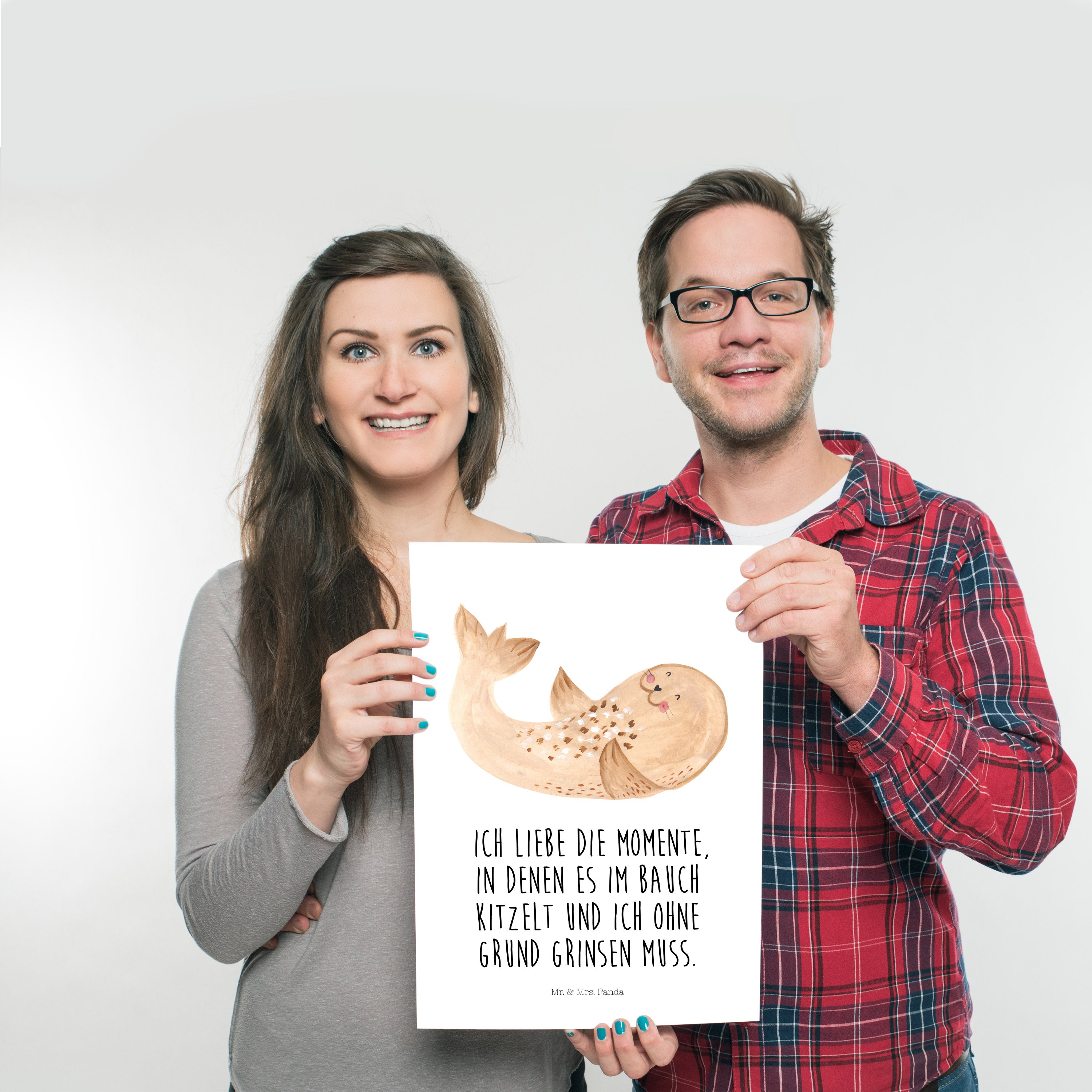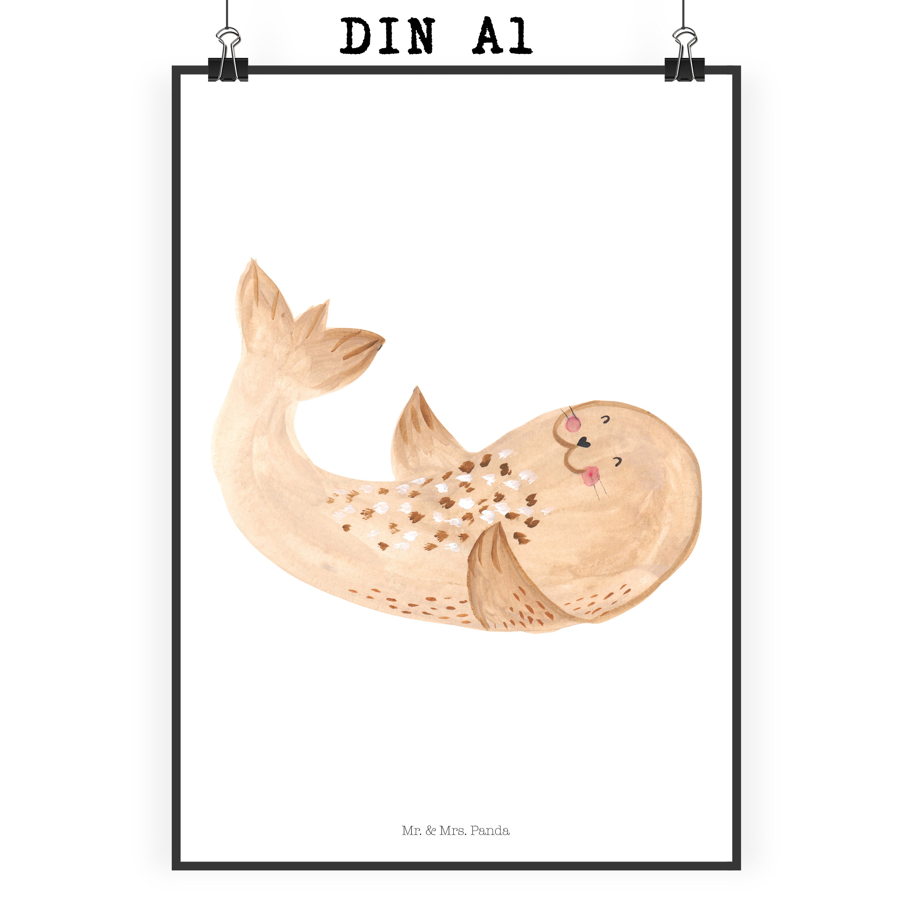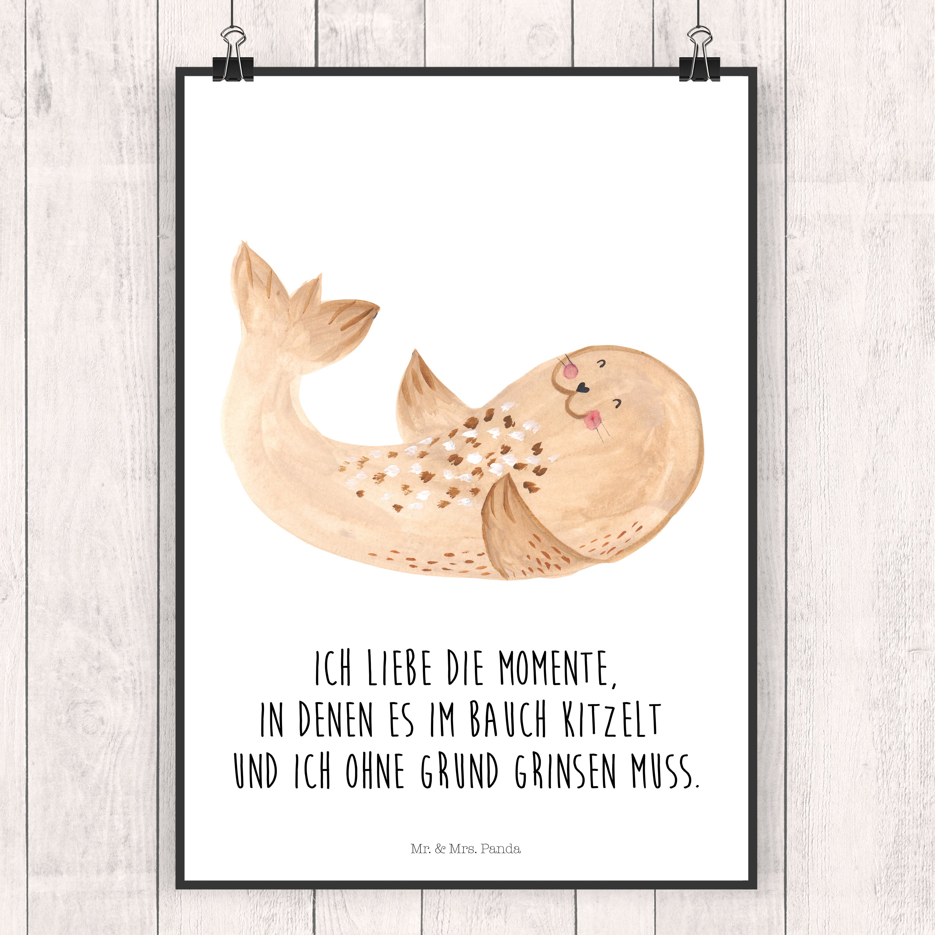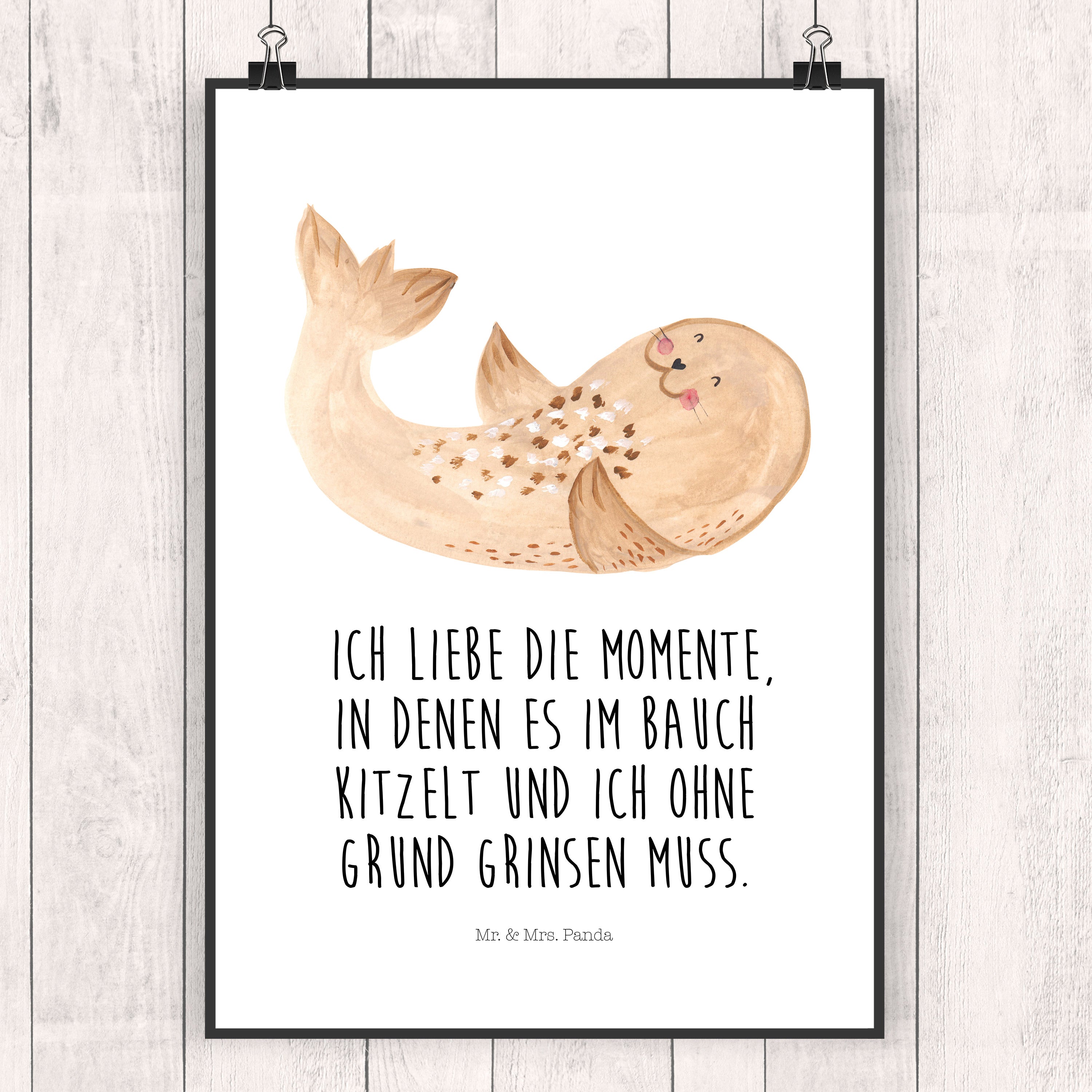 Poster Robbe liegend Poster, Wandposter, Bild, Wanddeko, Küchenposter, Kinderposter, Wanddeko Bild, Raumdekoration, Wanddekoration, Handgemaltes Poster, Mr. & Mrs. Panda Poster, Designposter, Kunstdruck, Posterdruck, Tiermotive, Gute Laune, lustige Sprüche, Tiere, Robbe, Robben, Seehund, Strand, Meerestier, Ostsee, Nordsee, Lachen, Freude