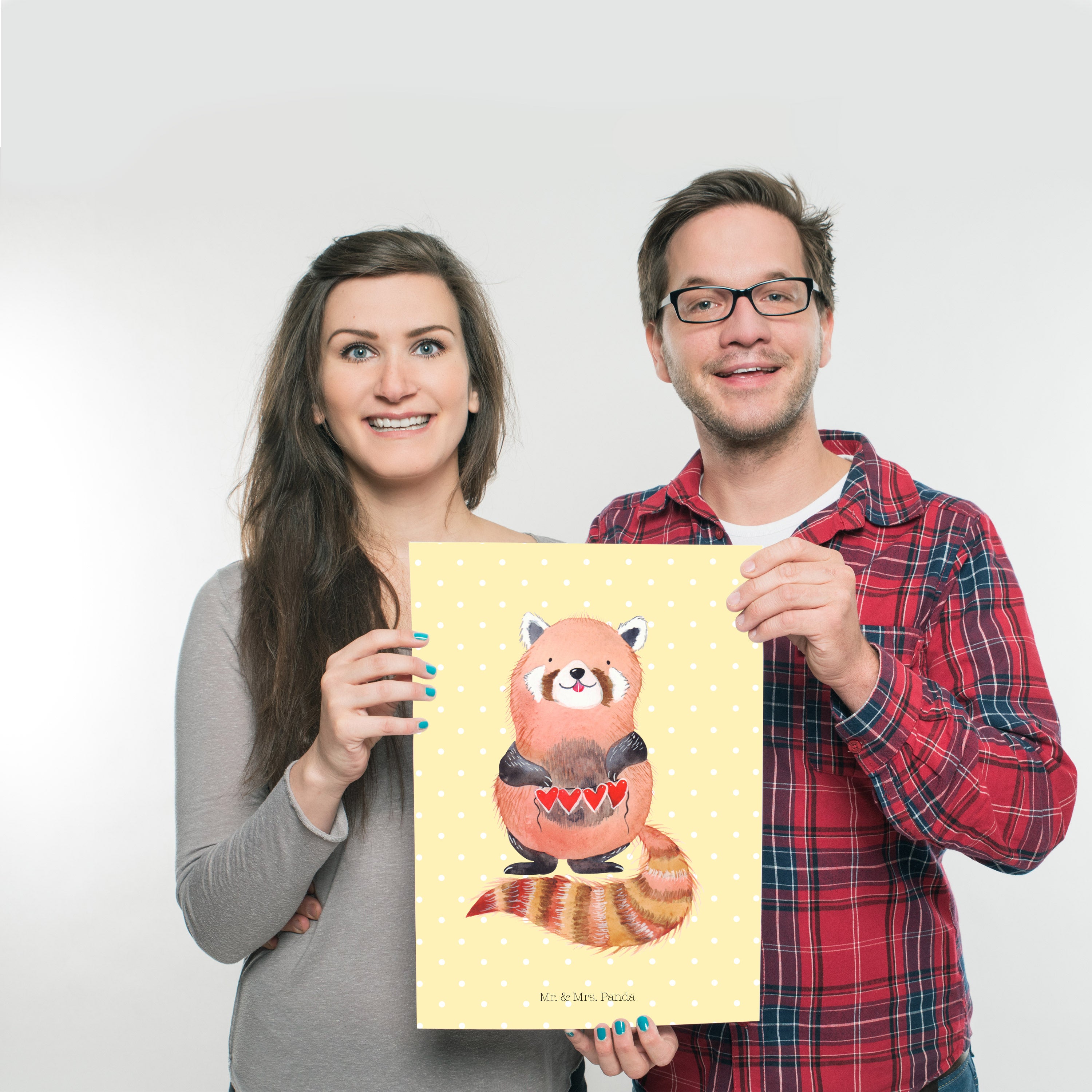 Ein herzliches Geschenk für dich oder eine besondere Person - das 'Roter Panda' Motiv von Mr. & Mrs. Panda. Der kleine rote Panda hält eine Herz Girlande in der Hand und blickt dich liebevoll an. Das ist das ideale Geschenk, um jemandem deine Wertschätzung auszusprechen oder um dich selbst zu beschenken. Die Illustration ist farbenfroh und detailliert, was sie zu einem wahren Hingucker macht. Mit diesem Motiv zaubert ihr Freude in den Alltag.