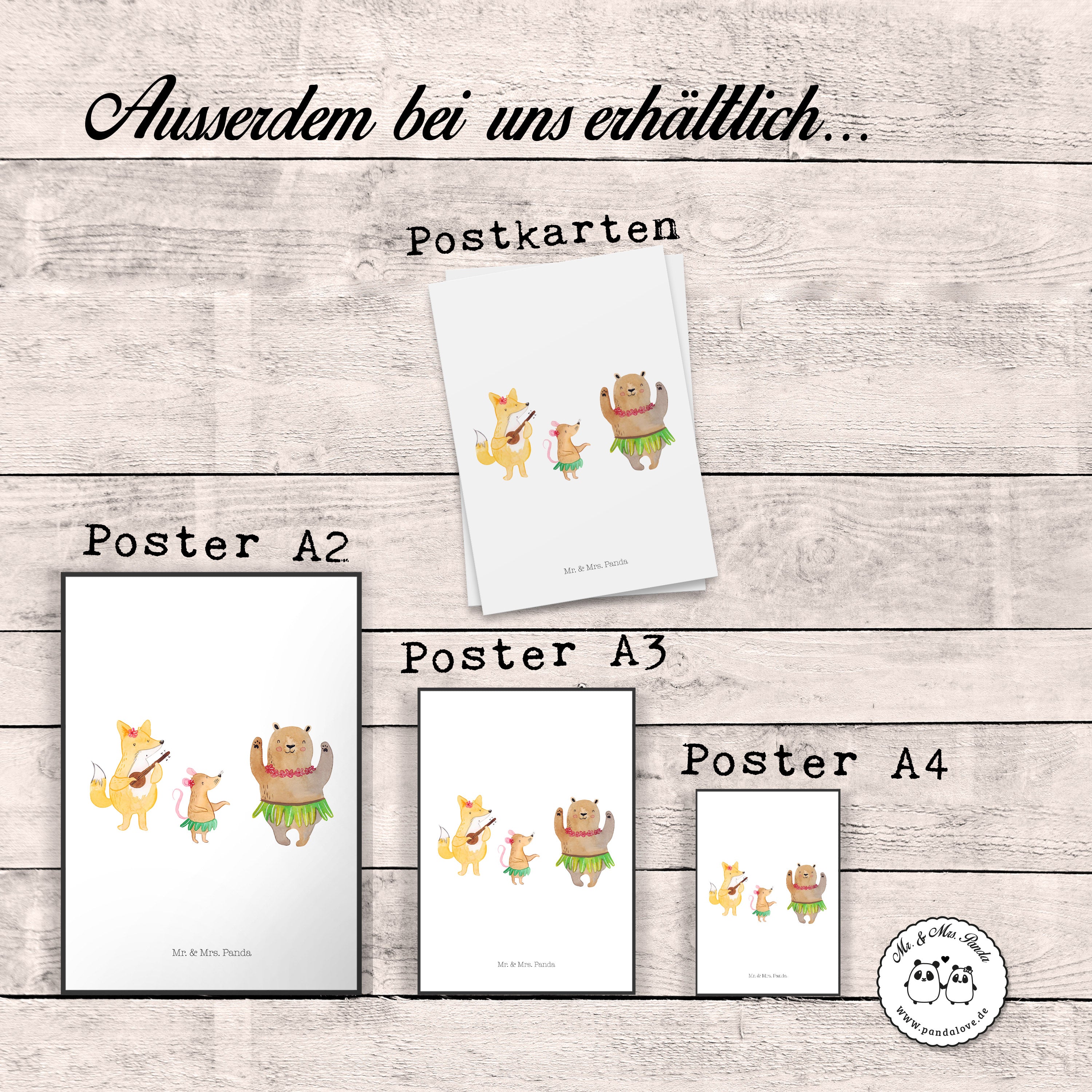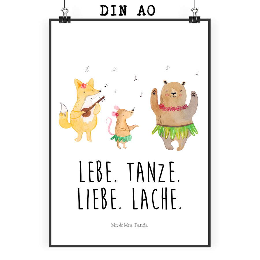 Poster Waldtiere Aloha Poster, Wandposter, Bild, Wanddeko, Küchenposter, Kinderposter, Wanddeko Bild, Raumdekoration, Wanddekoration, Handgemaltes Poster, Mr. & Mrs. Panda Poster, Designposter, Kunstdruck, Posterdruck, Tiermotive, Gute Laune, lustige Sprüche, Tiere, Wald, Waldtiere, Musik, Aloha, Bär, Hase, Igel, Tanzen, Leben, Lachen